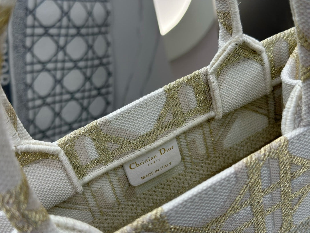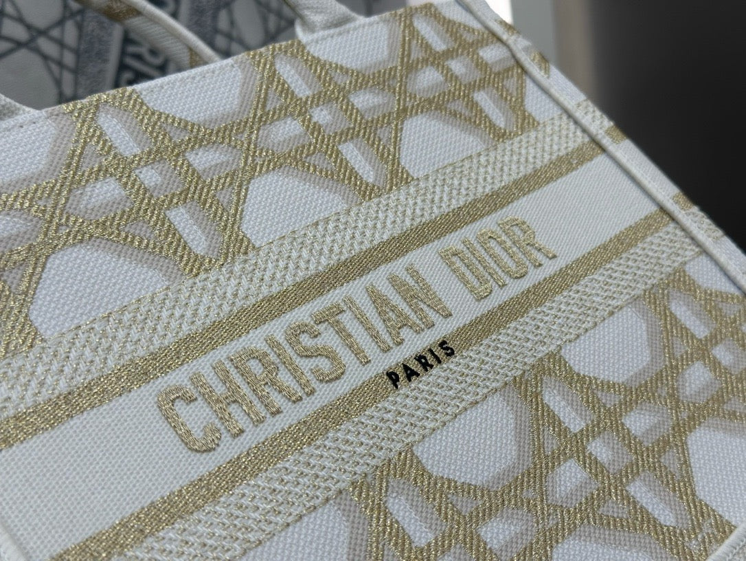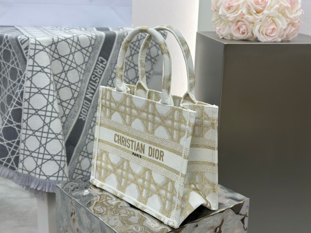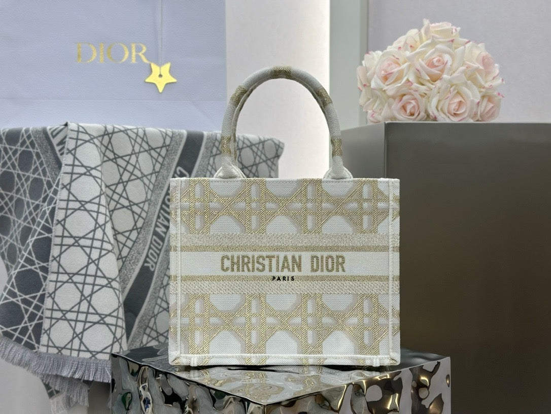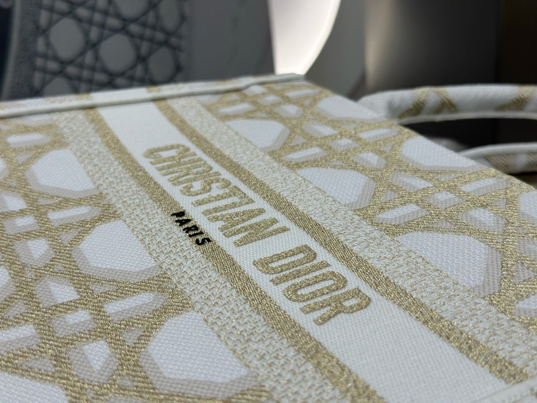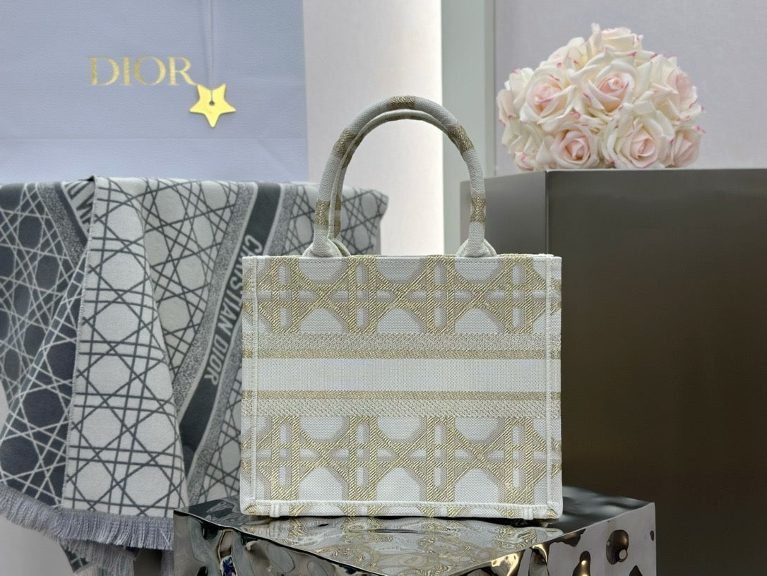 디올 매크로까나쥬 자수 화이트 골드 북 토트백 스몰(Dior Macro Cannage Embroidered White Gold Book Tote Small) - 클래식의 현대적 재해석