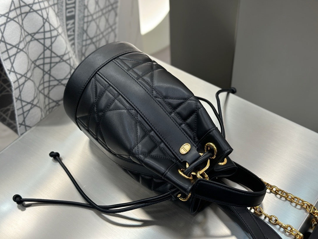 이 스몰 백팩은 부드러운 곡선과 컴팩트한 구조로 여성스러운 실루엣을 연출하며, 디올의 아이코닉한 까나쥬 패턴을 대형화한 매크로 디테일이 입체감과 고급스러움을 더합니다. 플랩에는 CD 로고 메탈 클로저가 부착되어 브랜드 아이덴티티를 강조합니다.