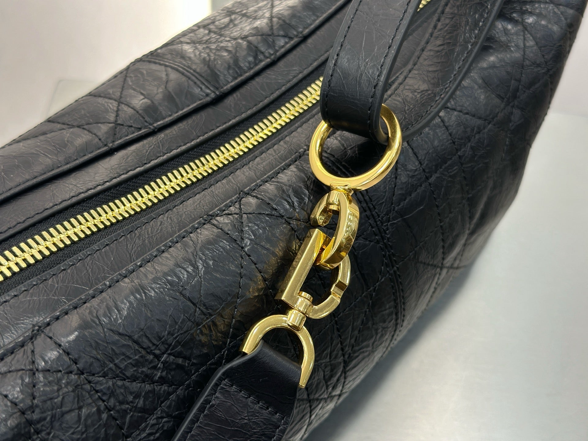 디저니 백은 직사각형의 구조적인 실루엣을 기반으로, 디올의 아이코닉한 까나쥬 퀼팅을 확대 적용한 매크로 패턴이 강렬한 존재감을 드러냅니다. 주름 가공된 크링클 송아지 가죽은 빈티지한 질감과 고급스러운 광택을 함께 지니고 있으며, 메탈 소재의 디올 참 장식이 시그니처 디테일로 완성도를 더합니다.