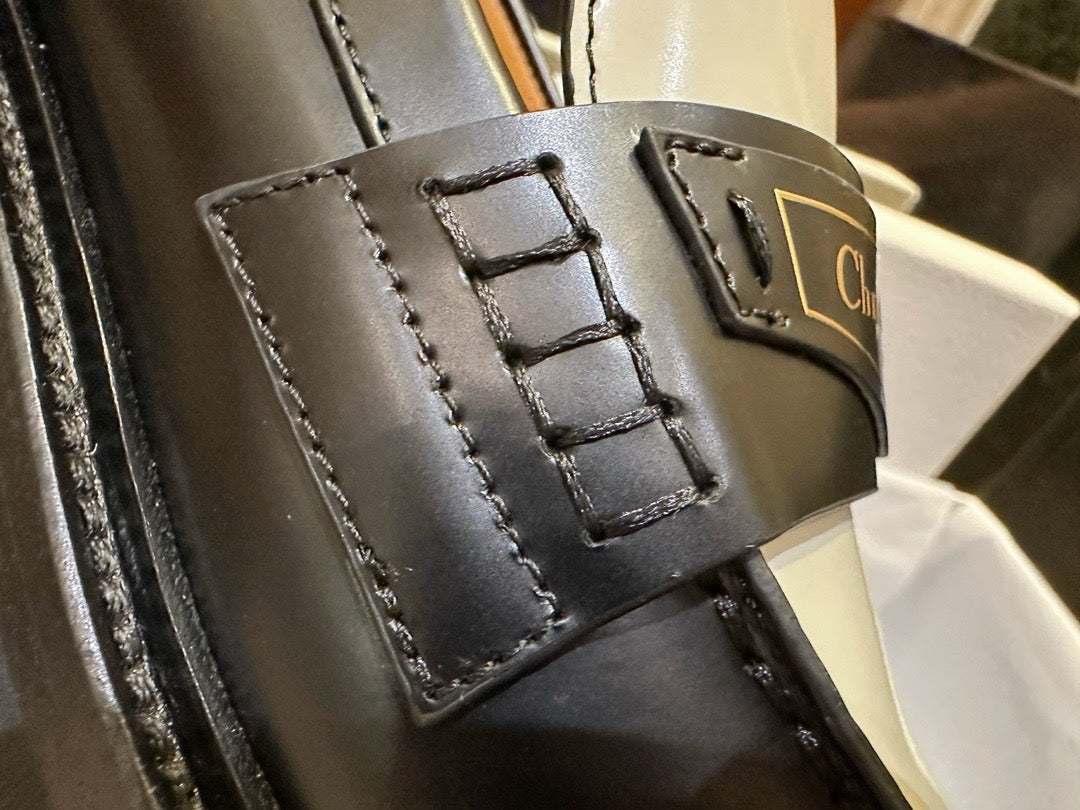 고급 송아지가죽 소재로 제작되었으며, 브러쉬드 또는 서플 레더 타입이 있어 다양한 텍스처를 만날 수 있습니다. 앞면에는 골드 톤의 "Christian Dior Paris" 로고 메탈 태그가 장식되어 브랜드 아이덴티티를 강조합니다. 밑창은 전통적인 가죽 또는 블랙 러버 솔, 일부 모델은 5.5cm 두께의 EVA 플랫폼 솔도 적용되어 있으며, 이를 통해 안정감과 쿠션감이 우수합니다. Made in Italy 제작으로 정교한 마감과 뛰어난 품질을 보장합니다.