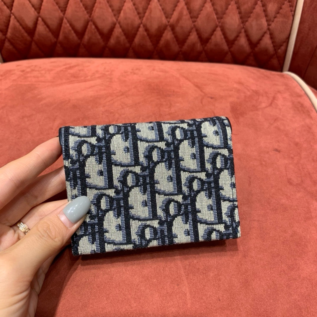 이 카드 홀더는 디올의 아이코닉한 오블리크 자카드 패턴으로 제작되었으며, 전면에는 새들 백을 상징하는 D 참 또는 디올 엠보 디테일이 포함되어 고급스러운 인상을 줍니다. 콤팩트한 사이즈 안에 총 5개의 포켓이 배치되어 있어 실용성이 매우 뛰어납니다.