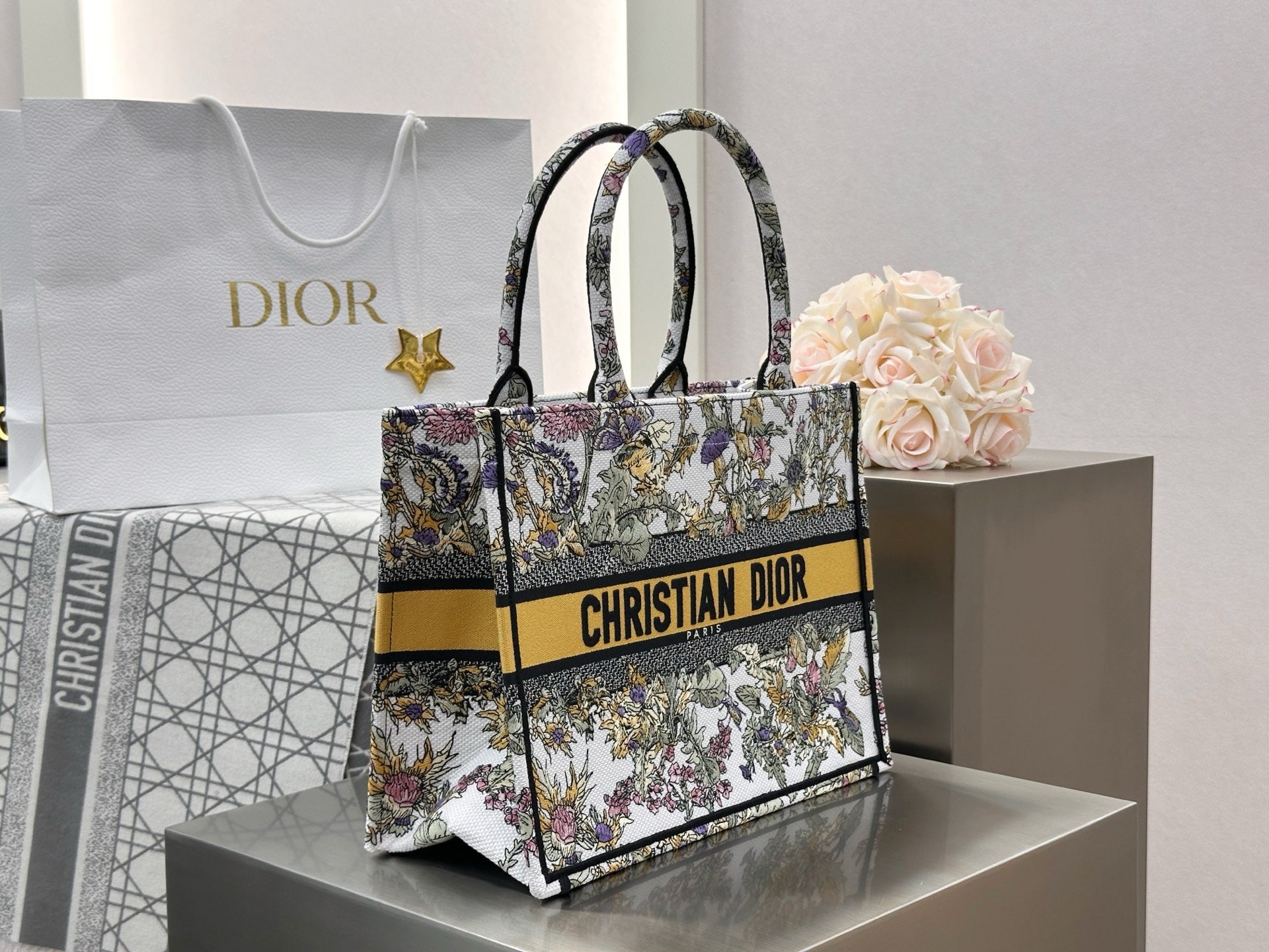 디올 샹동 옐로우 자수 북 토트백 미디움(Dior Chandon Yellow Embroidered Book Tote Medium) - 기능성과 감성의 조화