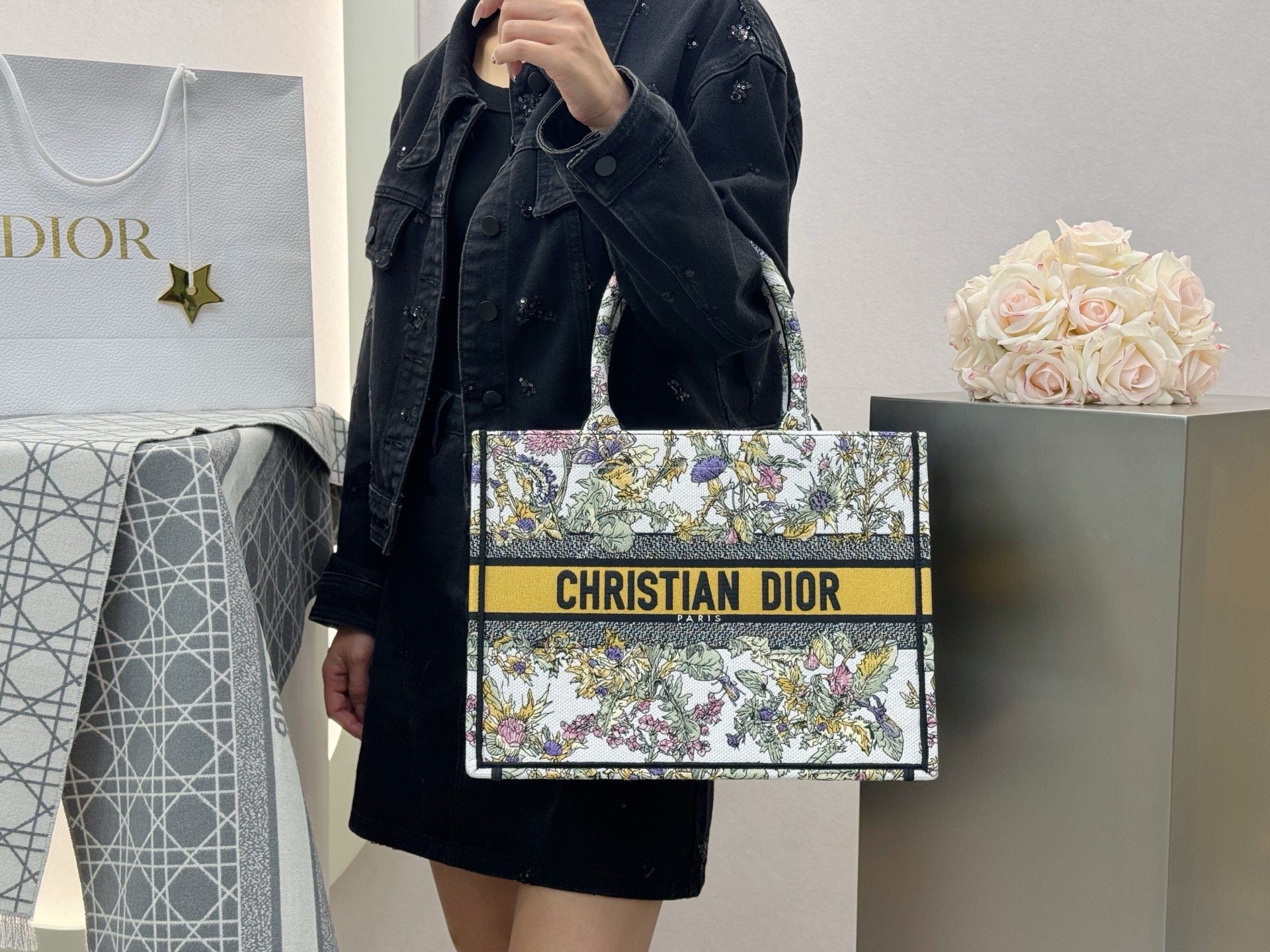 디올 샹동 옐로우 자수 북 토트백 미디움(Dior Chandon Yellow Embroidered Book Tote Medium) 스타일링 팁