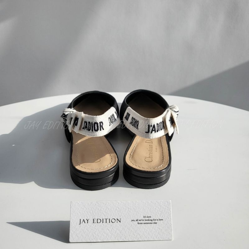 앞코에는 날렵한 포인트 토( Pointed Toe ) 디자인이 적용되어 발을 길고 슬림하게 보이게 합니다. 발등을 감싸는 슬링백 스트랩에는 'J'ADIOR' 레터링이 새겨져 브랜드 아이덴티티를 강조합니다.