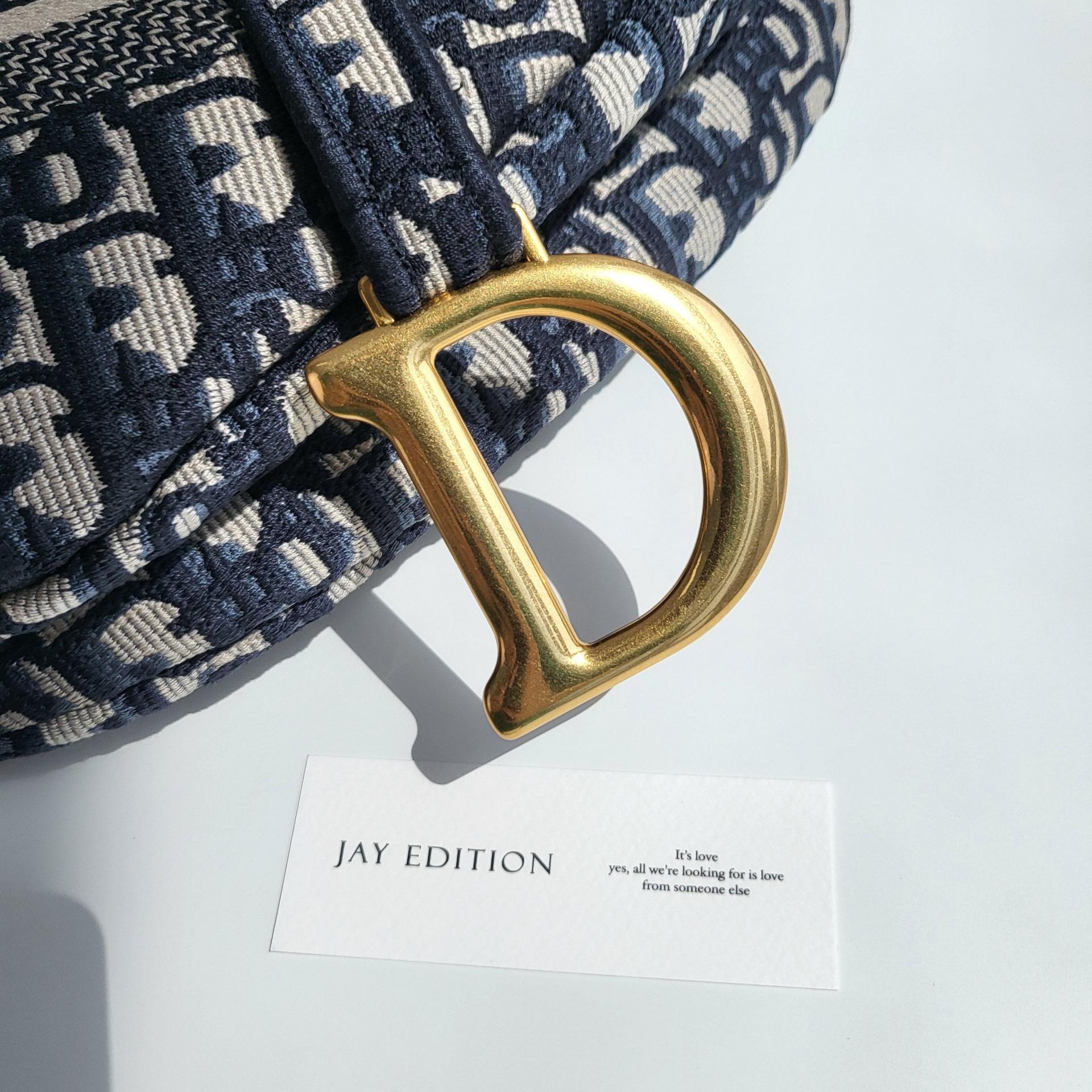 새들백은 말 안장의 형태에서 영감을 받은 독특한 곡선 라인이 특징이며, 디올 오블리크 자카드 패턴과 조화를 이루어 개성 있고 감각적인 무드를 자아냅니다. 중앙에 위치한 자석 클로저 플랩과 앤틱 골드 피니시의 'D' 장식이 브랜드 정체성을 강하게 표현합니다.
