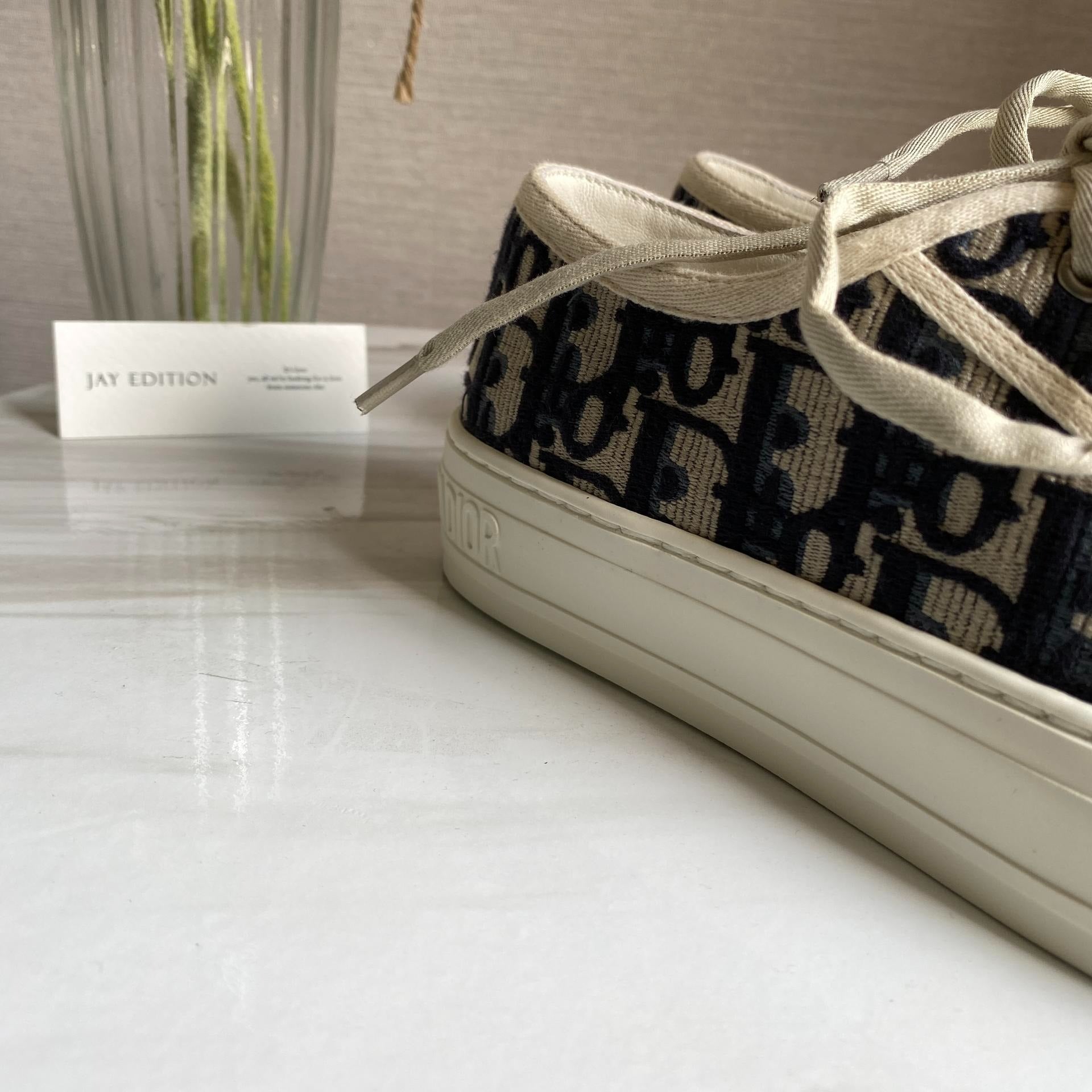 디올 오블리크 스니커즈는 캔버스 또는 메시 소재 위에 정교하게 직조된 오블리크 자카드 패턴이 특징입니다. 측면에는 디올 로고가 절제된 형태로 삽입되어 브랜드 아이덴티티를 강조하며, 클래식한 로우탑 또는 하이탑 형태로 다양하게 출시되어 스타일에 맞게 선택할 수 있습니다.