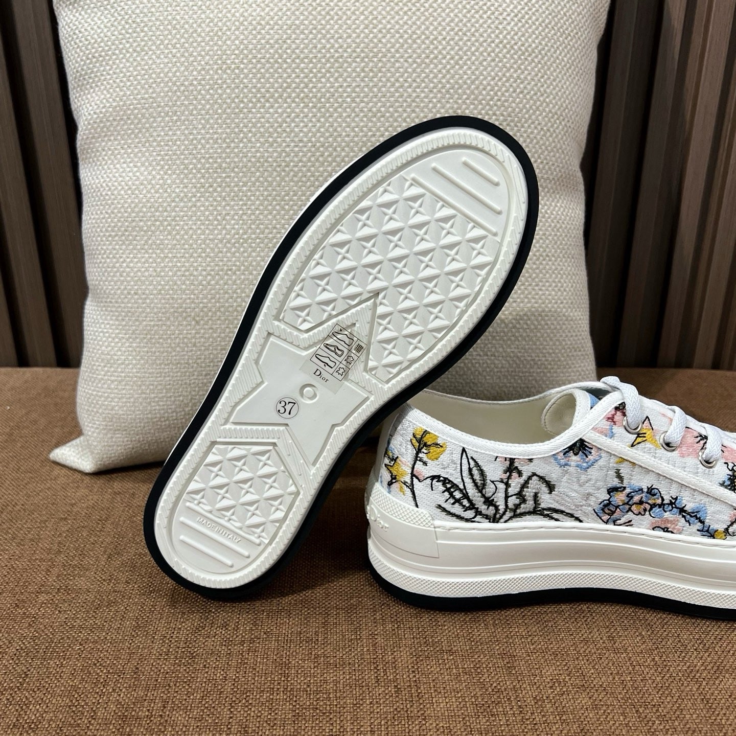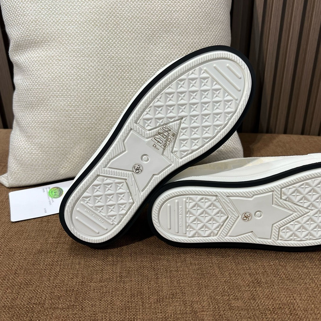 이 제품은 견고한 캔버스 또는 테크니컬 메시 소재에 디올의 시그니처 자수가 더해져 디테일의 완성도를 높였습니다. 플랫폼 구조의 아웃솔은 착용자의 키를 자연스럽게 보정해주며, 장시간 착용에도 안정감 있는 쿠셔닝을 제공합니다.