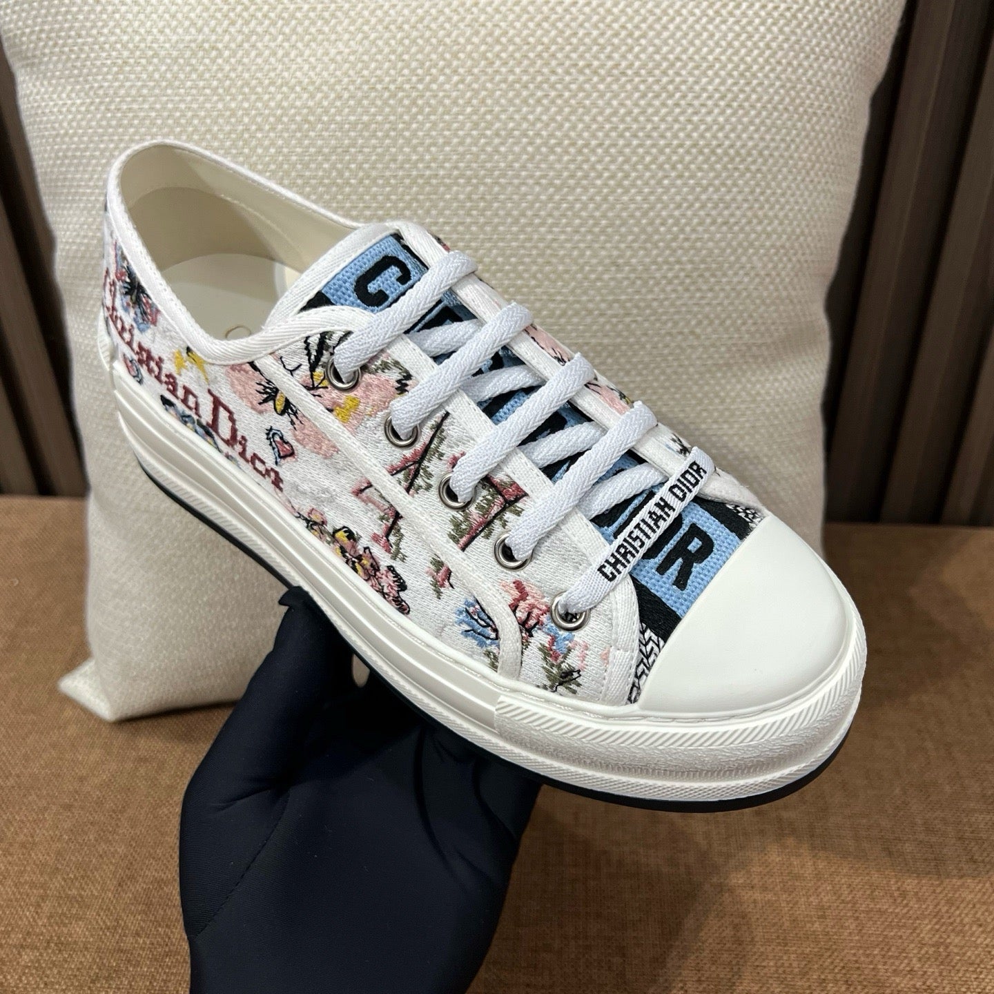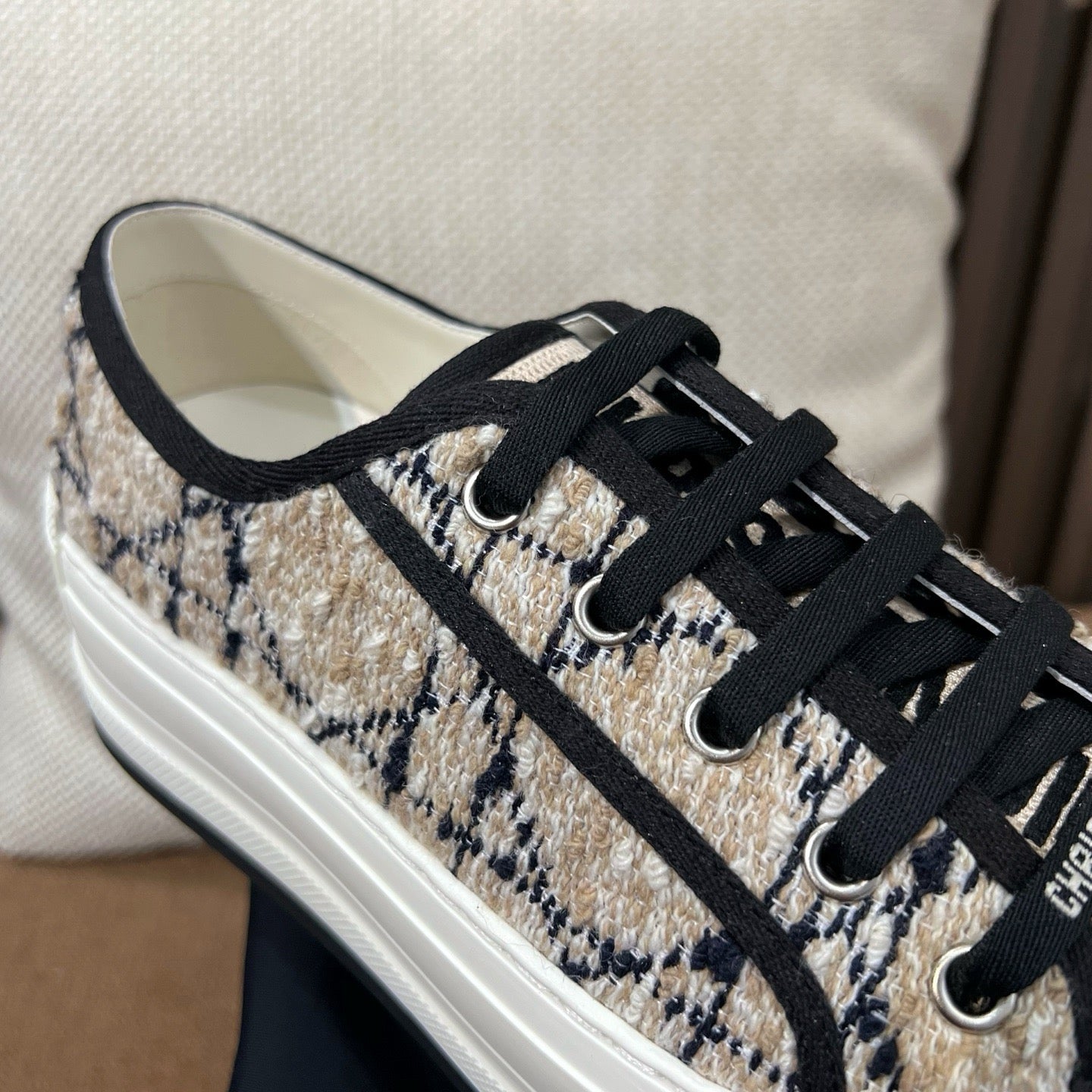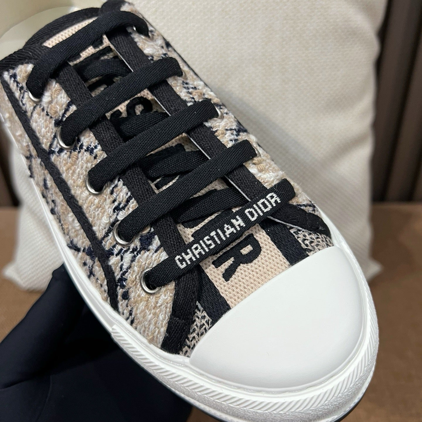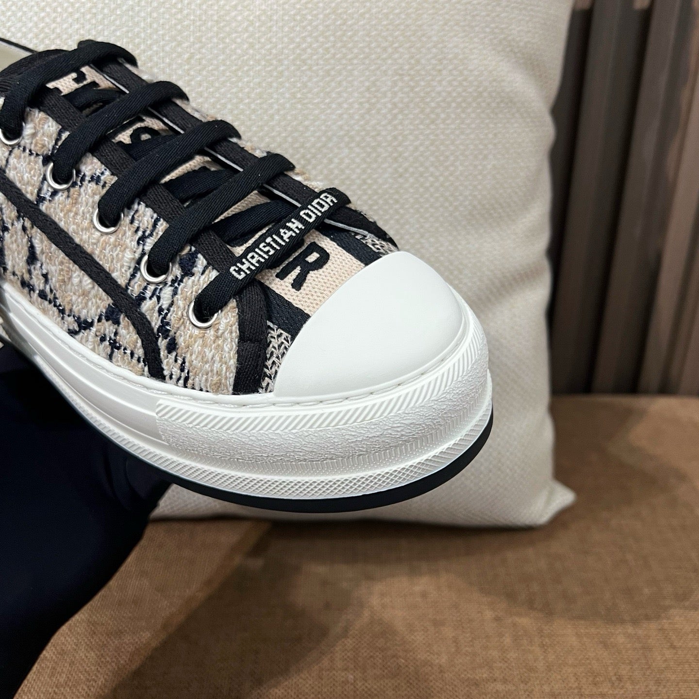 디테일: 'CHRISTIAN DIOR' 자수, 텍스타일 레이스업