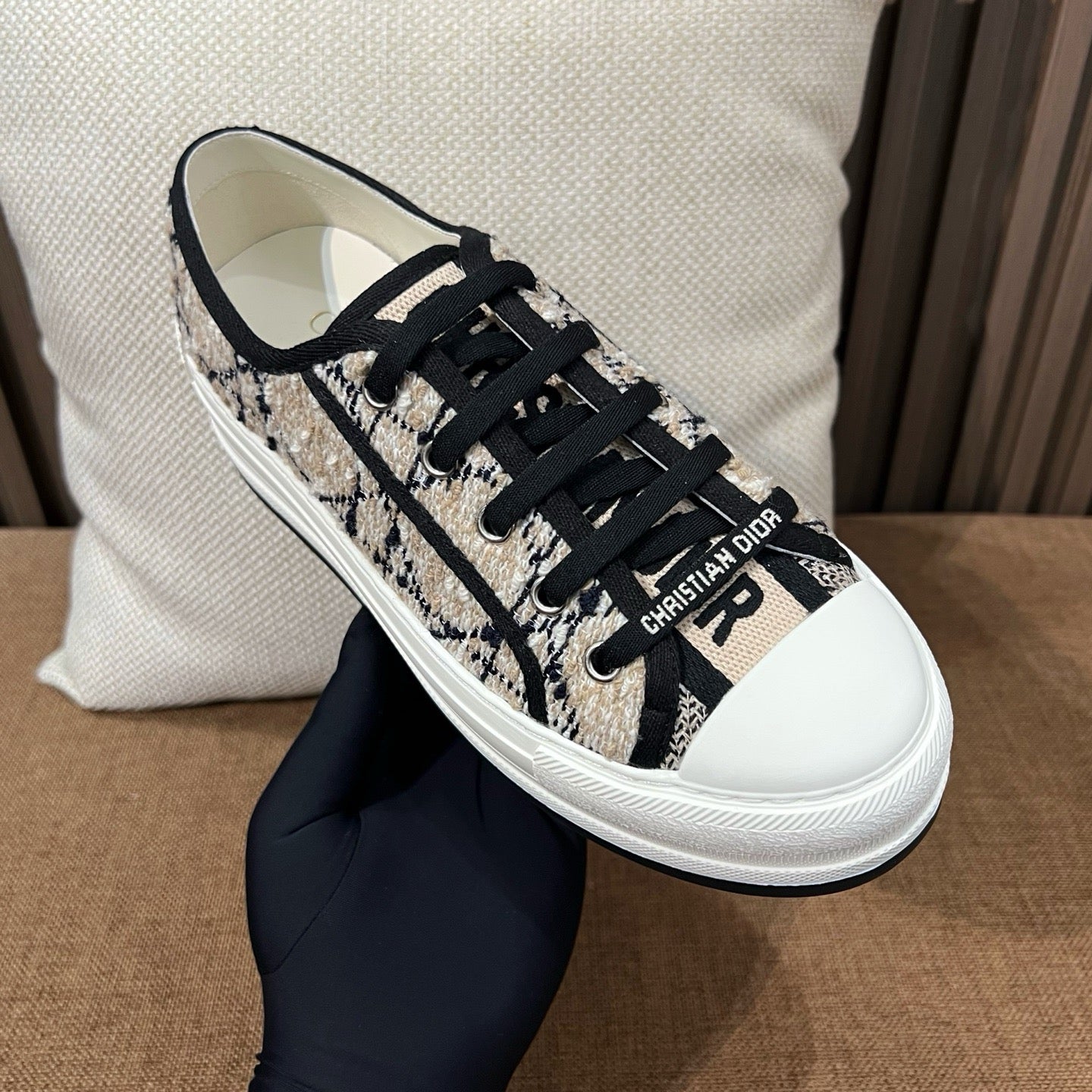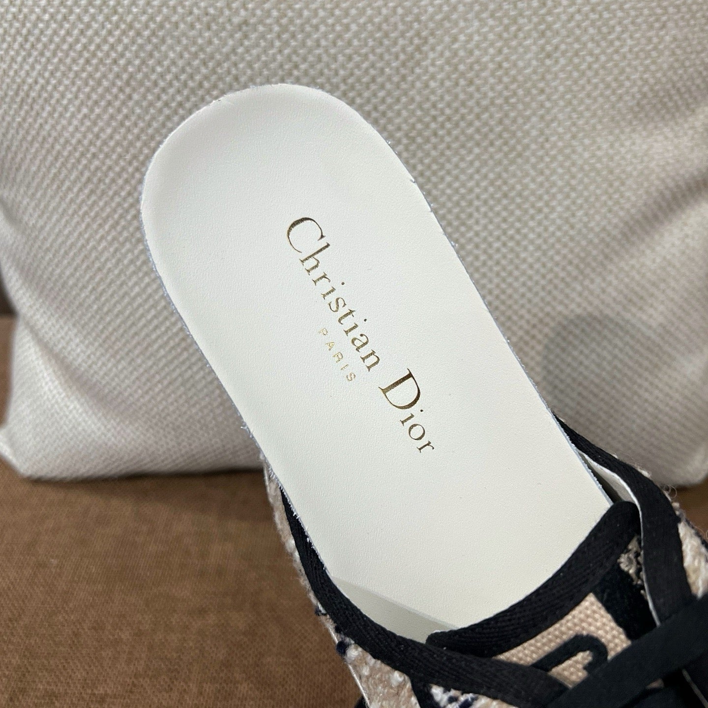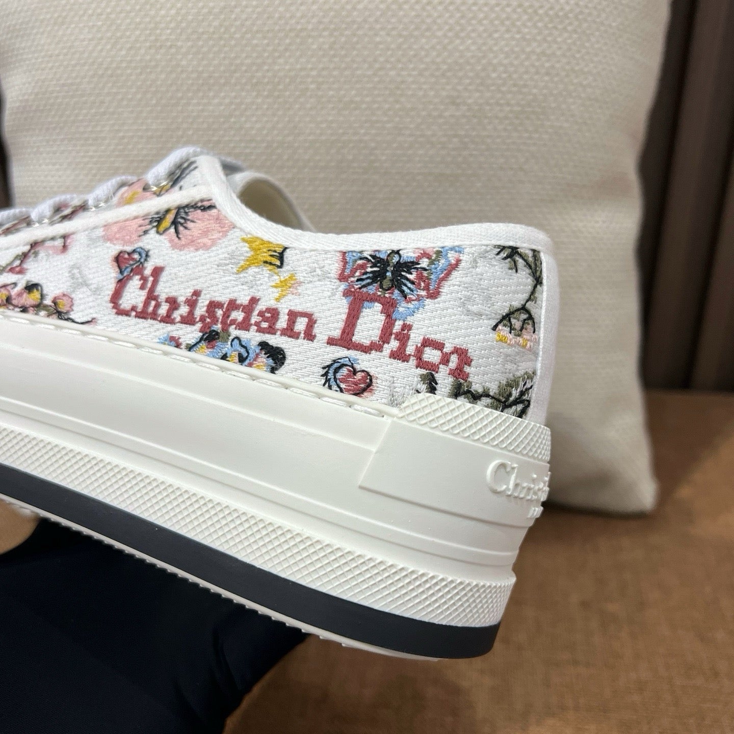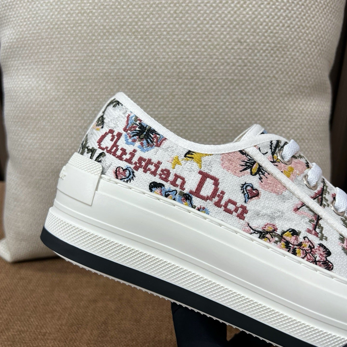디테일: 'CHRISTIAN DIOR' 자수, 텍스타일 레이스업