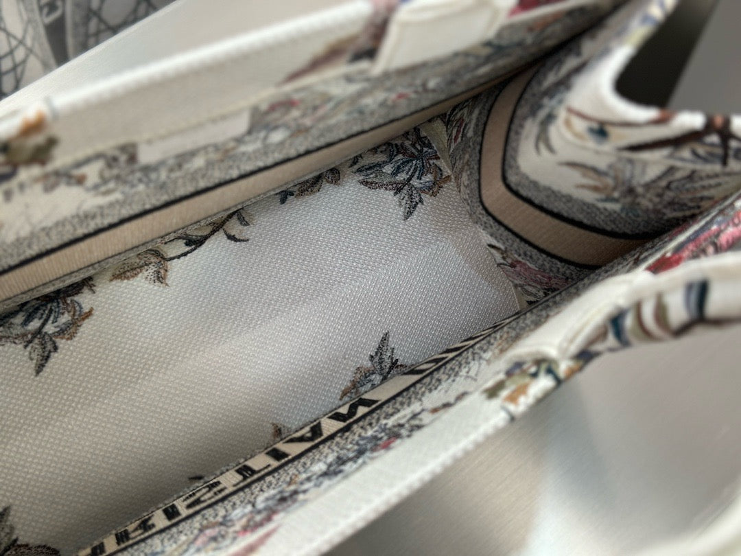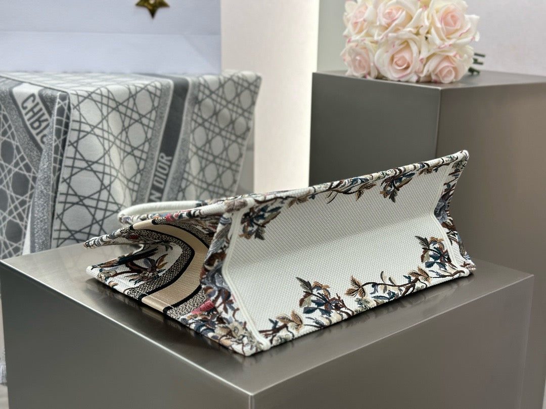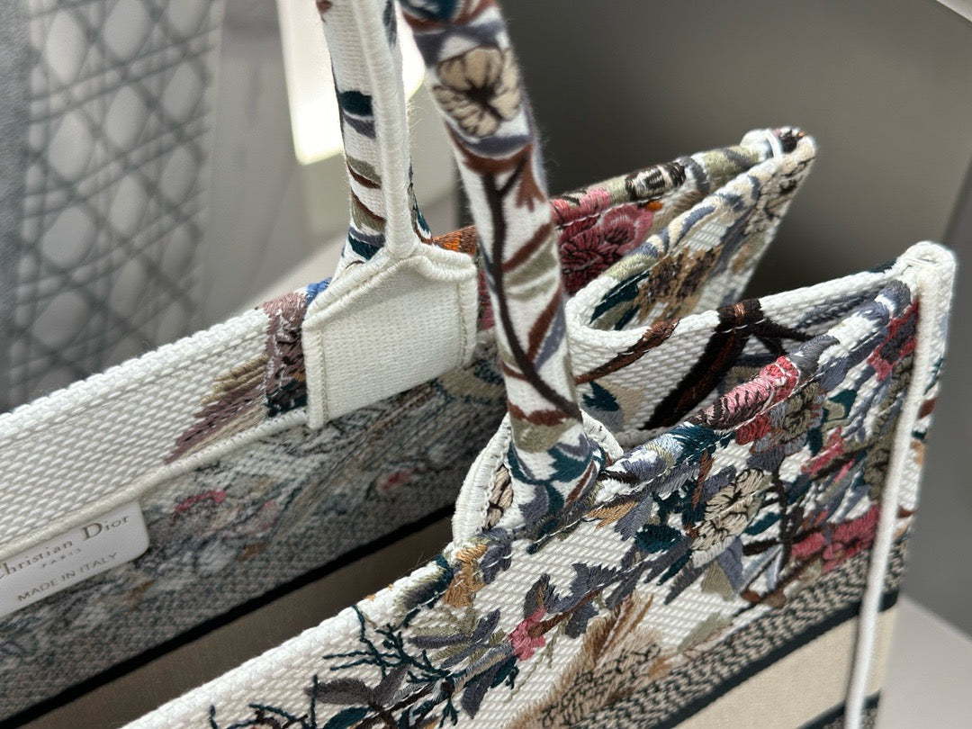 디올 자뎅 디베르 자수 북 토트백 미디움 - 겨울 정원의 낭만적인 재현