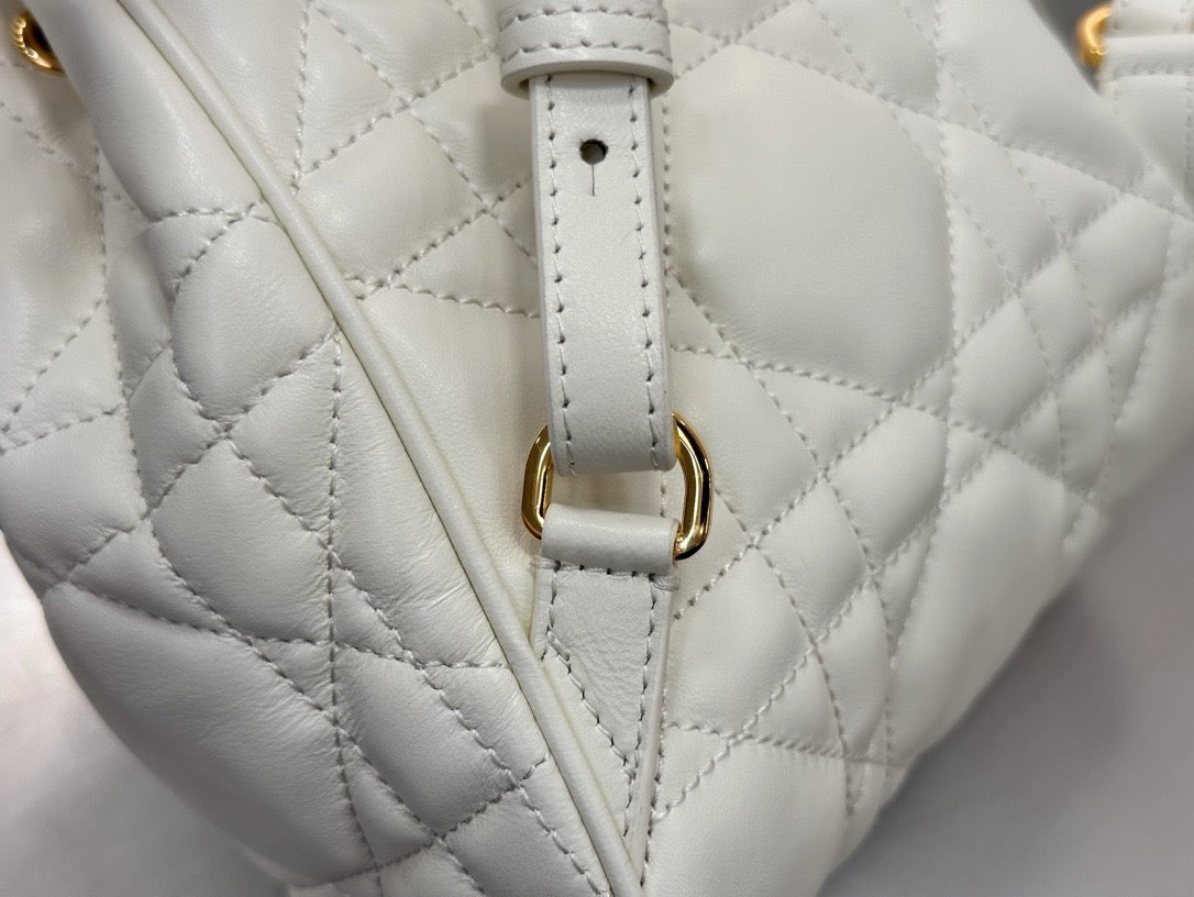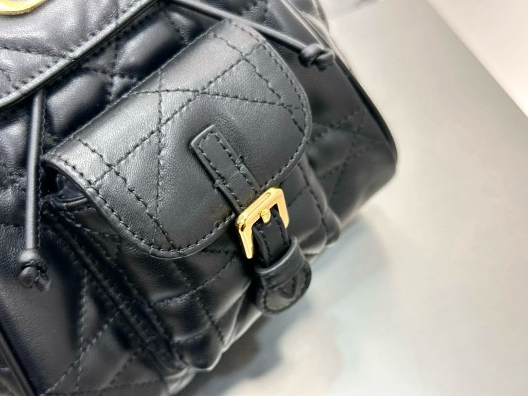 입체적인 카나쥬 퀼팅과 송아지 가죽 소재, 그리고 메탈 CD 로고 디테일이 고급스러움을 강조하며, 백팩의 실용적인 구조가 데일리 사용에 적합합니다.