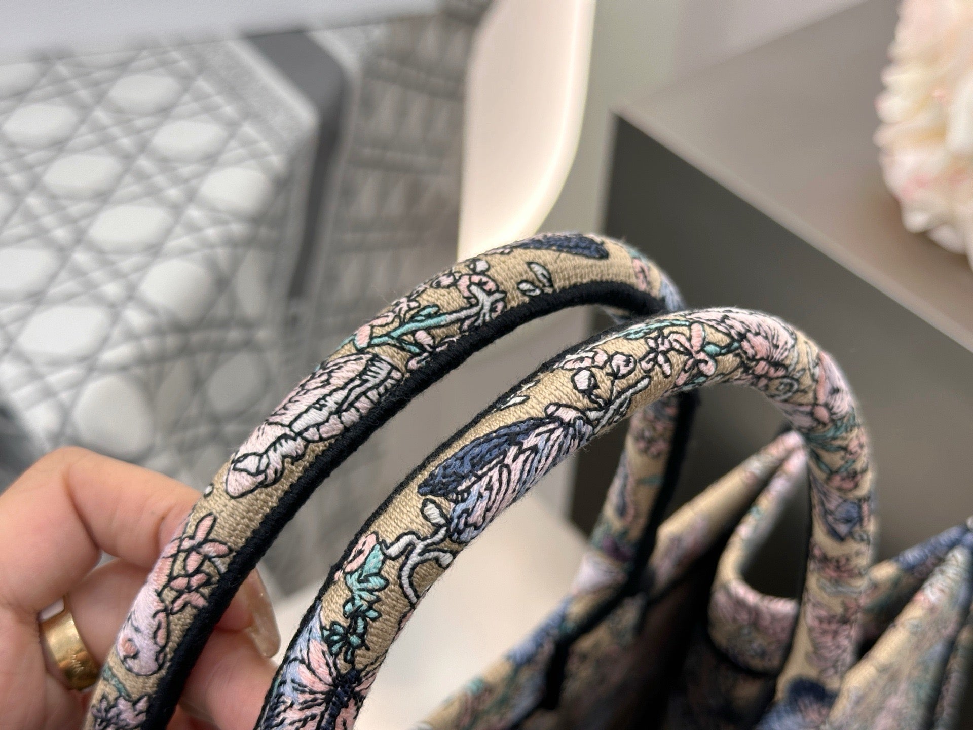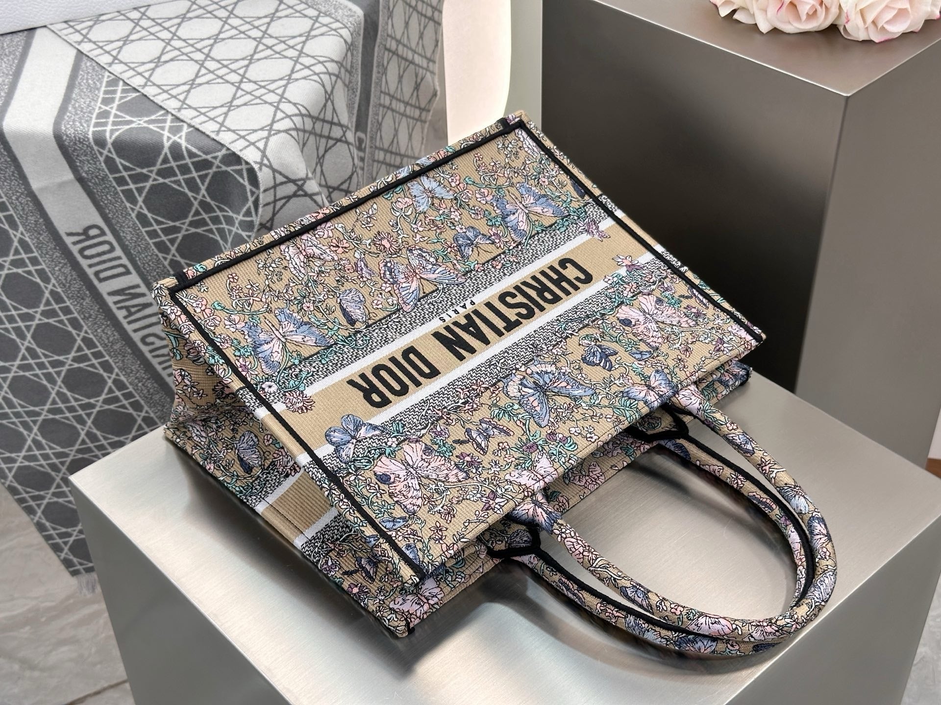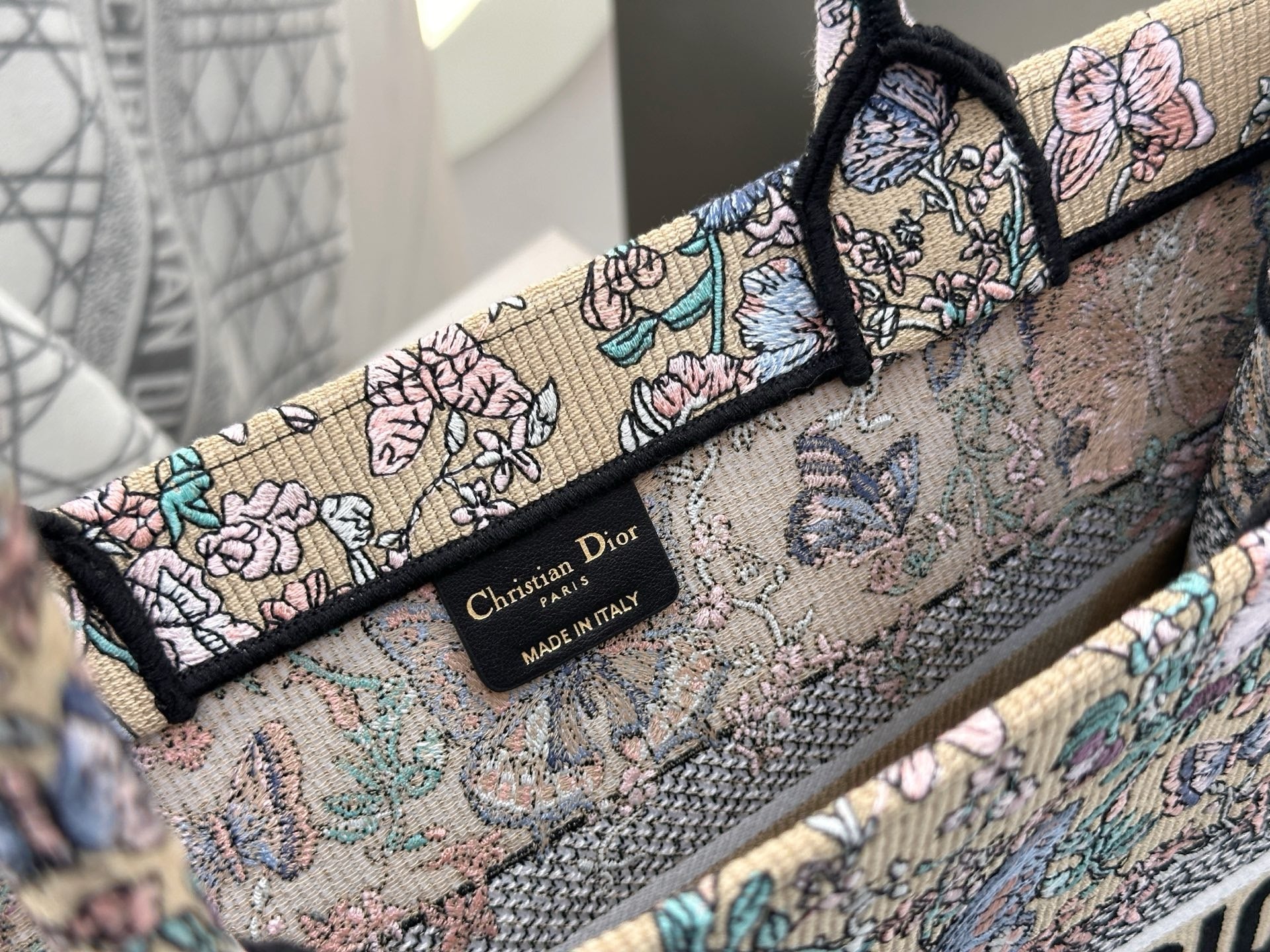 디올 트왈 드 주이 빠비용 북 토트백 미디움은 고급 코튼 캔버스에 풀 바디 자수 기법이 적용된 소재로, 뛰어난 내구성과 예술적인 감각을 동시에 갖추고 있습니다.