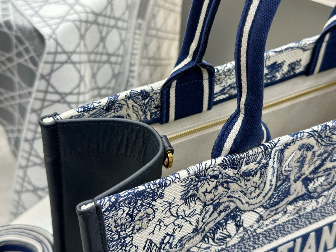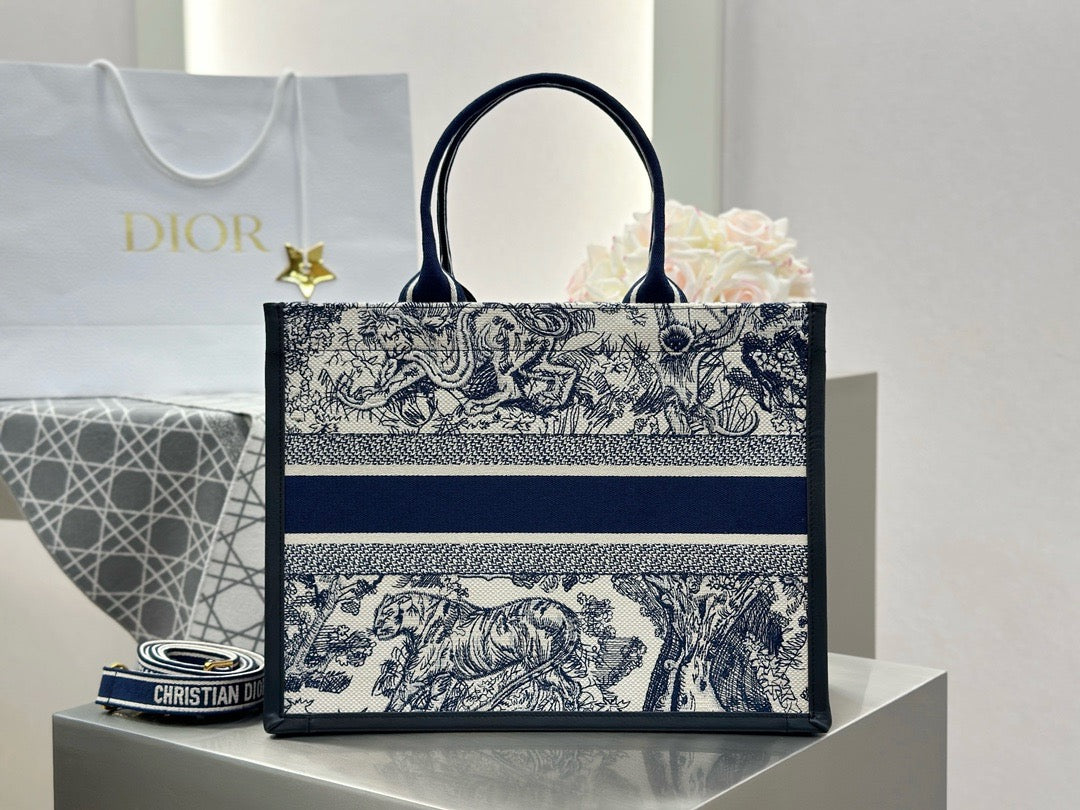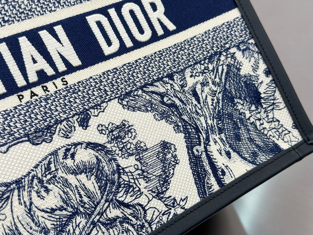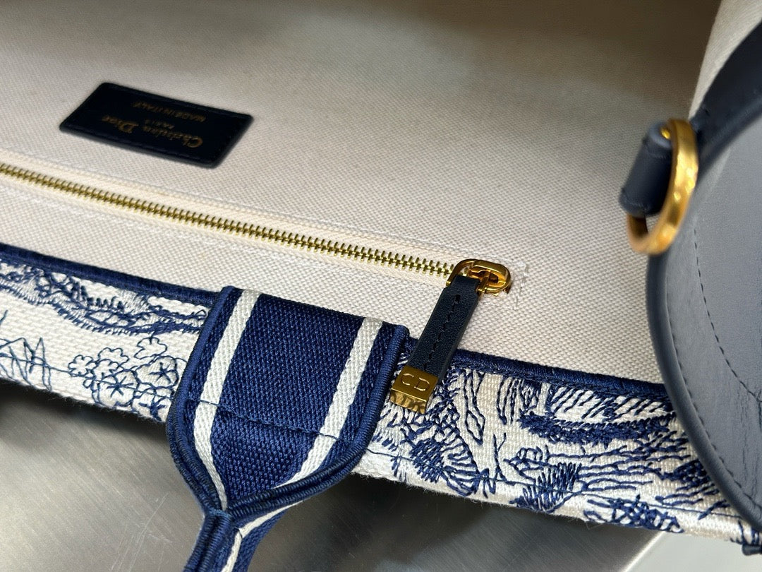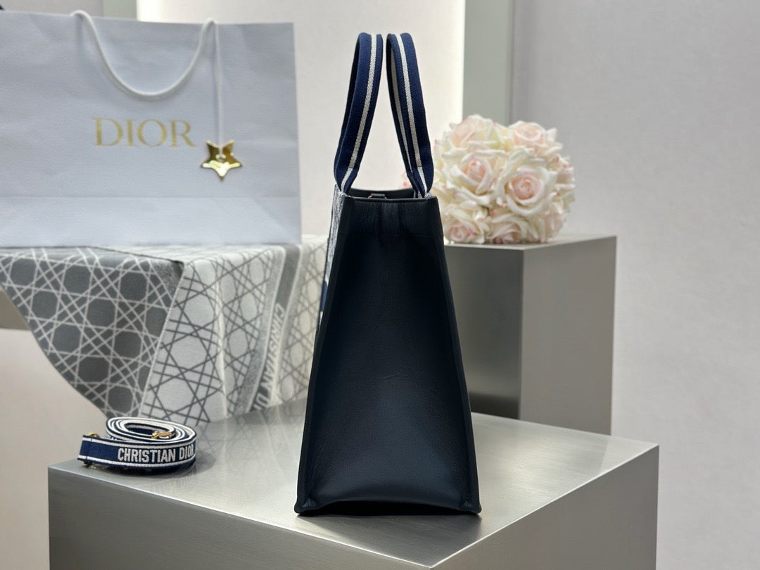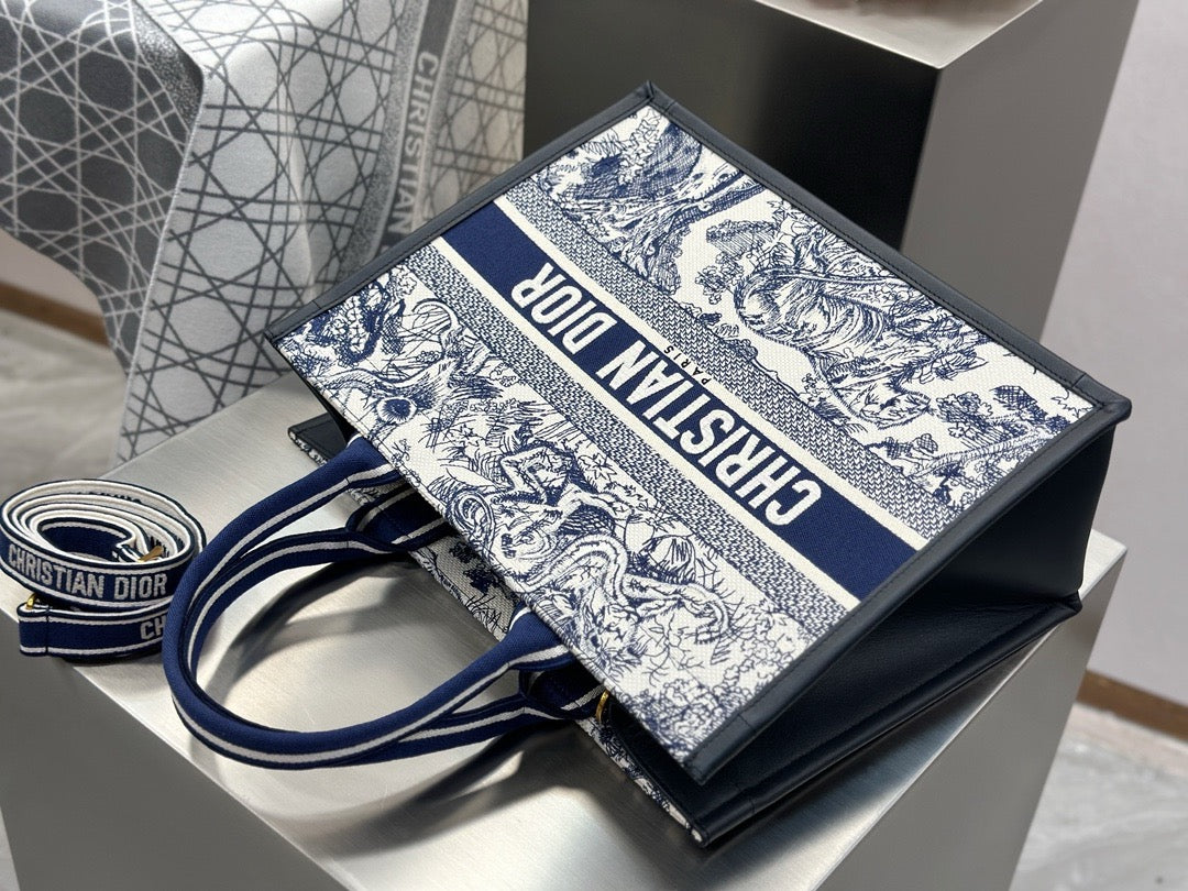디올 트왈 드 주이 화이트 네이비 북 토트 스트랩백 미디움(Dior Toile de Jouy White Navy Book Tote Strap Bag Medium) - 고전과 모던의 우아한 조화