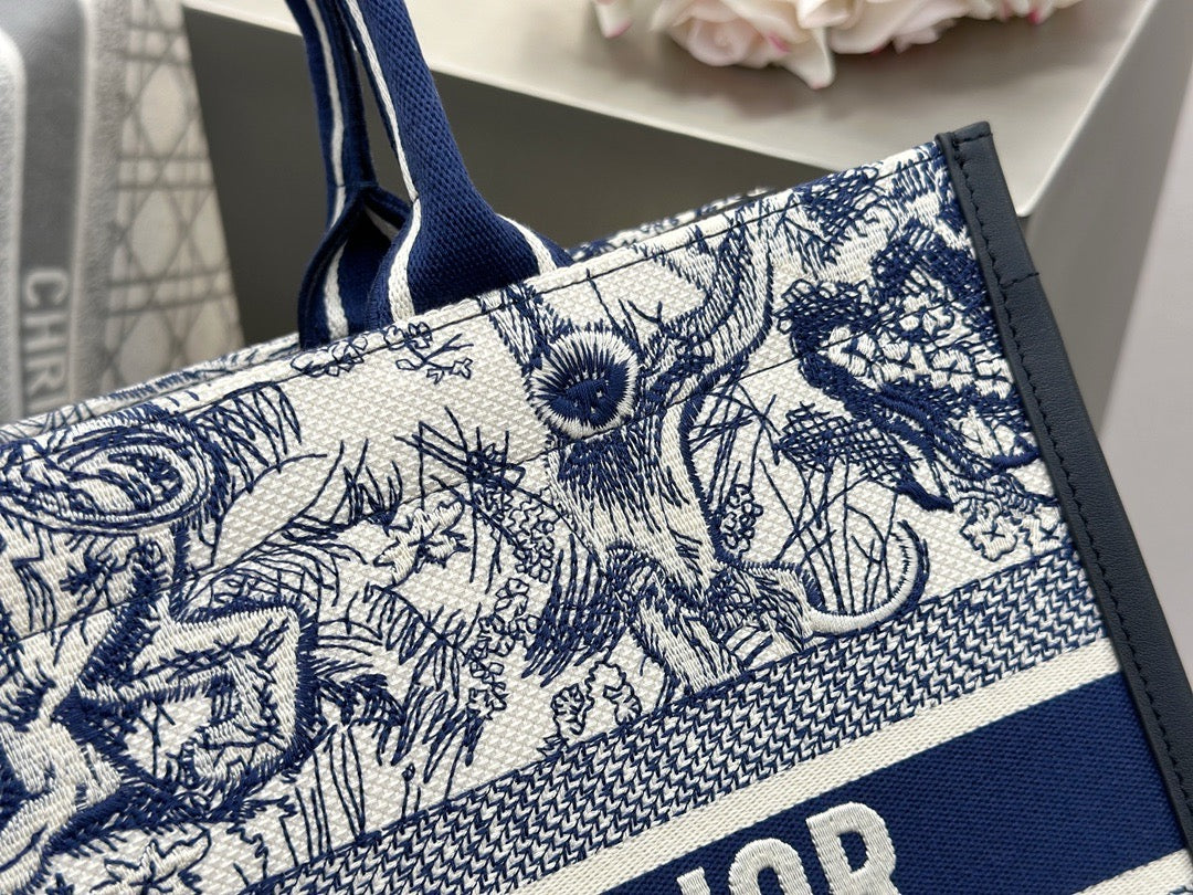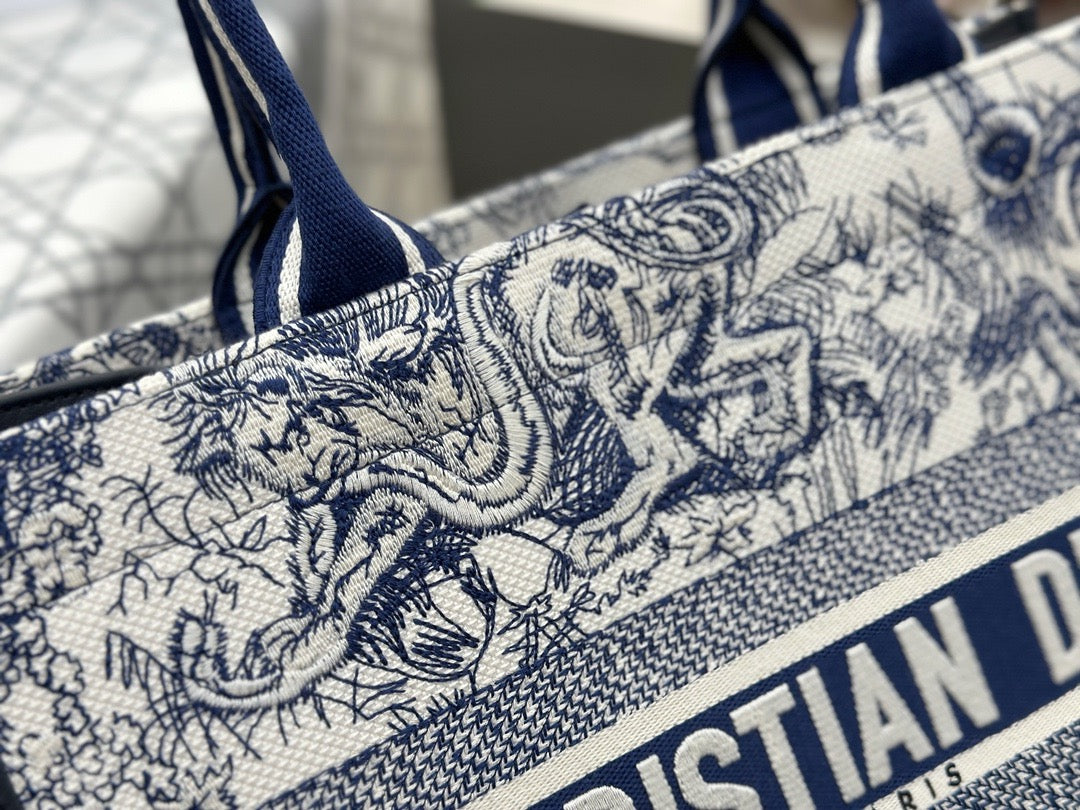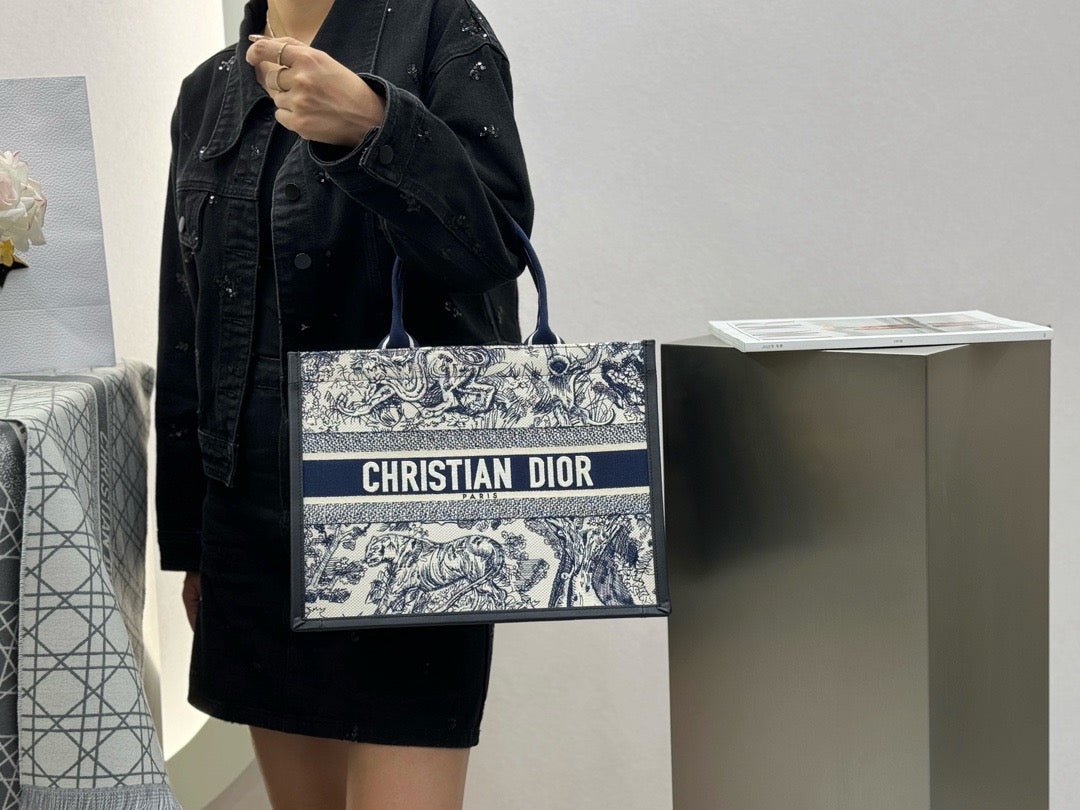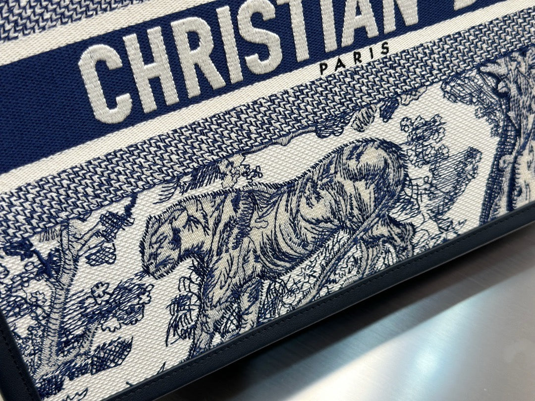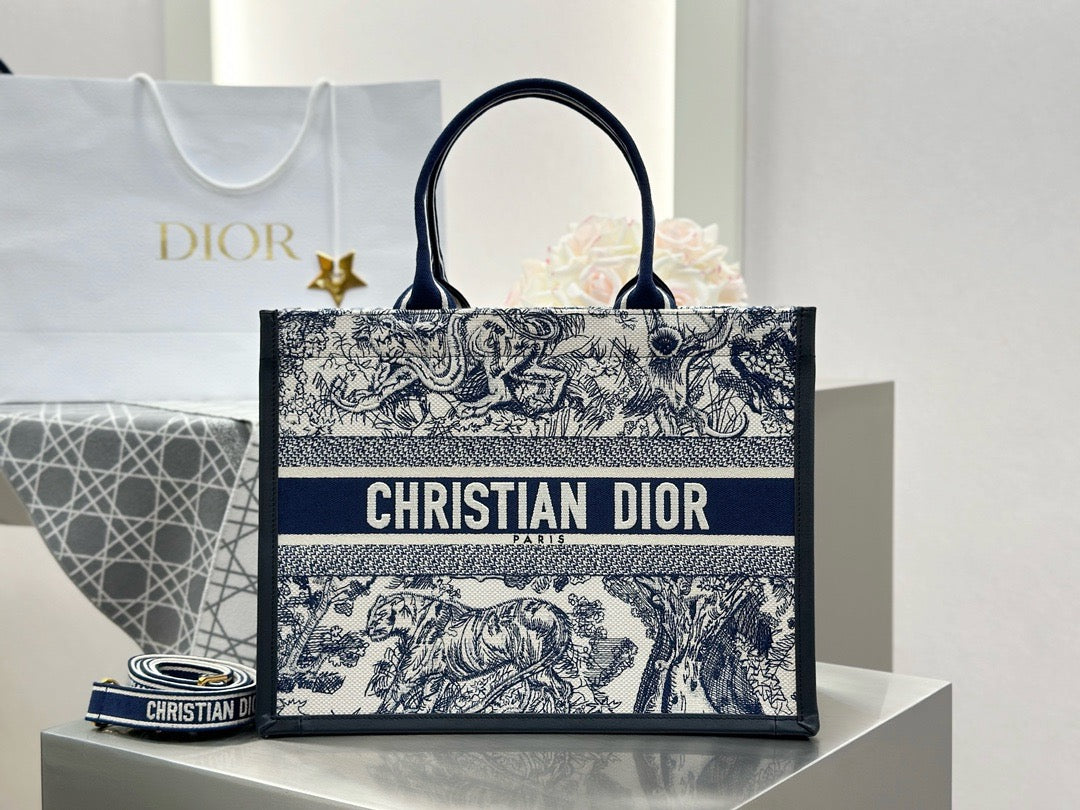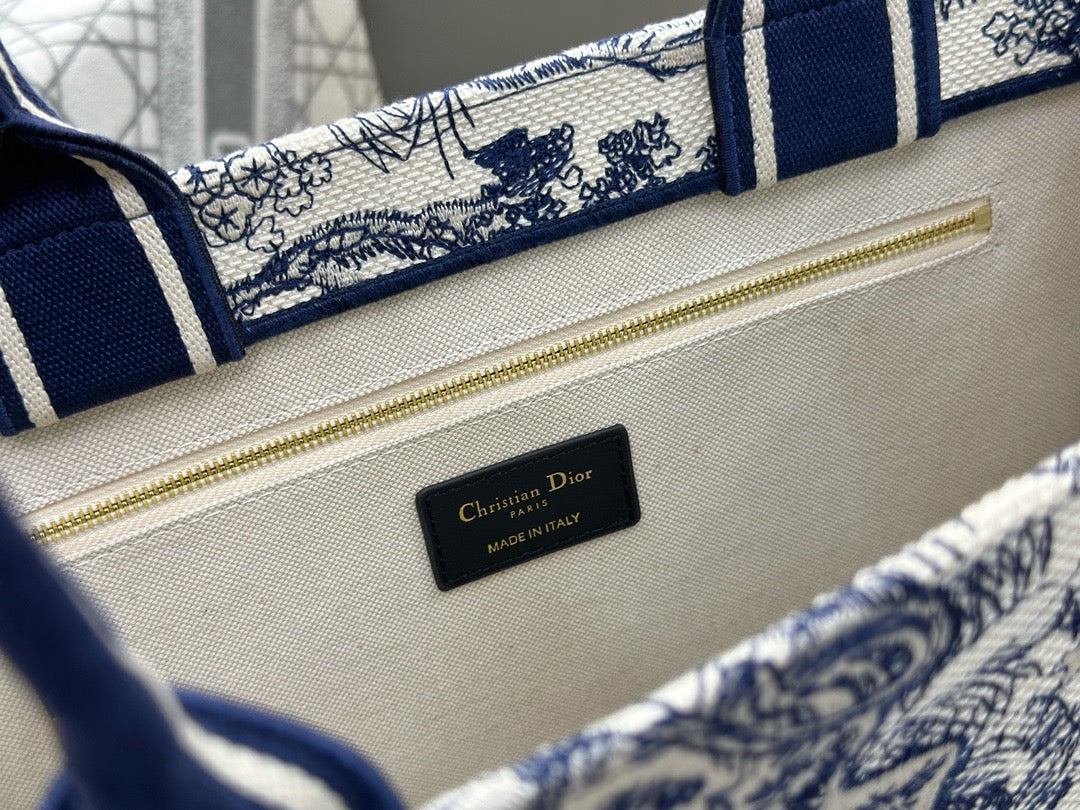 디올 트왈 드 주이 화이트 네이비 북 토트 스트랩백 미디움(Dior Toile de Jouy White Navy Book Tote Strap Bag Medium) - 고전과 모던의 우아한 조화