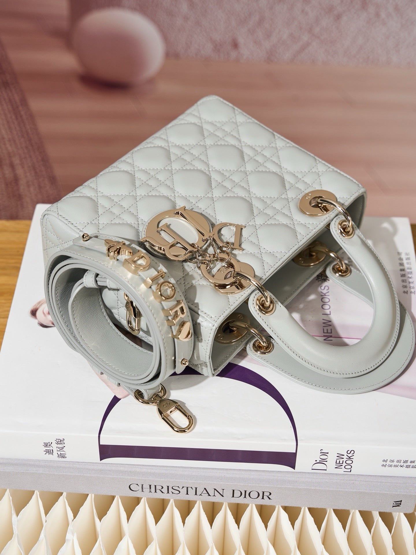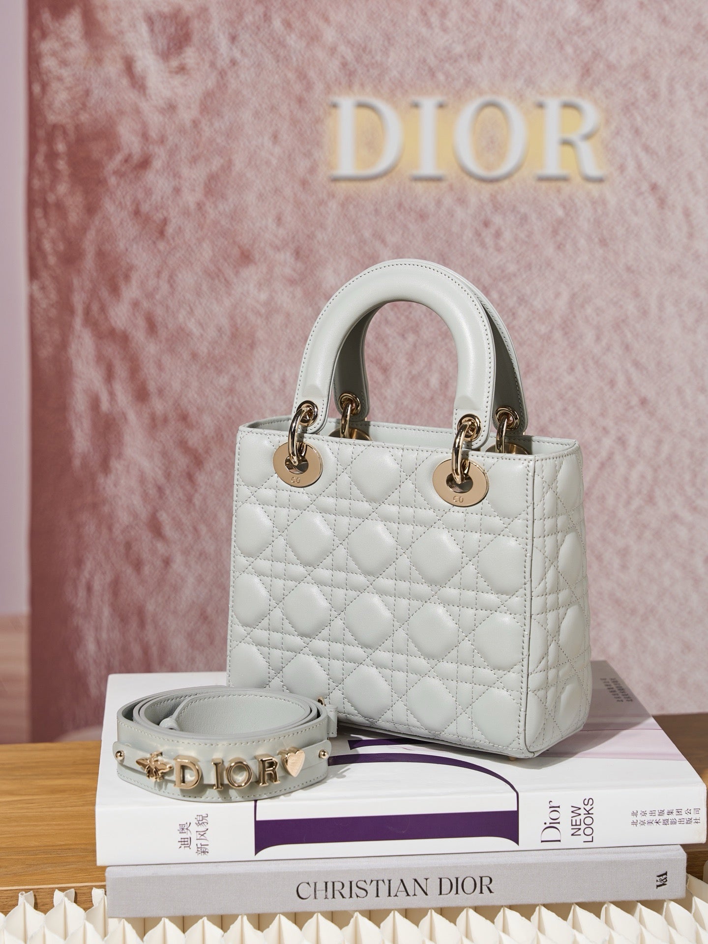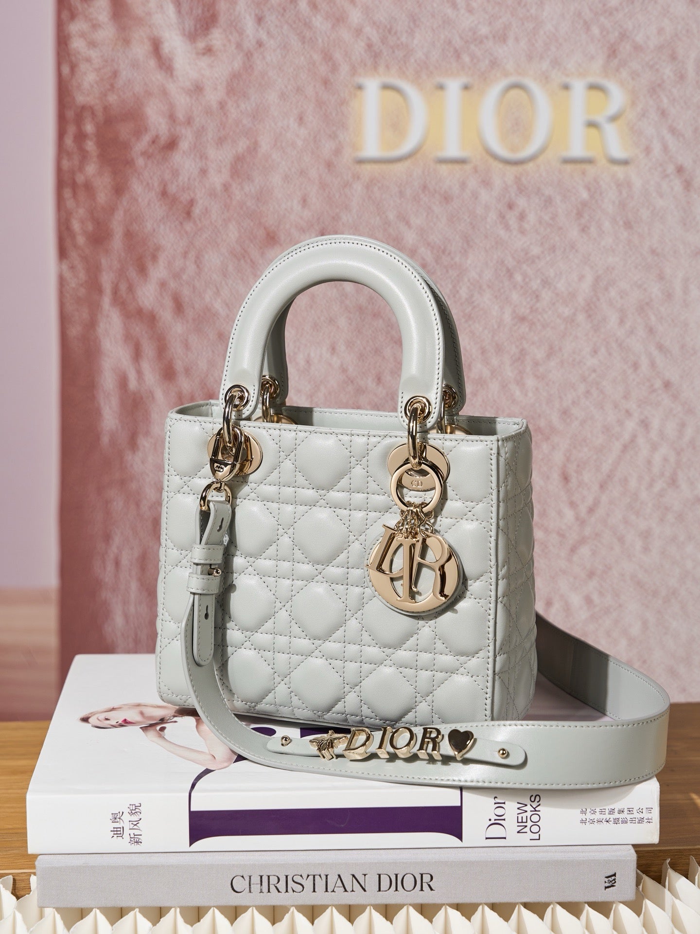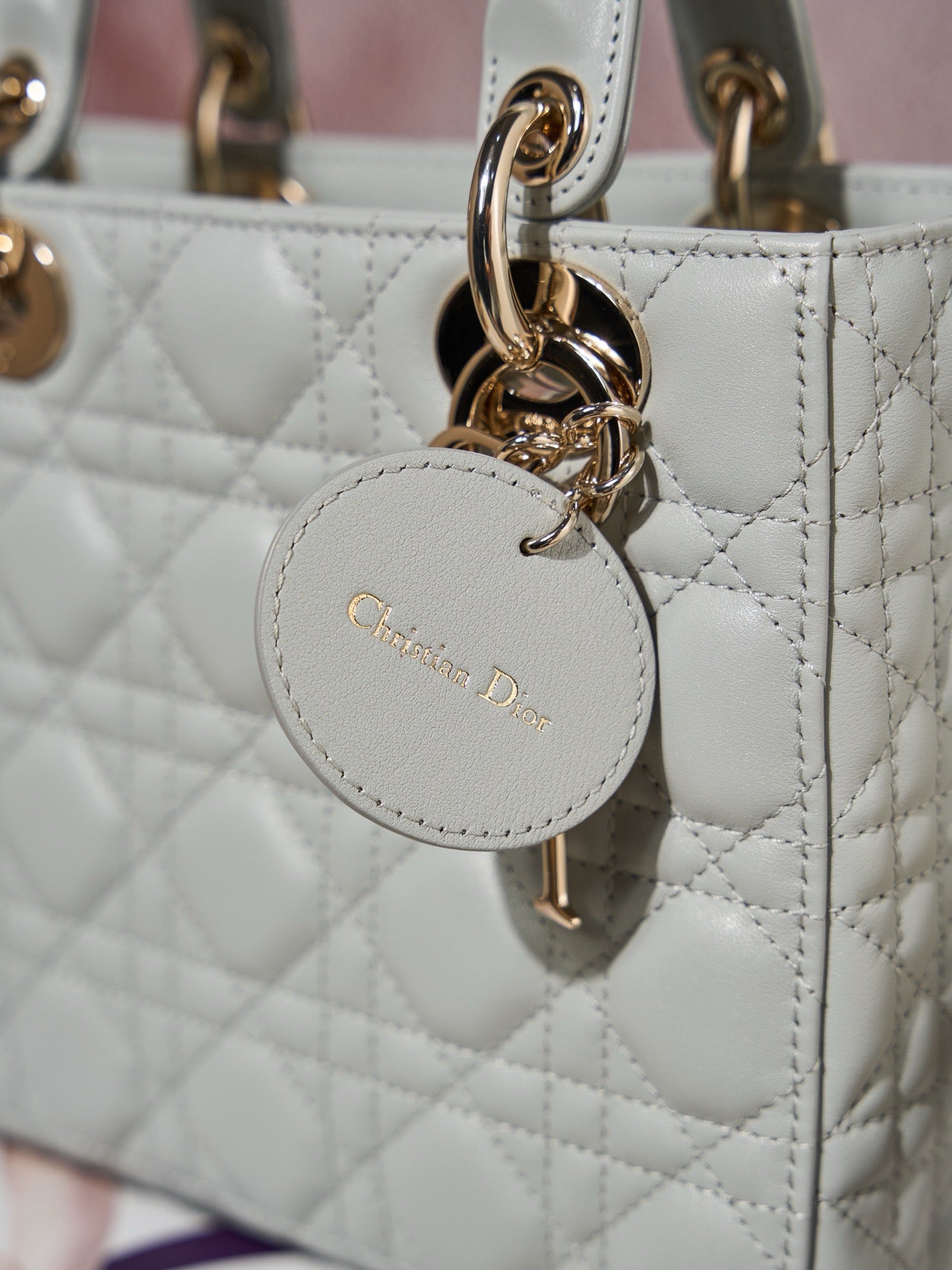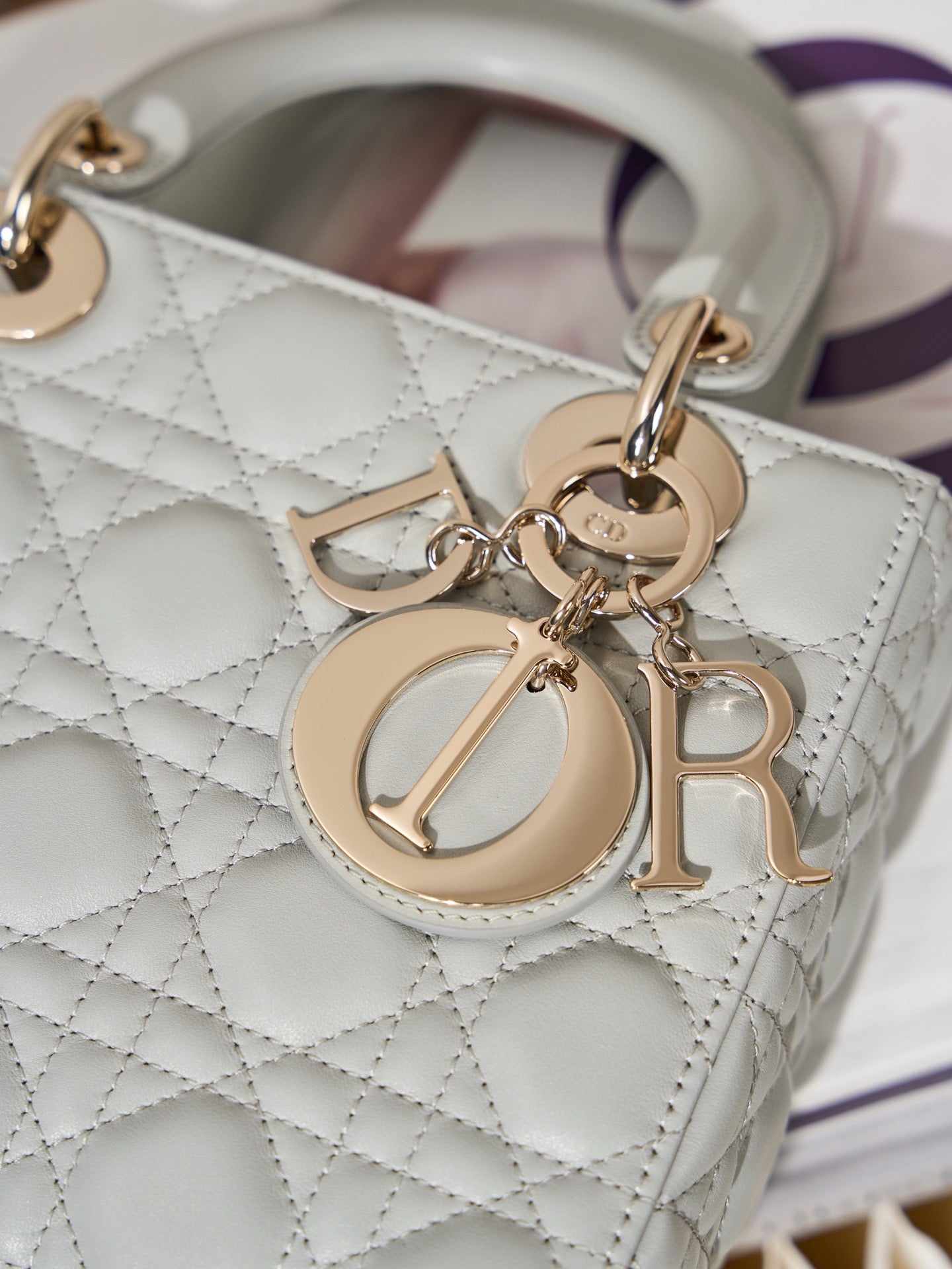 레이디 디올 백은 1995년 프랑스 영부인 베르나데트 시라크가 다이애나 왕세자비에게 선물하면서 '레이디 디올'이라는 이름을 얻은 상징적인 핸드백입니다. 이번 스몰 사이즈는 광택감이 뛰어난 페이던트 가죽을 사용해, 현대적인 감각을 더했으며, 토널 컬러의 참 장식과 퀼팅 디테일로 정교한 아름다움을 표현합니다.