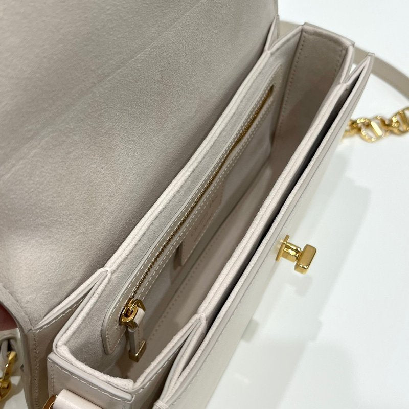 이 숄더백은 부드러운 송아지 가죽에 CD 메탈 클로저가 장식되어 있으며, 유려한 플랩 디자인과 넉넉한 내부 공간이 특징입니다. 길이 조절 가능한 가죽 스트랩은 숄더 또는 크로스백으로 활용 가능해 실용성을 더합니다.