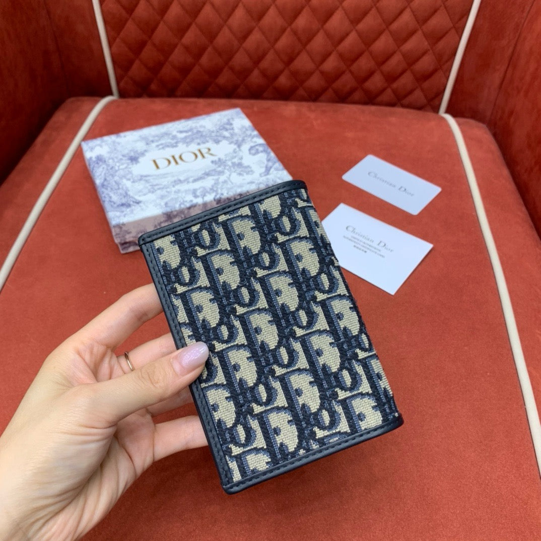 디올 오블리크 자카드, 골드 CD 로고, 다기능 수납 구조가 특징인 고급 여권 커버입니다.