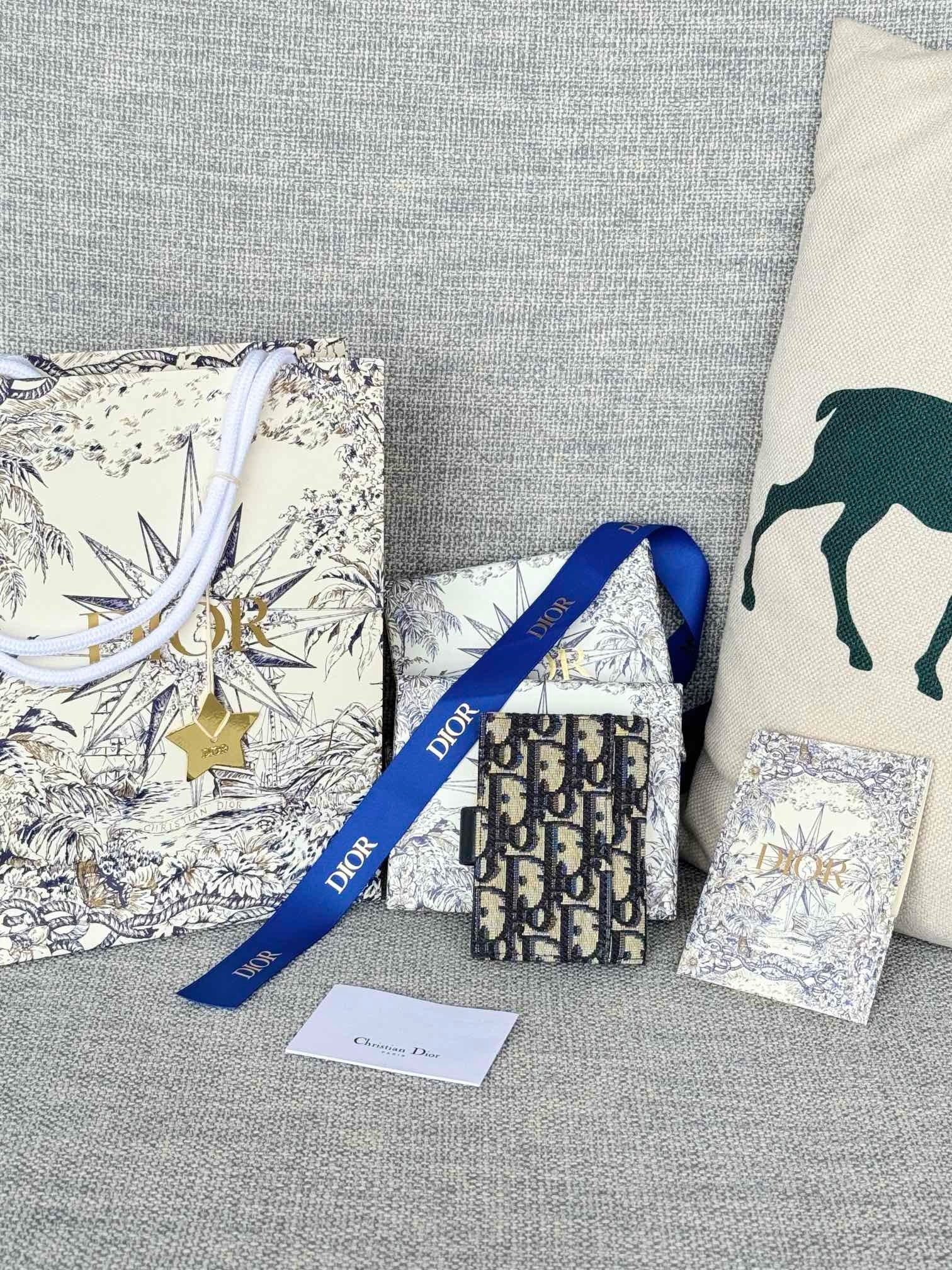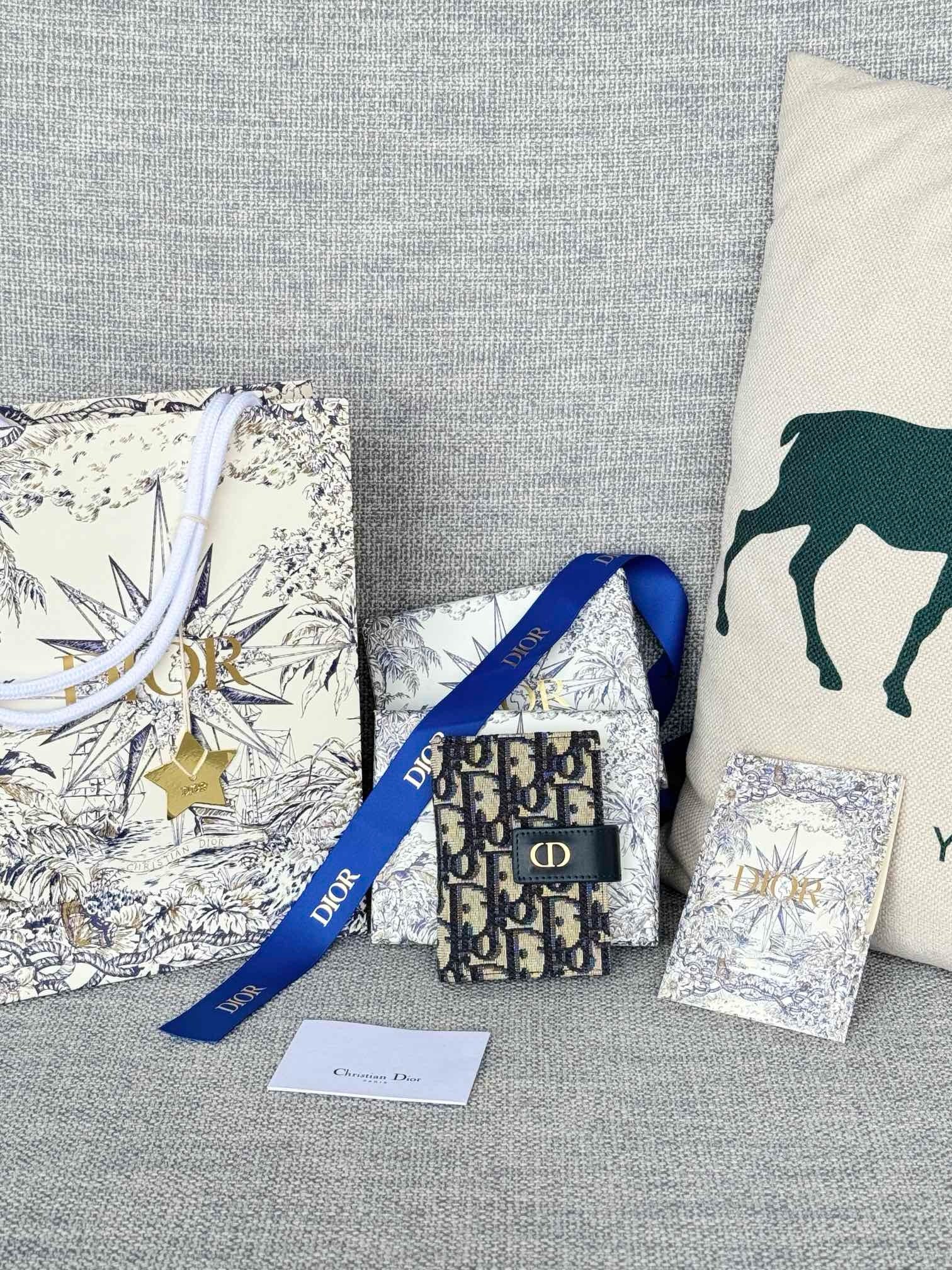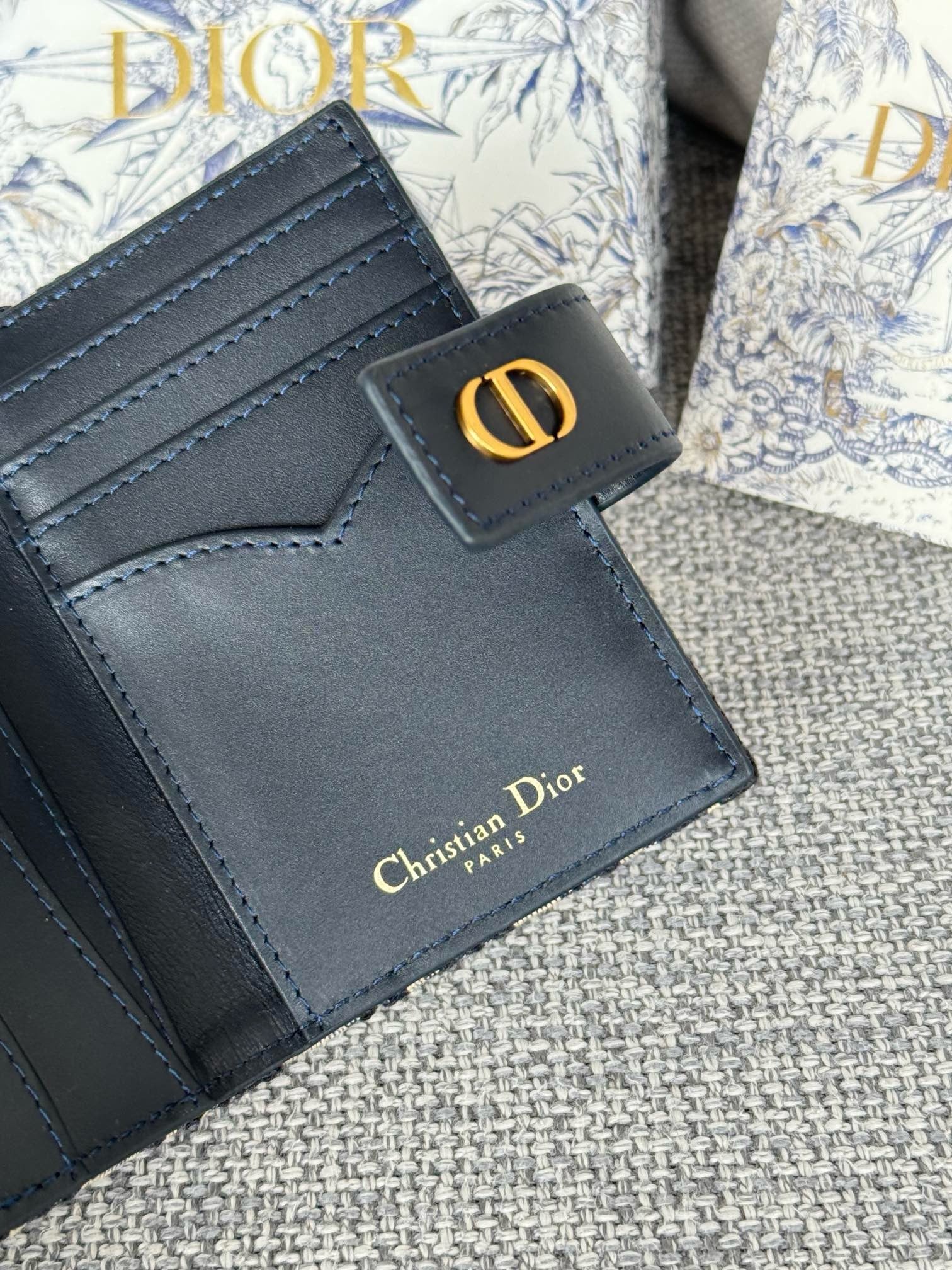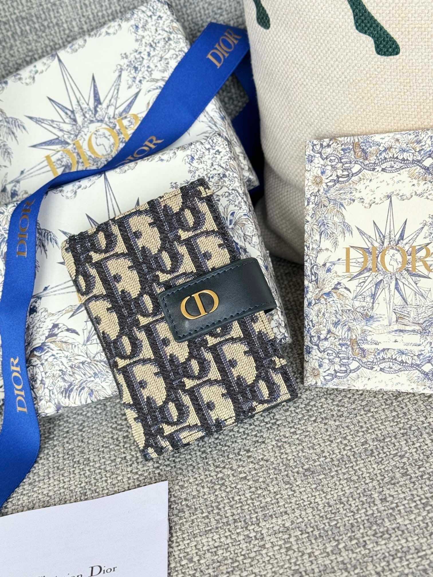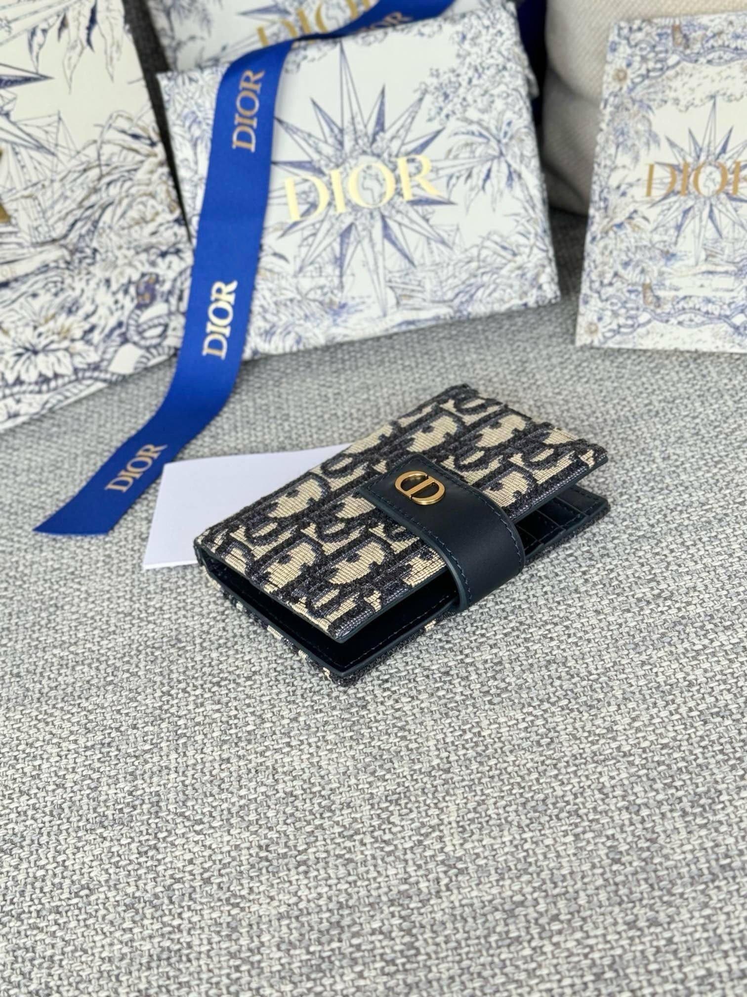 Dior Oblique 자카드 소재와 전면의 CD 로고 클라스프가 고급스러움을 강조하며, 슬림한 구조에 다수의 카드 슬롯을 갖춘 것이 특징입니다.