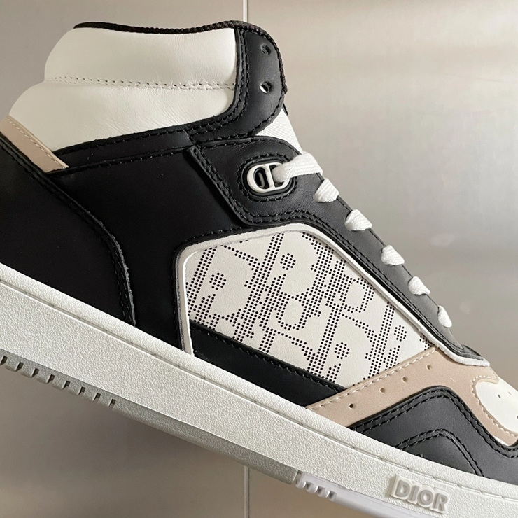 이 제품은 디올 B27 시그니처 실루엣에 다양한 텍스처의 소재를 조합하여 고급스러우면서도 강렬한 인상을 줍니다. 측면의 오블리크 갤럭시 레더 패널은 디올의 정체성을 상징하며, 전체적인 블랙 컬러 톤은 세련된 무드를 강조합니다.