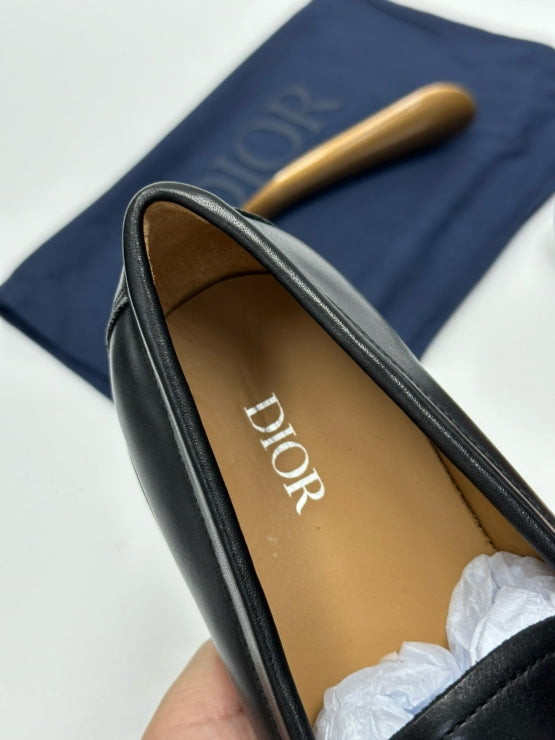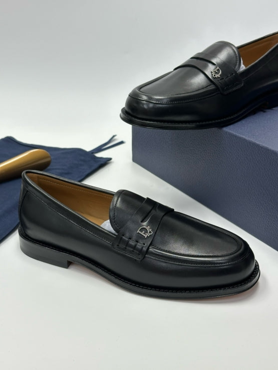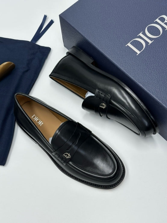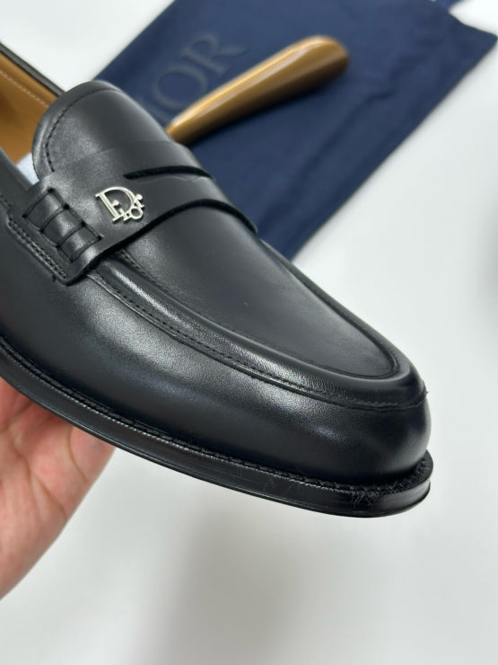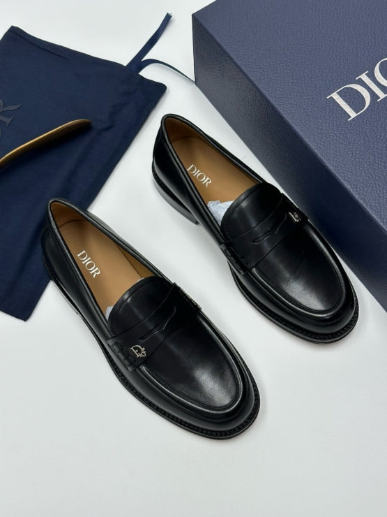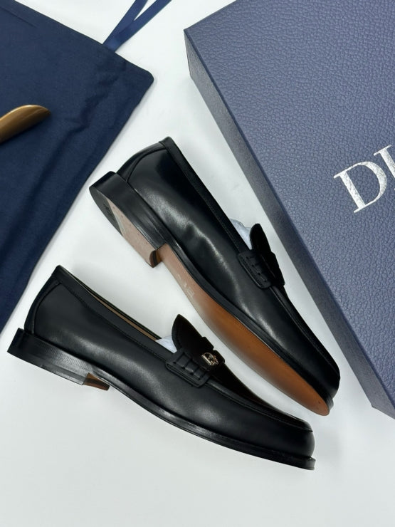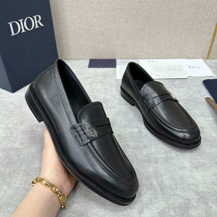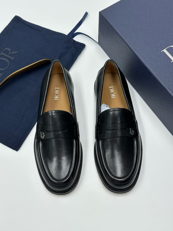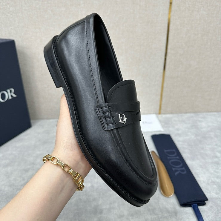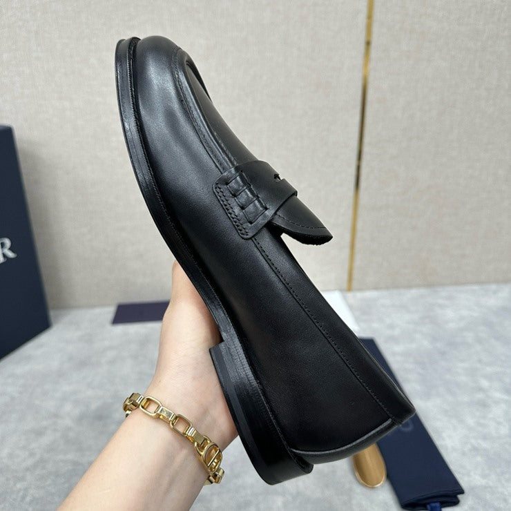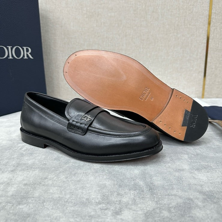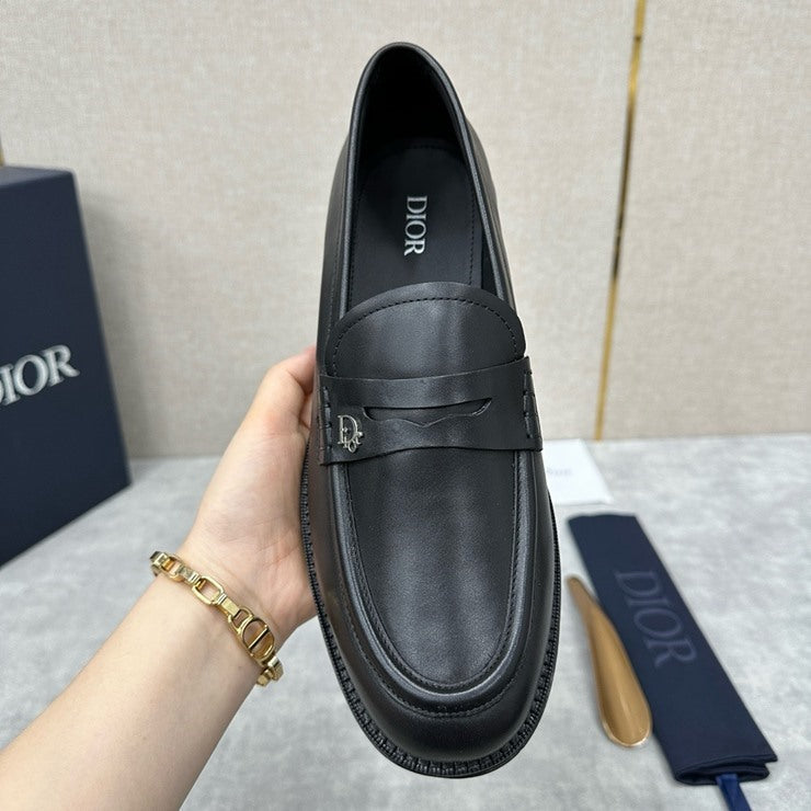 이 로퍼는 부드러운 송아지 가죽으로 제작되어 고급스러운 광택과 부드러운 착화감을 자랑하며, 앞부분에는 절제된 디올 로고 장식이 음각 또는 금속 디테일로 적용되어 브랜드의 품격을 은은하게 드러냅니다. 심플한 구조 속에 장인의 정교한 기술력이 담겨 있습니다.