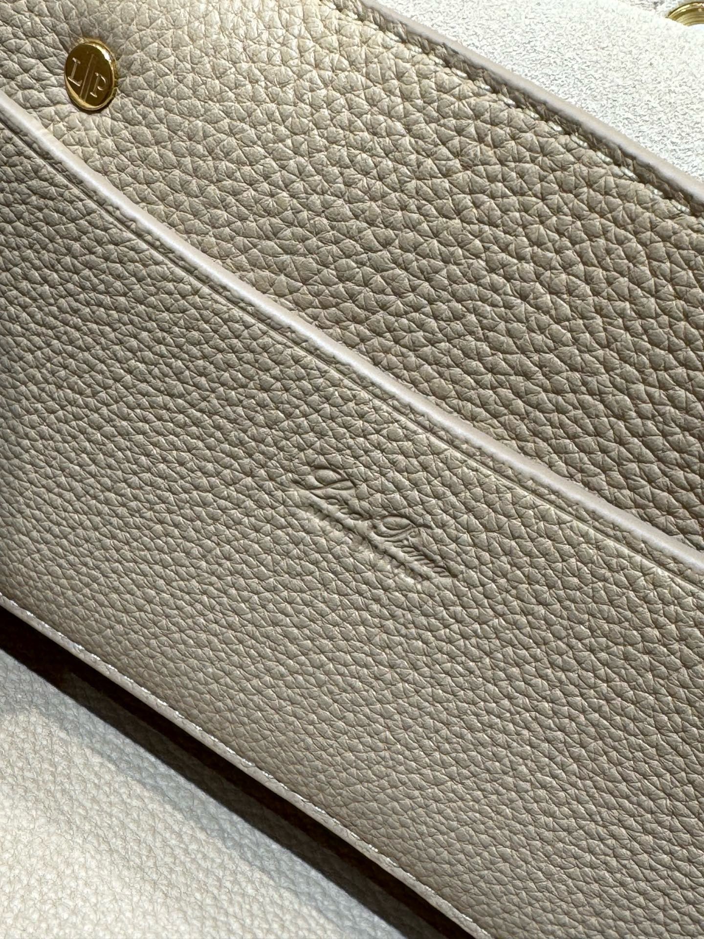 룸백 L25는 작고 견고한 직사각형 실루엣과 간결한 라인이 특징입니다. 모델에 따라 코튼 캔버스, 리넨, 가죽 등 다양한 고급 소재로 제작되며, 로로피아나 특유의 정제된 엠보싱 로고 디테일이 브랜드 정체성을 은은하게 드러냅니다. 뉴트럴 컬러 구성은 어떤 스타일에도 자연스럽게 어울립니다.