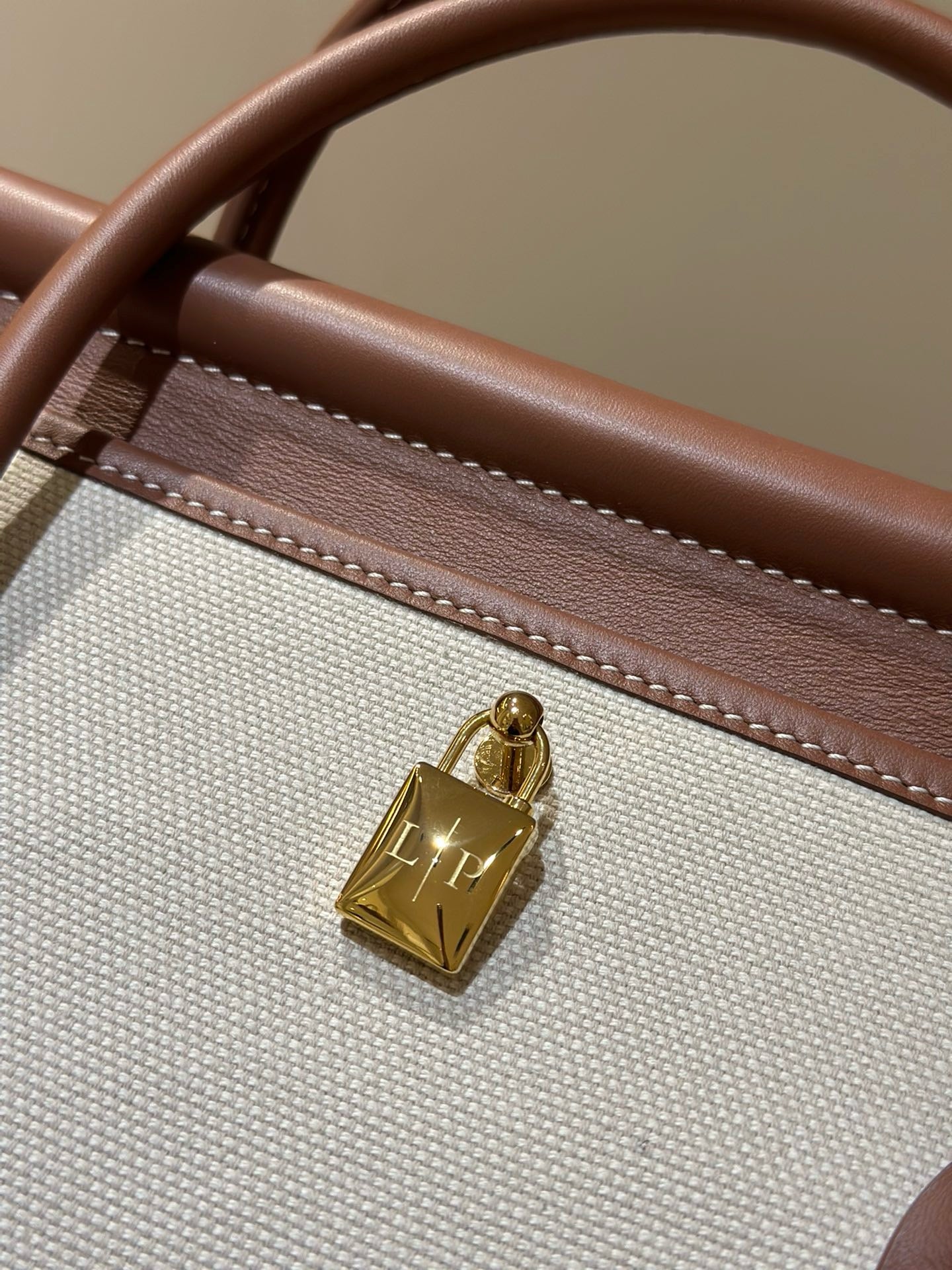로로피아나 룸백 L32 코튼(Loro Piana Loom Bag L32 Cotton)은 이탈리아 명품 브랜드 로로피아나의 우아한 감성과 뛰어난 장인정신이 녹아든 고급스러운 토트백입니다. 전통적인 직조기에서 영감을 얻은 구조적 디자인과 부드러운 코튼 소재의 조화가 돋보이며, 세련되면서도 실용적인 데일리 아이템으로 사랑받고 있습니다.