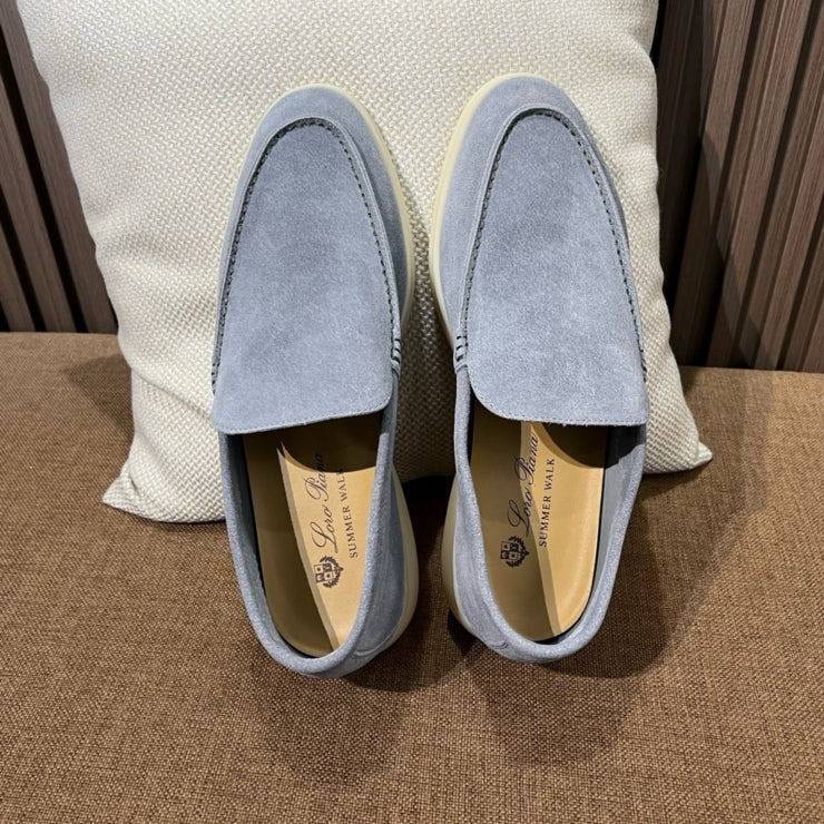 로로피아나 썸머워크 블루(Loro Piana Summer Walk Blue)는 이탈리아 럭셔리 슈즈 브랜드 로로피아나의 대표적인 드라이빙 슈즈로, 시원하고 세련된 블루 컬러가 돋보이는 여름철 데일리 슈즈입니다.