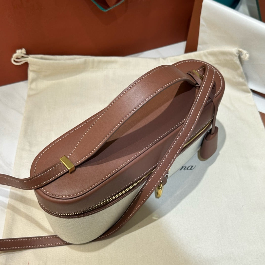 L29 사이즈는 넉넉한 수납이 가능하면서도 슬림한 형태를 유지하여, 포멀한 자리와 일상 외출 모두에 적합합니다. 천연 코튼 소재에 송아지가죽 트리밍이 더해져 내추럴하면서도 고급스러운 느낌을 자아내며, 앞면의 브랜드 로고 디테일로 완성도를 높였습니다.
