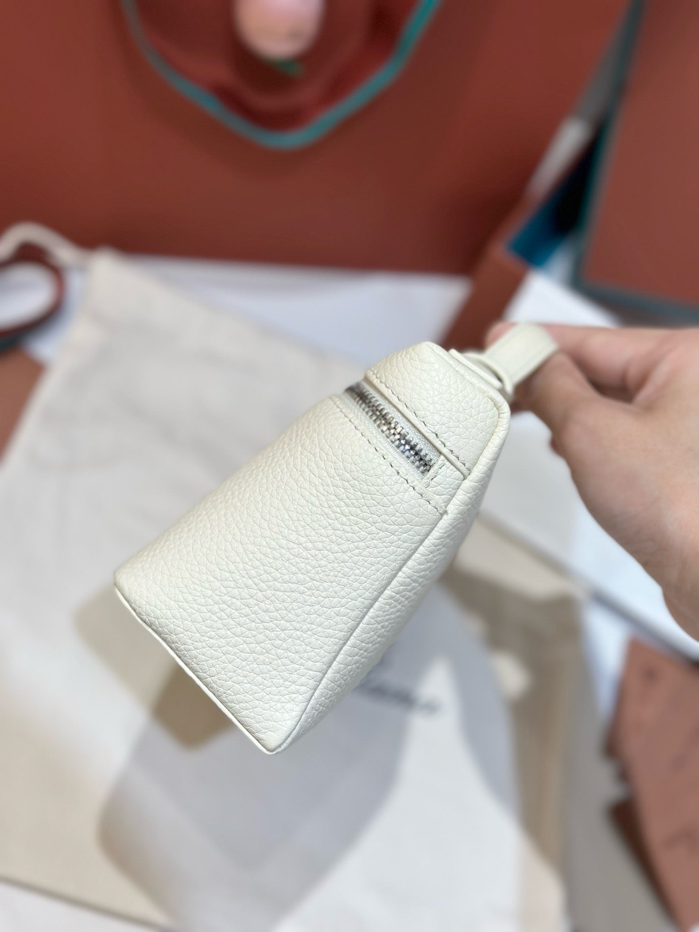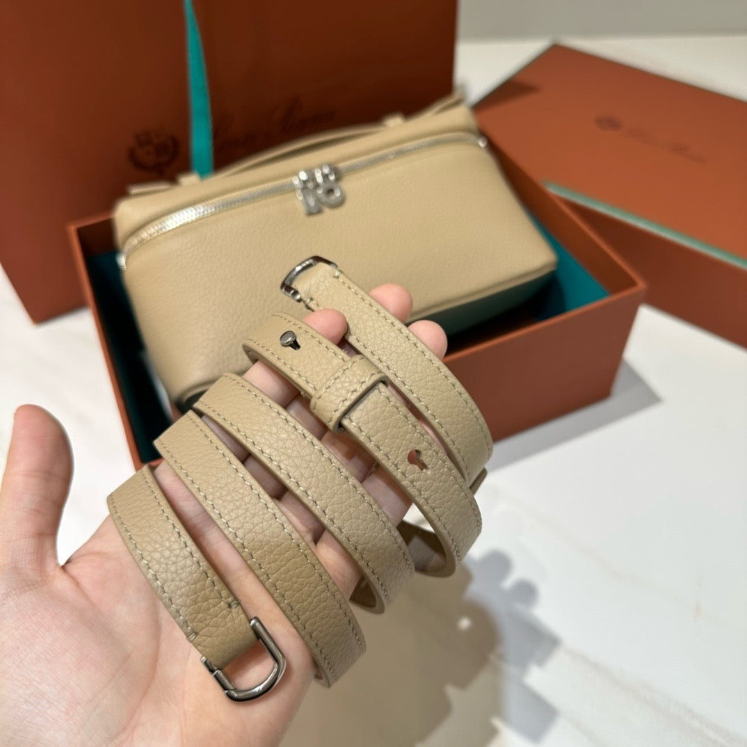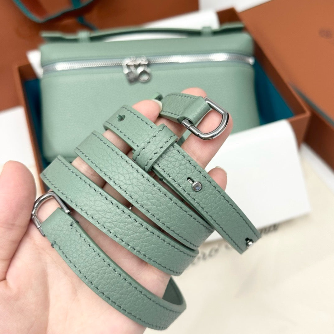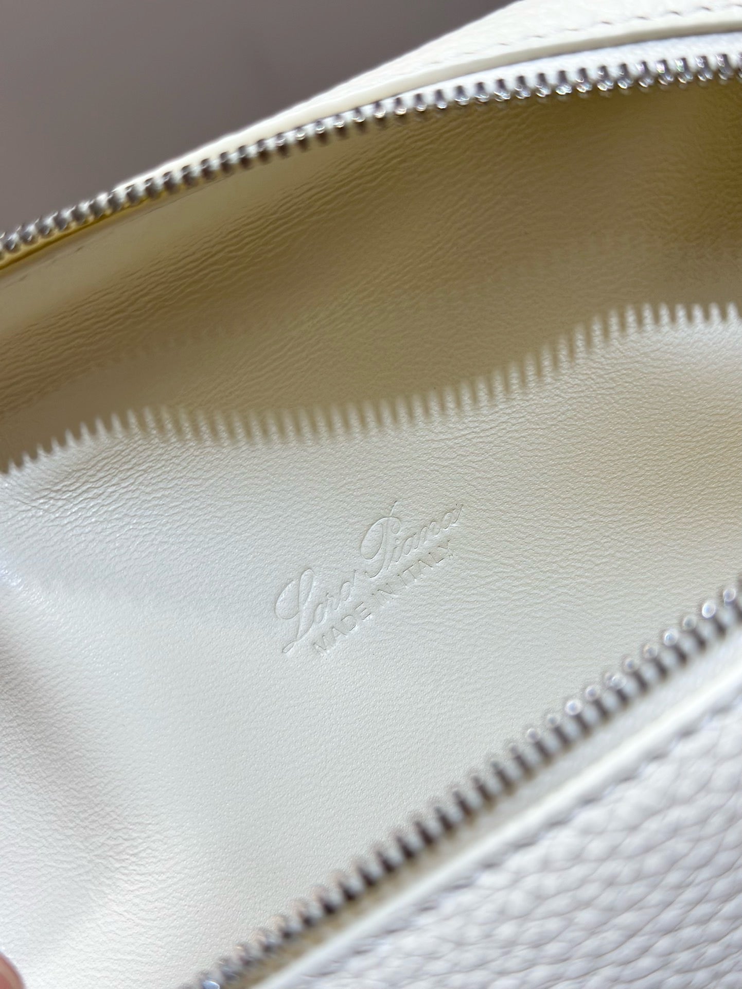 로로피아나 엑스트라 포켓 L19 은장(Loro Piana Extra Pocket L19 Palladium Hardware)은 미니멀한 디자인에 세련된 은장 하드웨어를 더해 현대적인 고급스러움을 완성한 프리미엄 미니백입니다. 작지만 완성도 높은 디테일과 로로피아나의 정제된 감성이 어우러진 제품입니다.