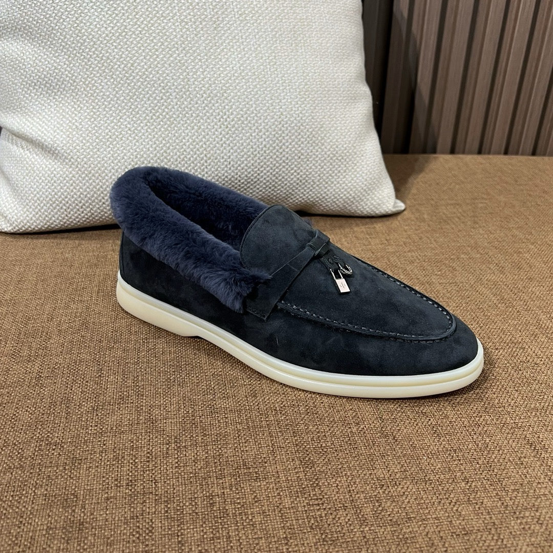 로로피아나 퍼 썸머워크 로퍼(Loro Piana Fur Summer Walk Loafers)는 캐시미어 소재의 명가 로로피아나가 선보이는 프리미엄 드라이빙 슈즈로, 고급스러운 퍼 안감이 더해져 사계절 내내 스타일과 편안함을 동시에 누릴 수 있는 제품입니다. 이탈리아 장인 정신이 깃든 섬세한 마감과 절제된 디자인이 특징입니다.