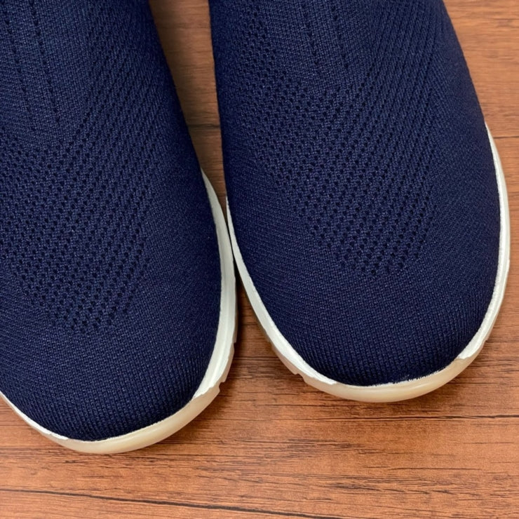 네이비 컬러의 니트 소재는 도시적인 감성과 고급스러움을 동시에 담아내며, 심플한 디자인과 슬립온 구조로 손쉽게 착용할 수 있습니다. 유연한 니트 어퍼는 발을 부드럽게 감싸며, 활동적인 움직임에도 편안함을 유지합니다.