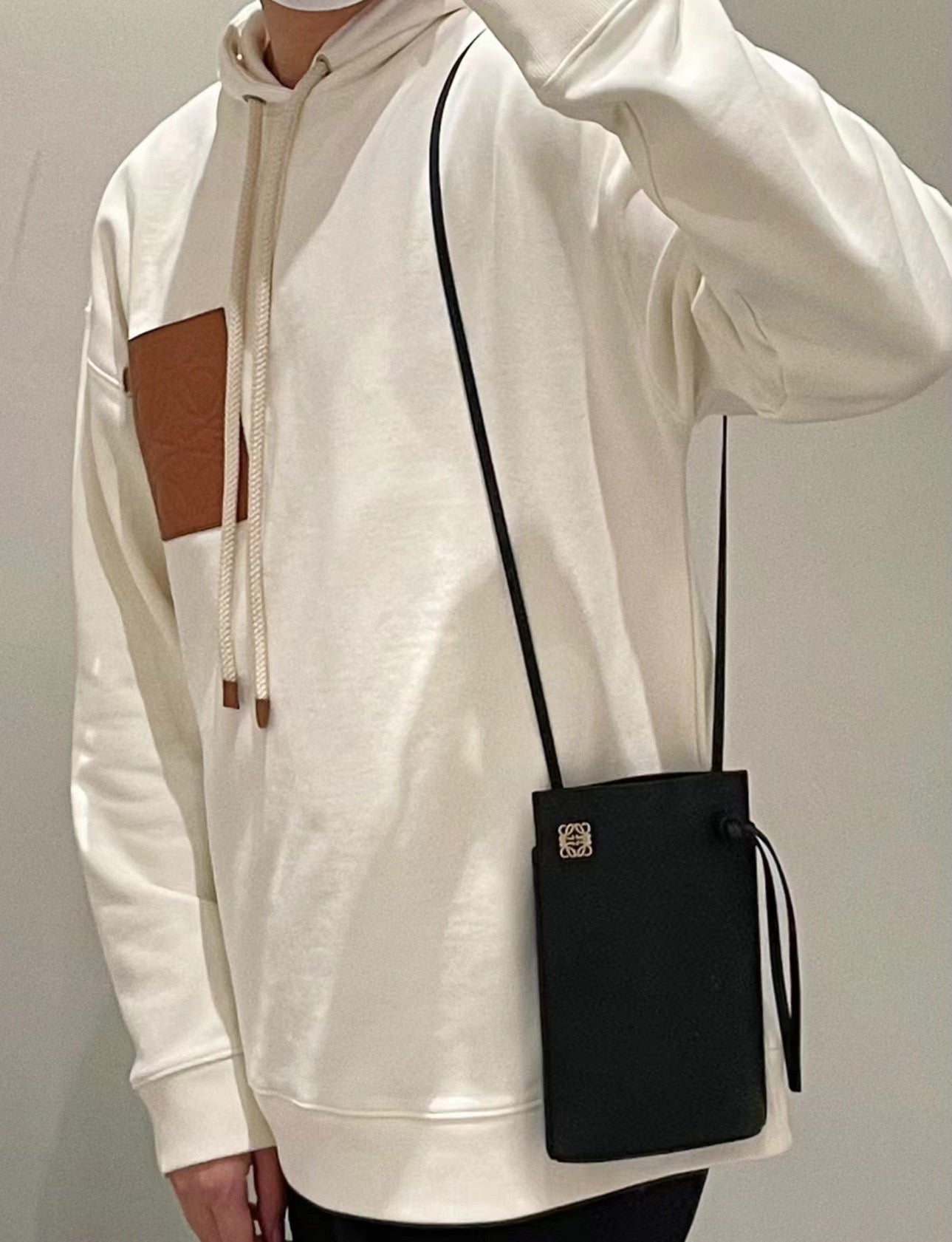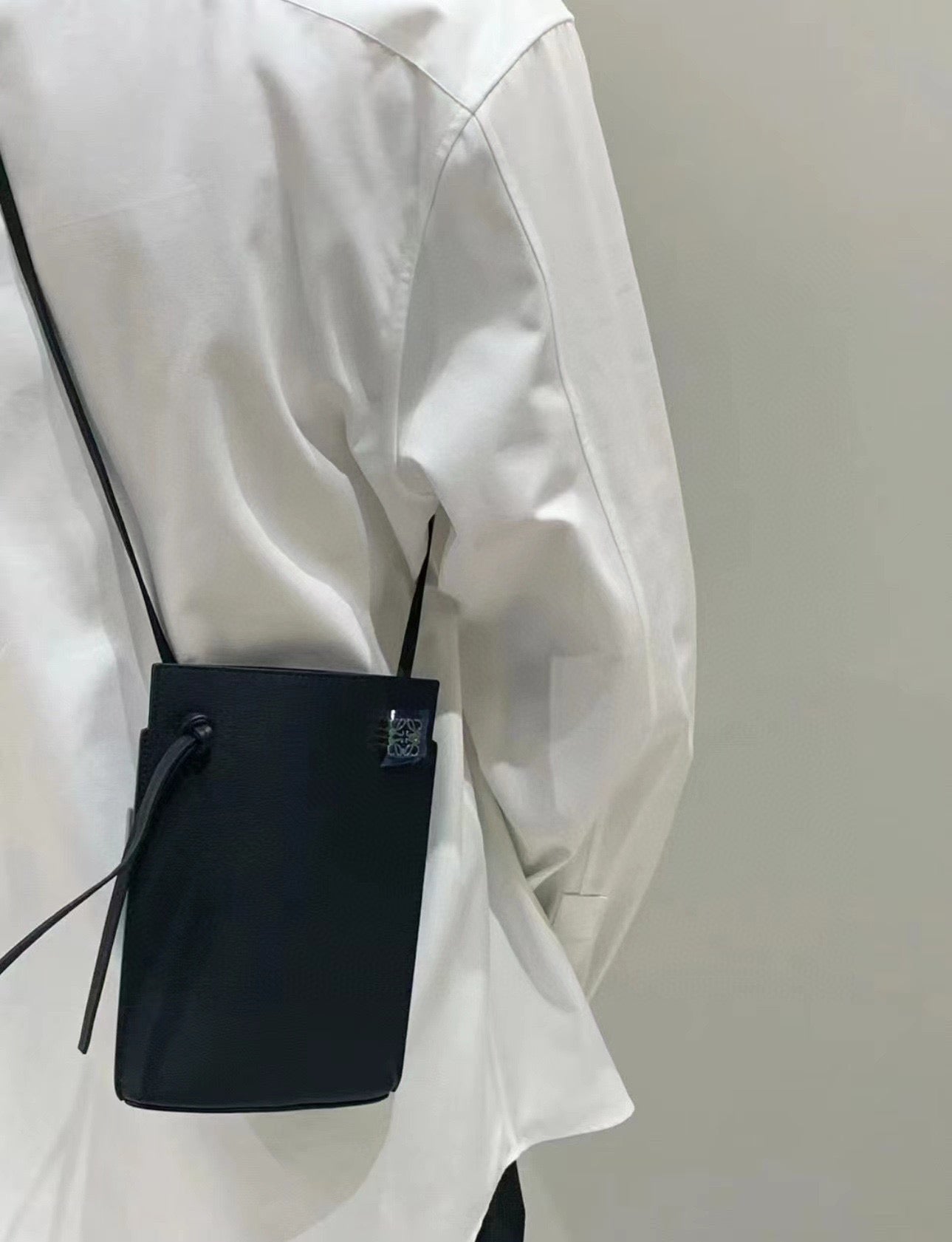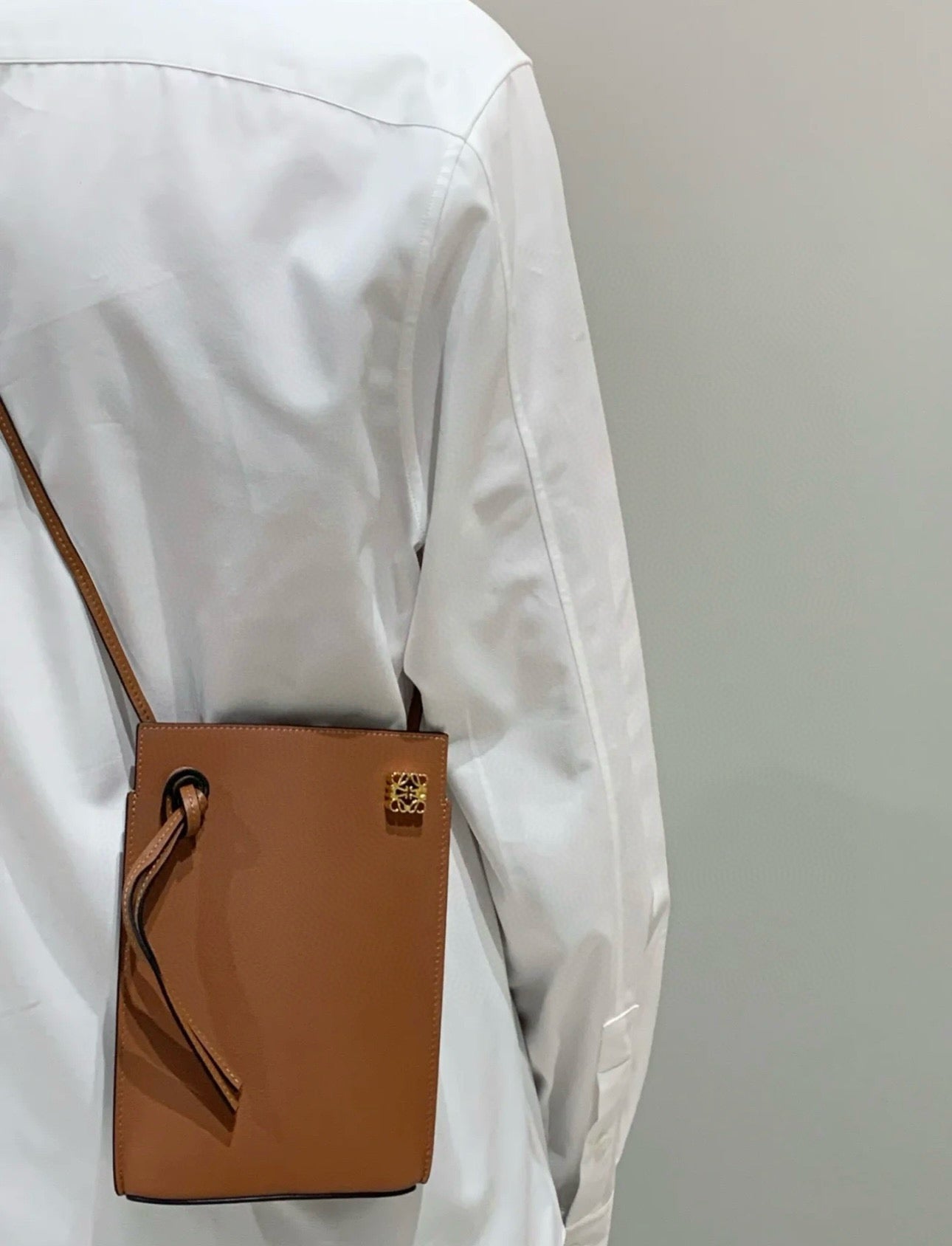 이 백은 주머니를 연상시키는 사각형의 콤팩트한 실루엣에 자석 플랩 클로저와 로에베 아나그램 로고가 더해진 디자인이 특징입니다. 스트랩 길이 조절이 가능하며 크로스백 또는 숄더백으로 연출할 수 있어 실용적입니다.