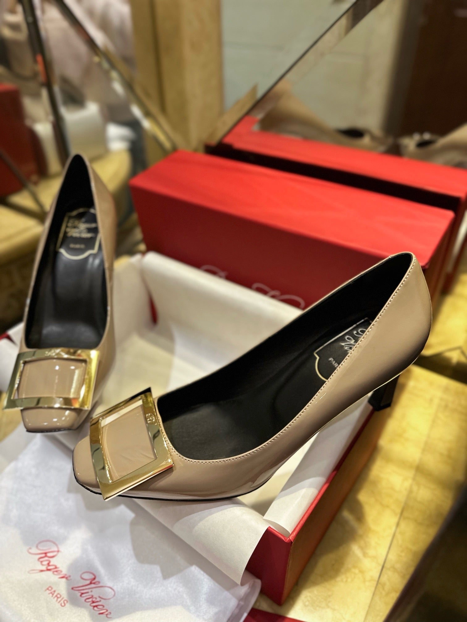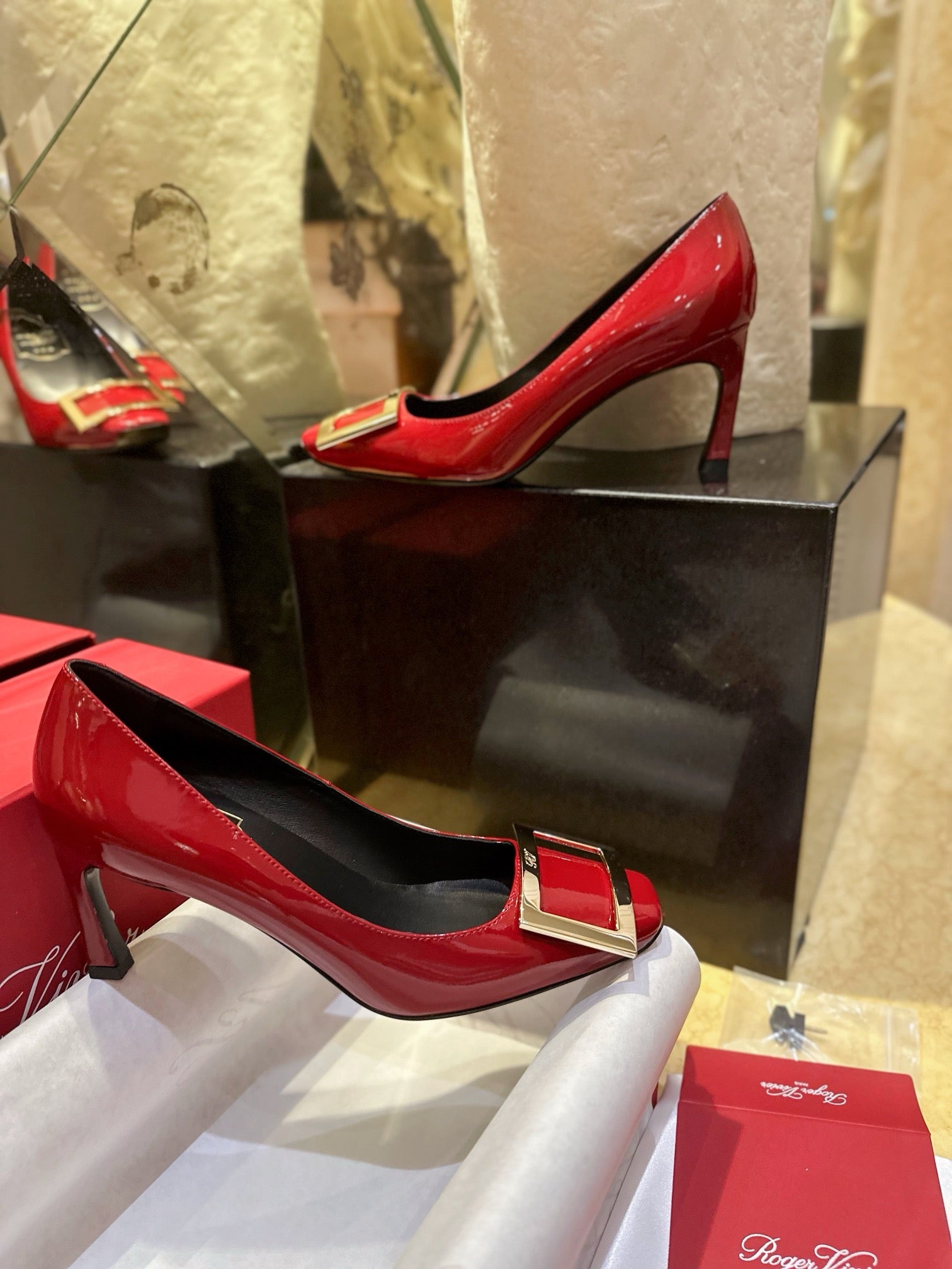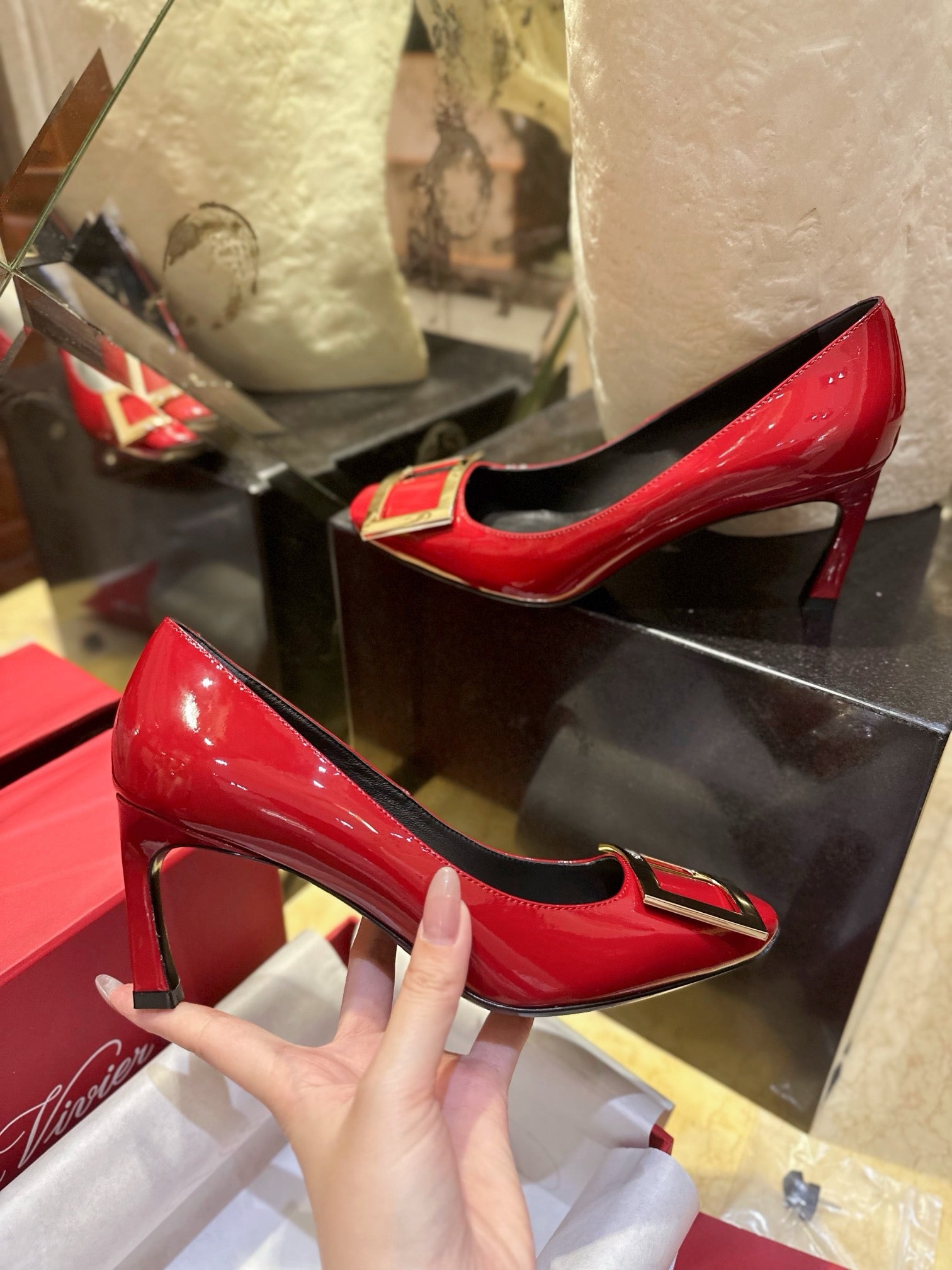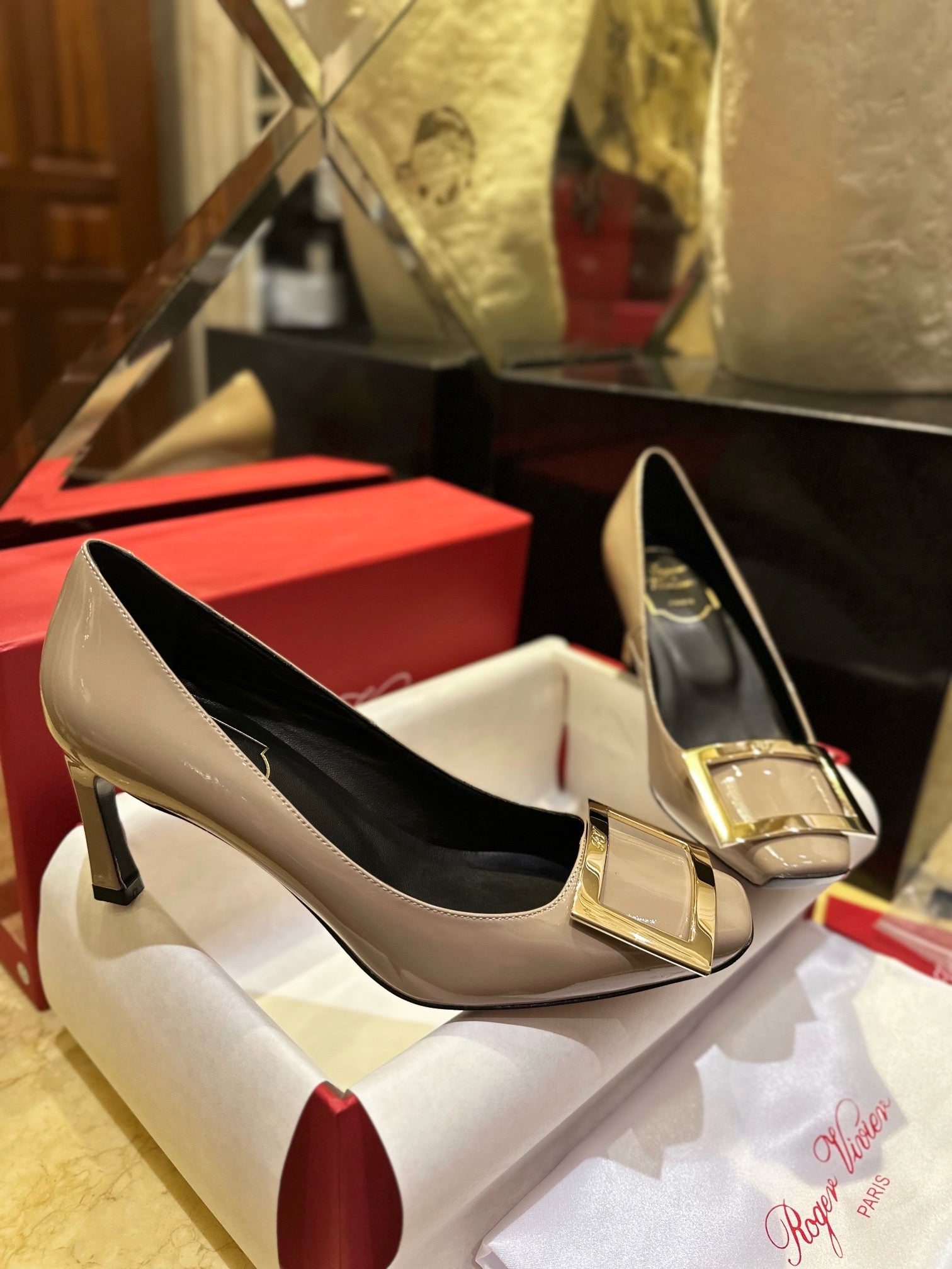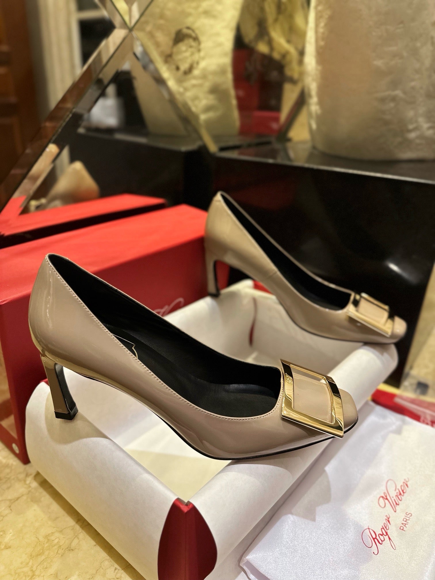 로저비비에 트럼펫 메탈 버클 힐