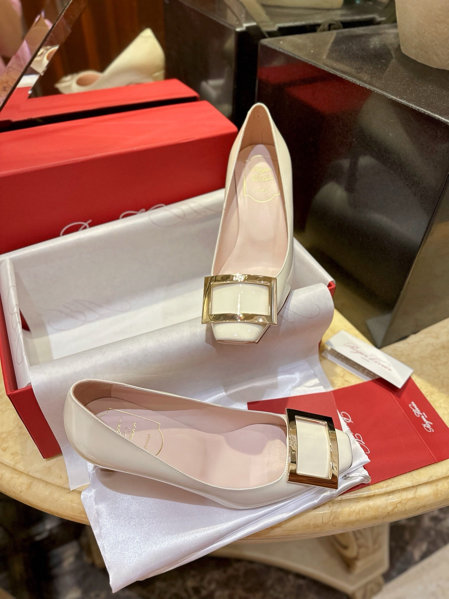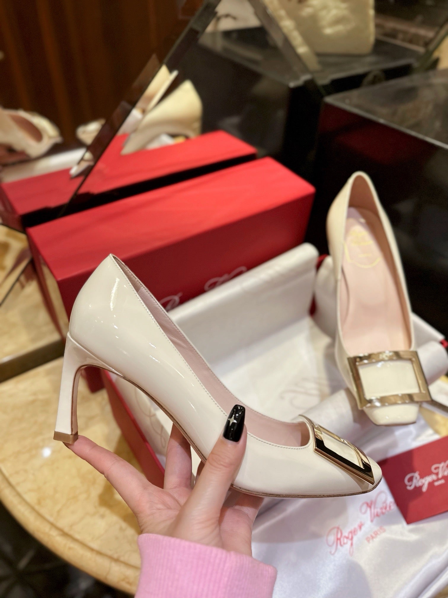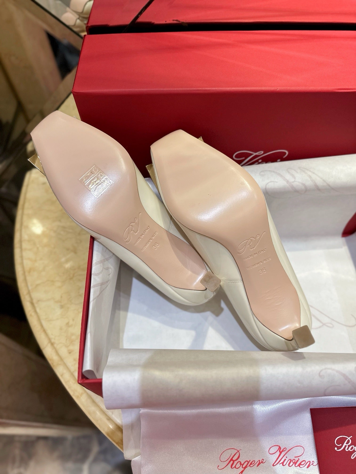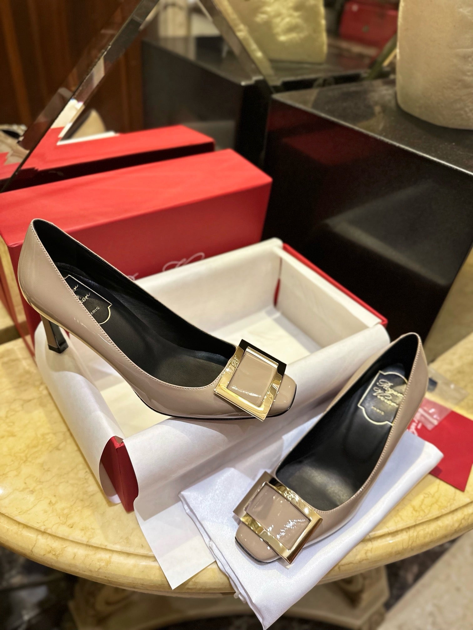 로저비비에 트럼펫 메탈 버클 힐