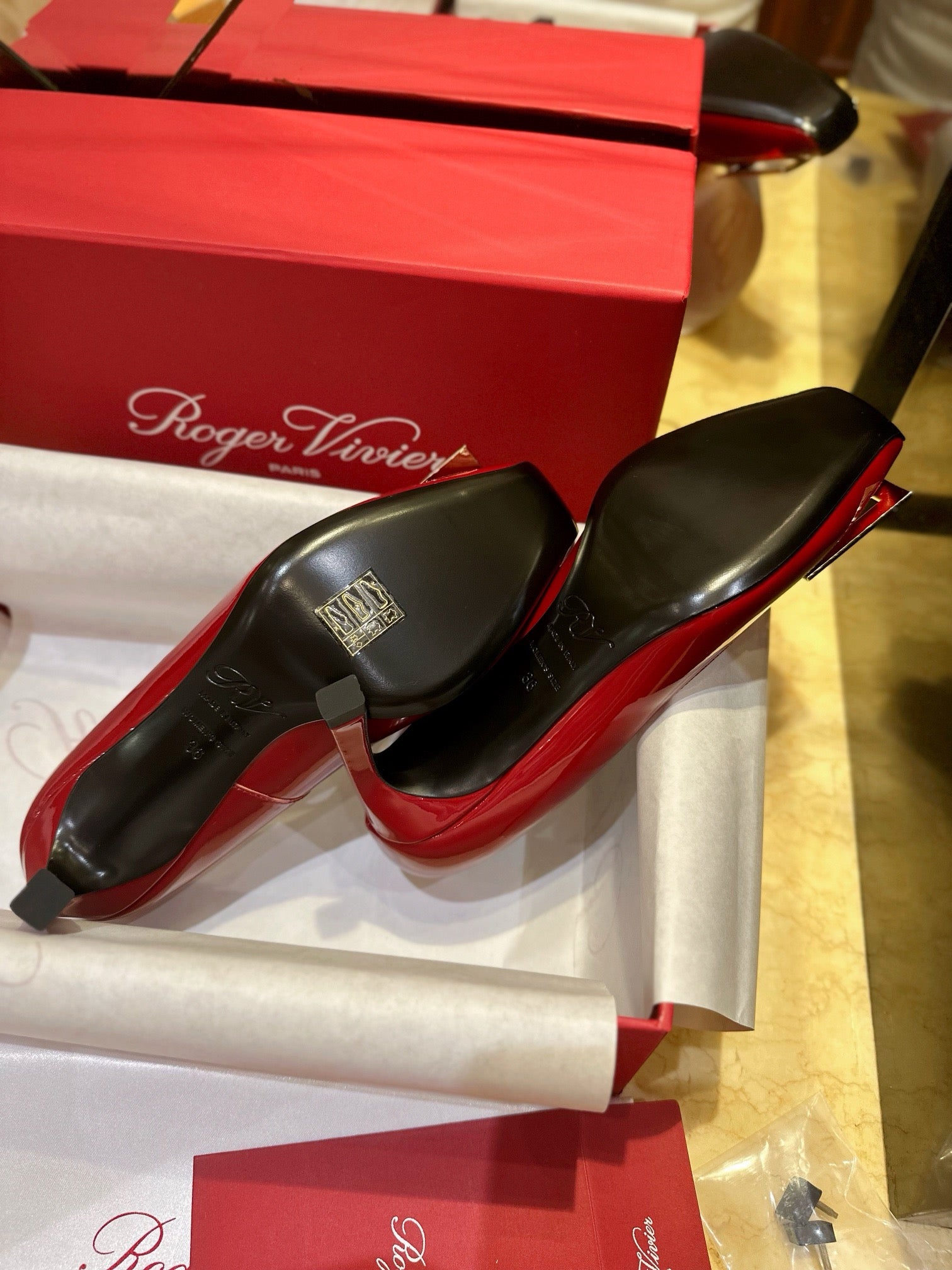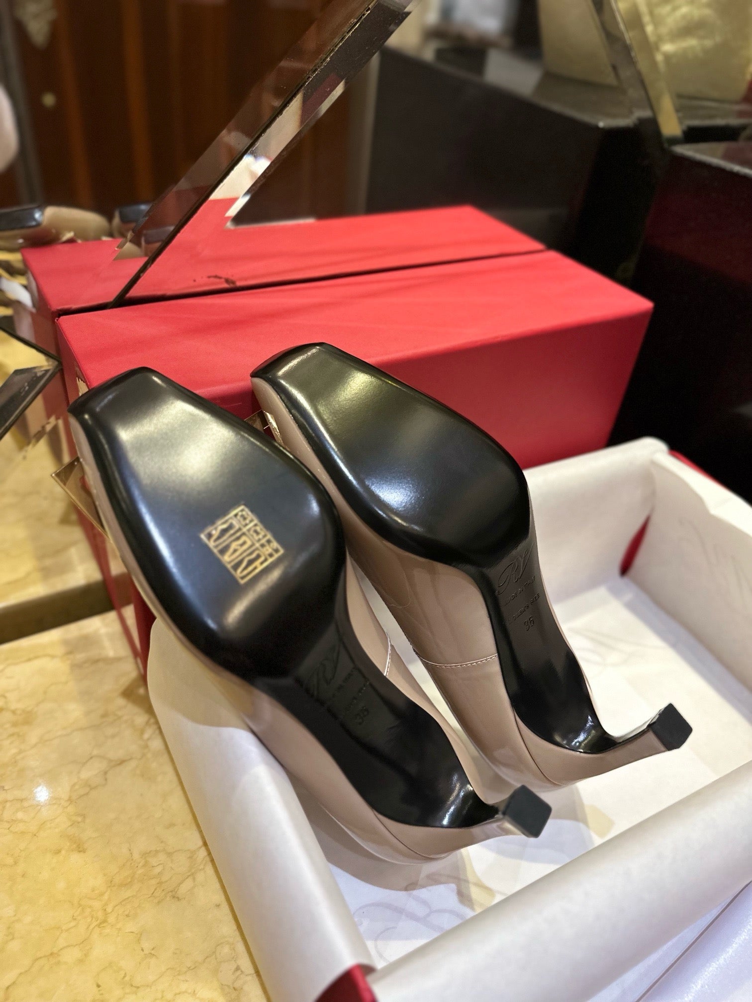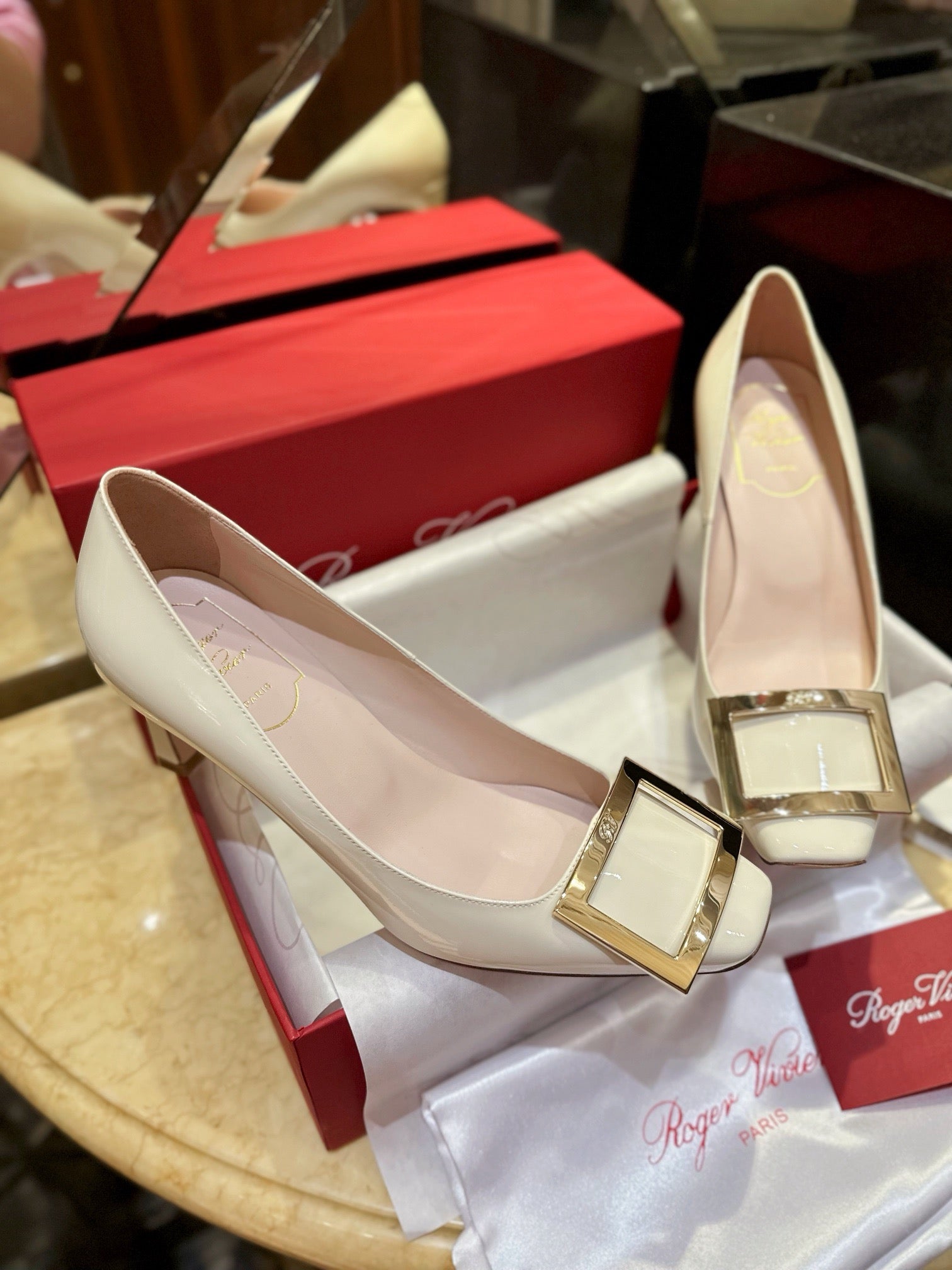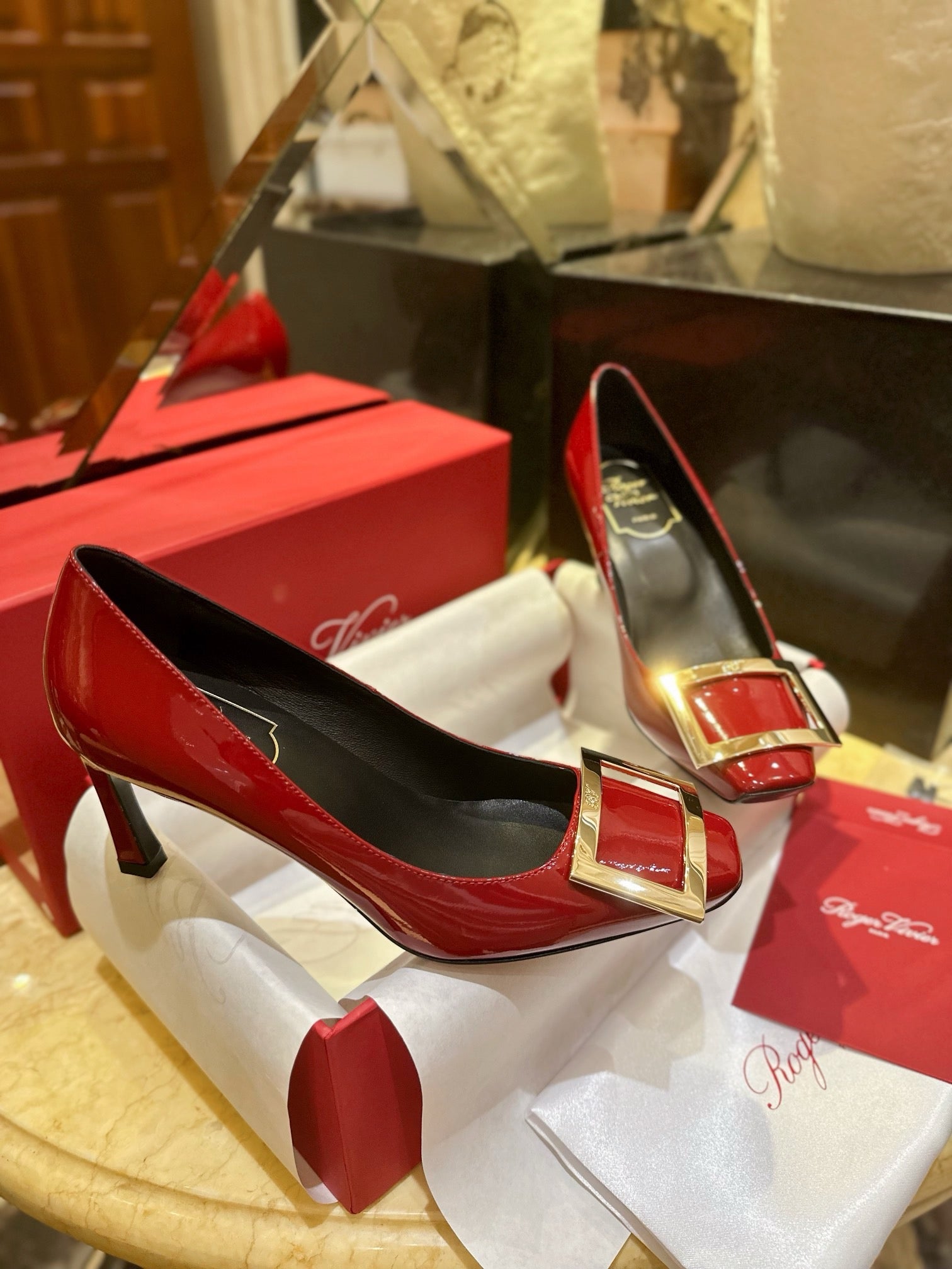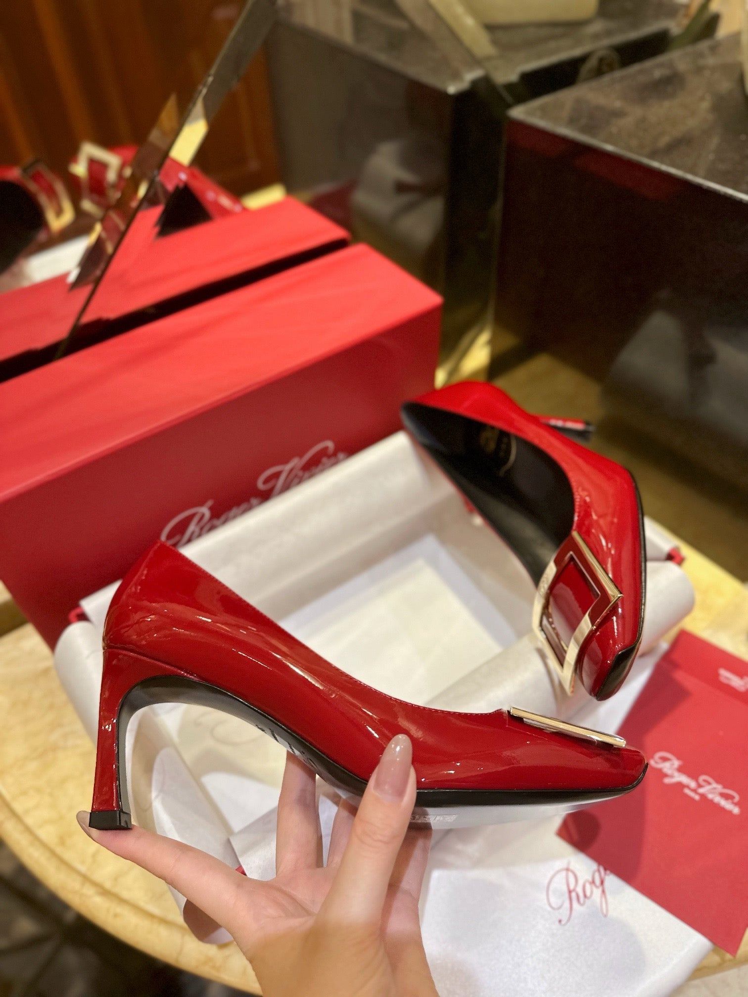 로저비비에 트럼펫 메탈 버클 힐
