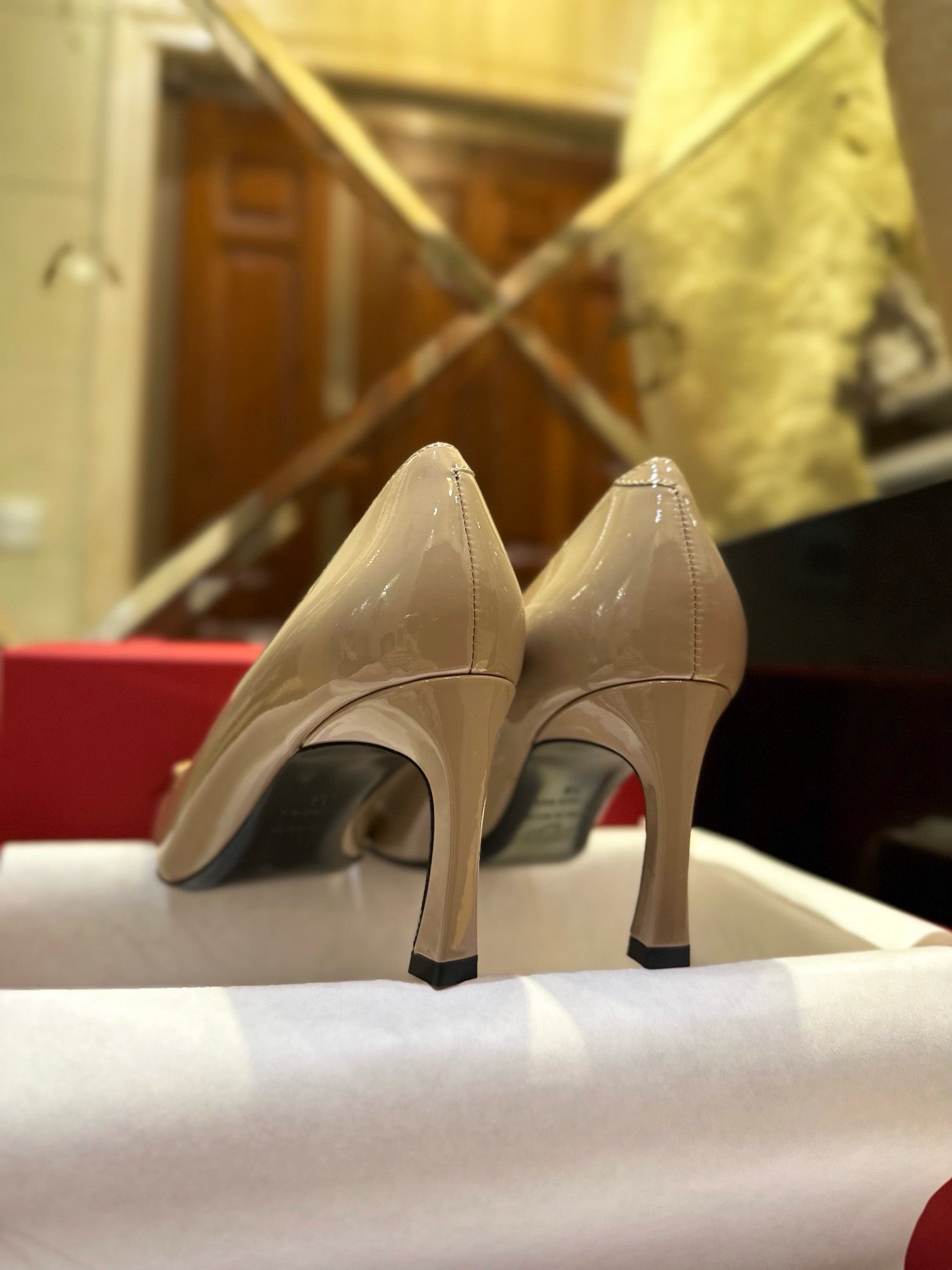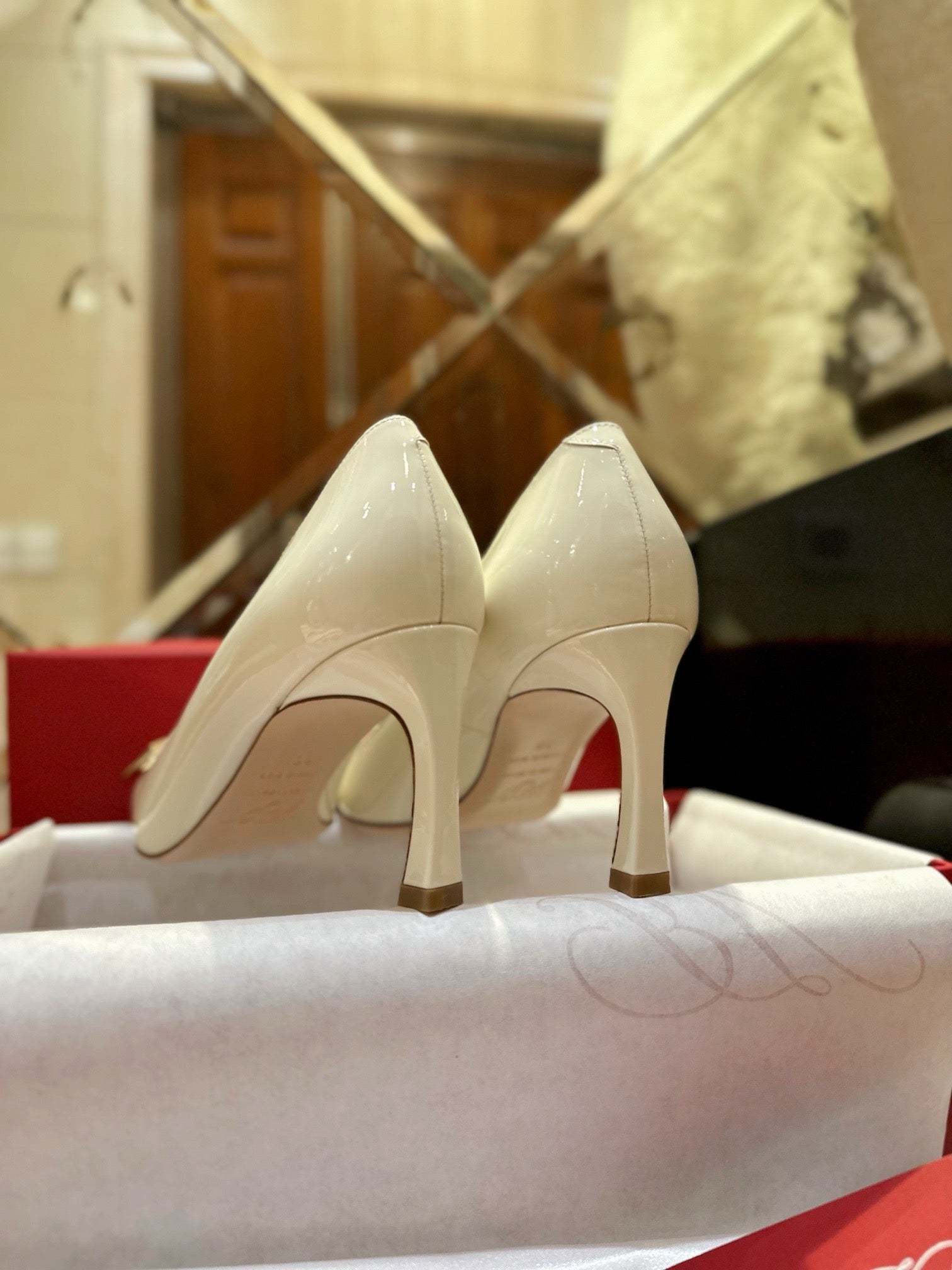로저 비비에는 구조적이고 조형적인 슈즈 디자인으로 유명한 프랑스 하이엔드 브랜드입니다. 트럼펫 버클 힐은 트럼펫 실루엣의 현대적 해석과 메탈릭 장식을 결합해 브랜드의 전통과 혁신을 동시에 보여주는 대표 아이템 중 하나입니다.