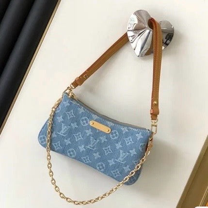 루이비통 데님 리브 포쉐트(Louis Vuitton Denim LV Remix Pochette Re-Belted)는 Y2K 무드와 실용성을 겸비한 벨트형 미니 포쉐트입니다. 모노그램 데님과 송아지 가죽 트리밍의 조화, 그리고 벨트 백으로도 활용 가능한 독특한 디자인이 특징입니다.