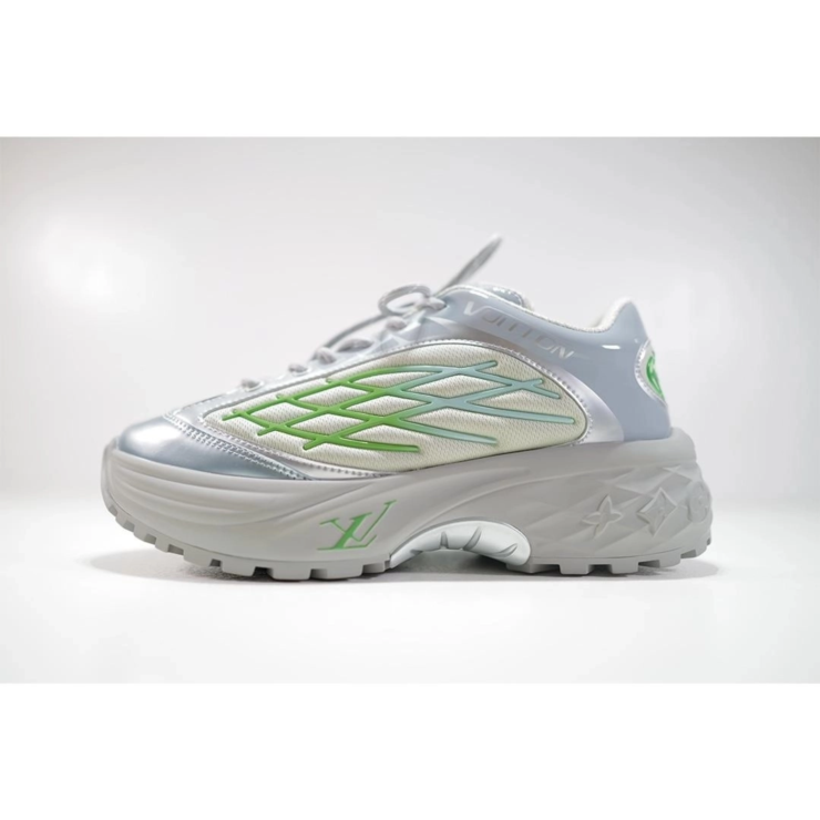 루이비통 디스커버리 레이스 업 그린 스니커즈 - 구조적 디자인과 컬러의 조화