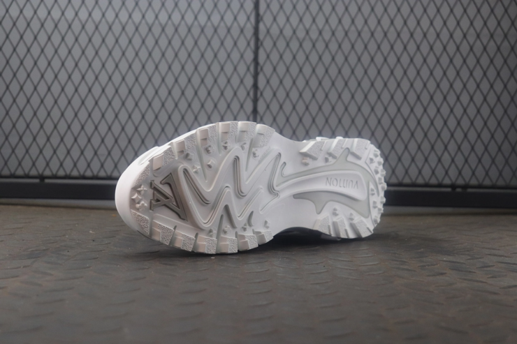 유선형 아웃라인과 조형적인 오버레이 구조는 러닝화에서 영감을 받은 동시에 고급스러운 디테일을 더했습니다. 측면의 LV 이니셜, 힐탭의 모노그램 플라워 디테일, 설포의 루이비통 로고는 브랜드의 시그니처를 강조하며, 다양한 컬러 블로킹이 현대적인 감각을 부여합니다.