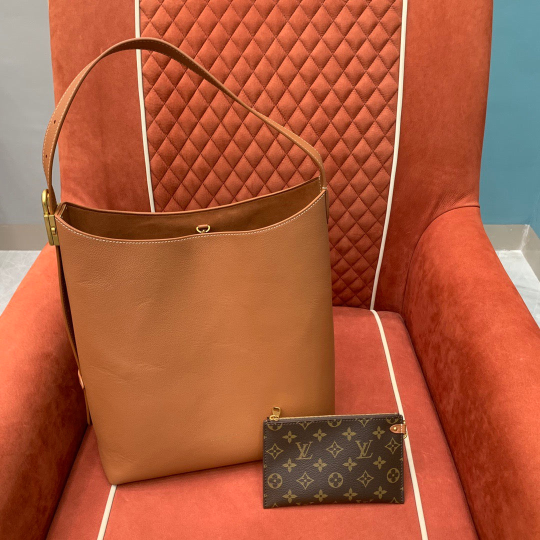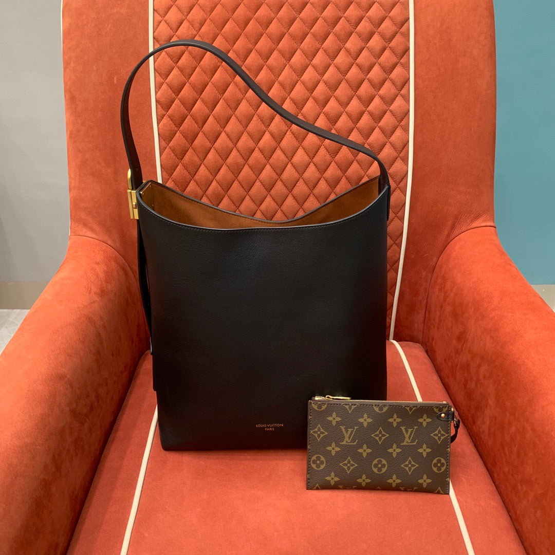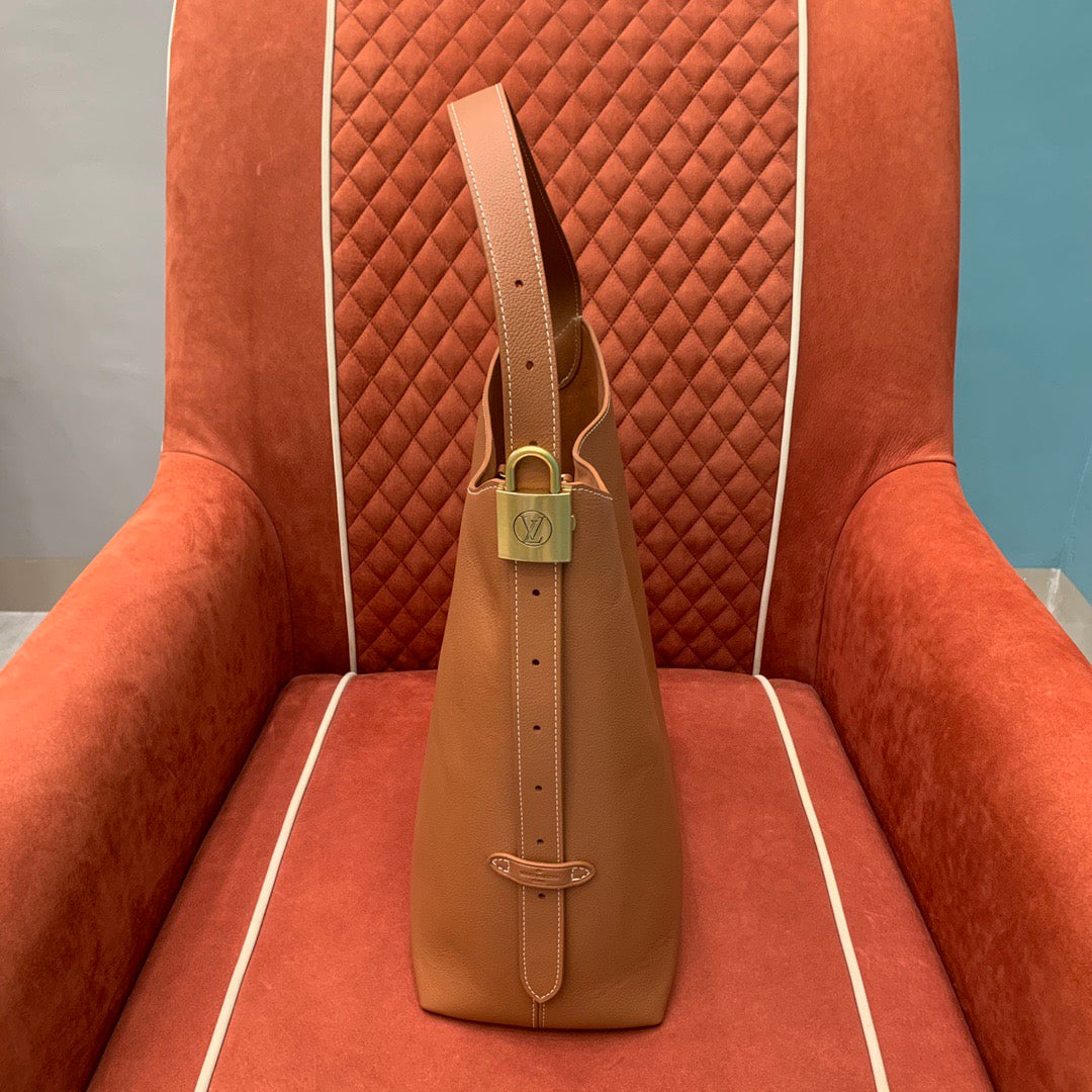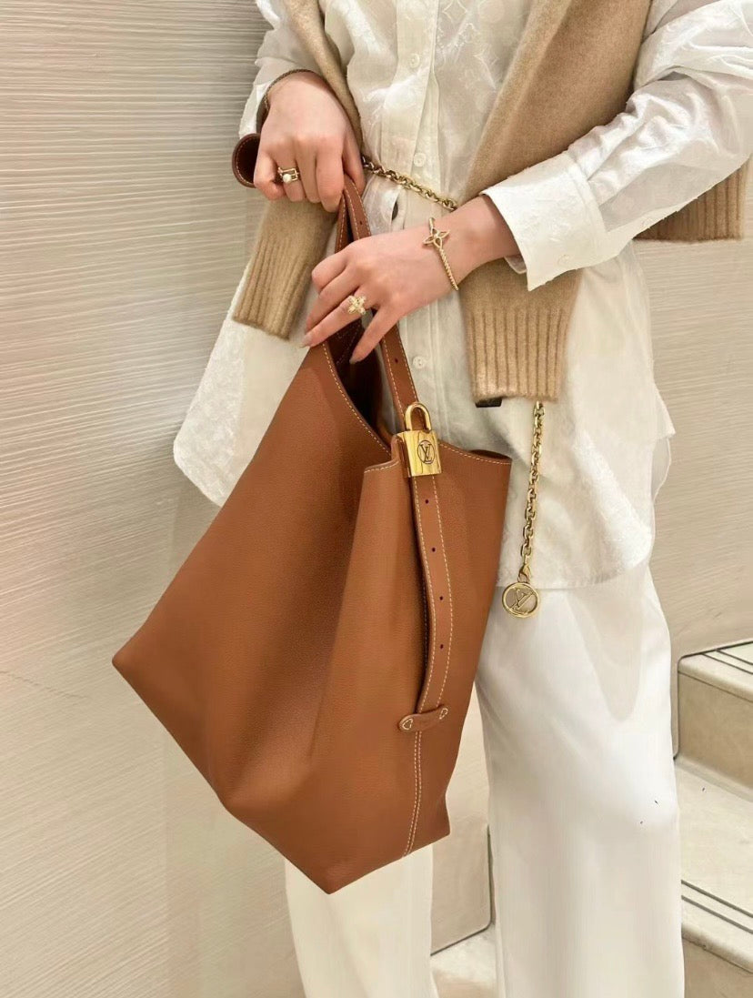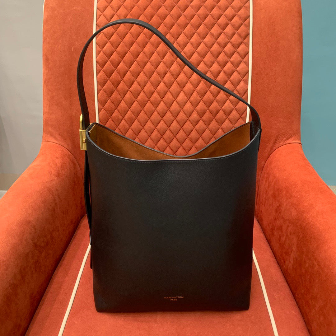 이 백은 자연스럽게 떨어지는 부드러운 곡선과 클래식한 가죽 소재로 이루어져 있으며, 전면의 골드 톤 LV 서클 잠금장치가 포인트 역할을 합니다. 어떤 룩에도 자연스럽게 어우러지는 중성적 디자인이 특징입니다.