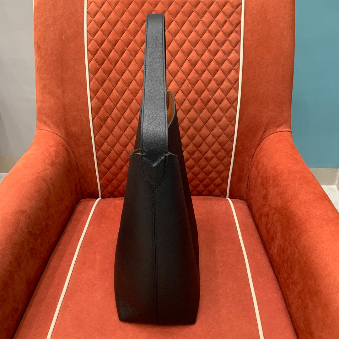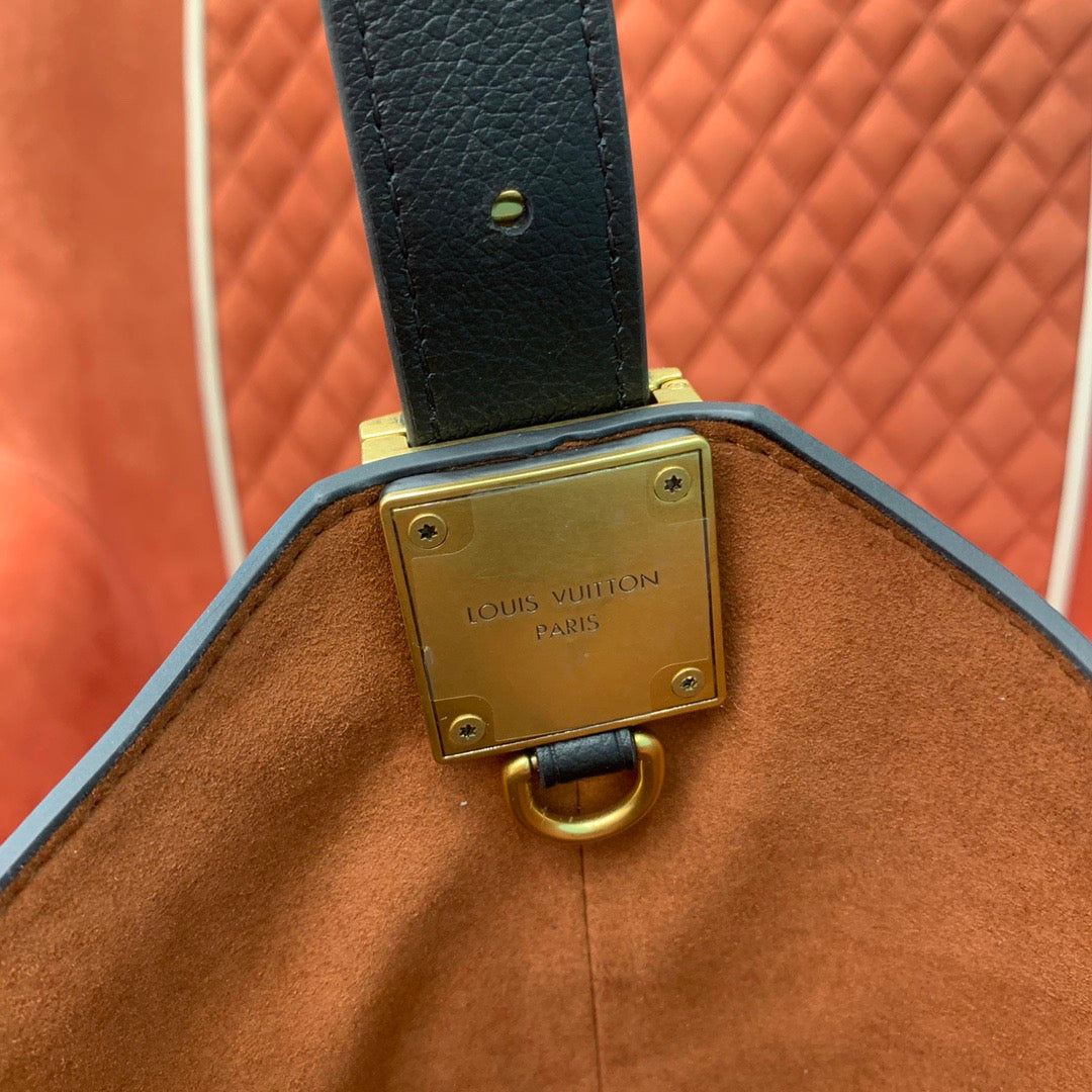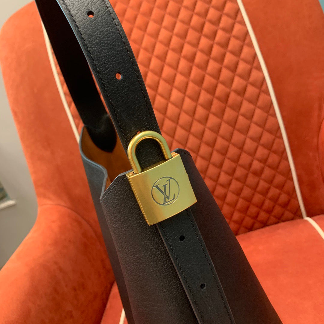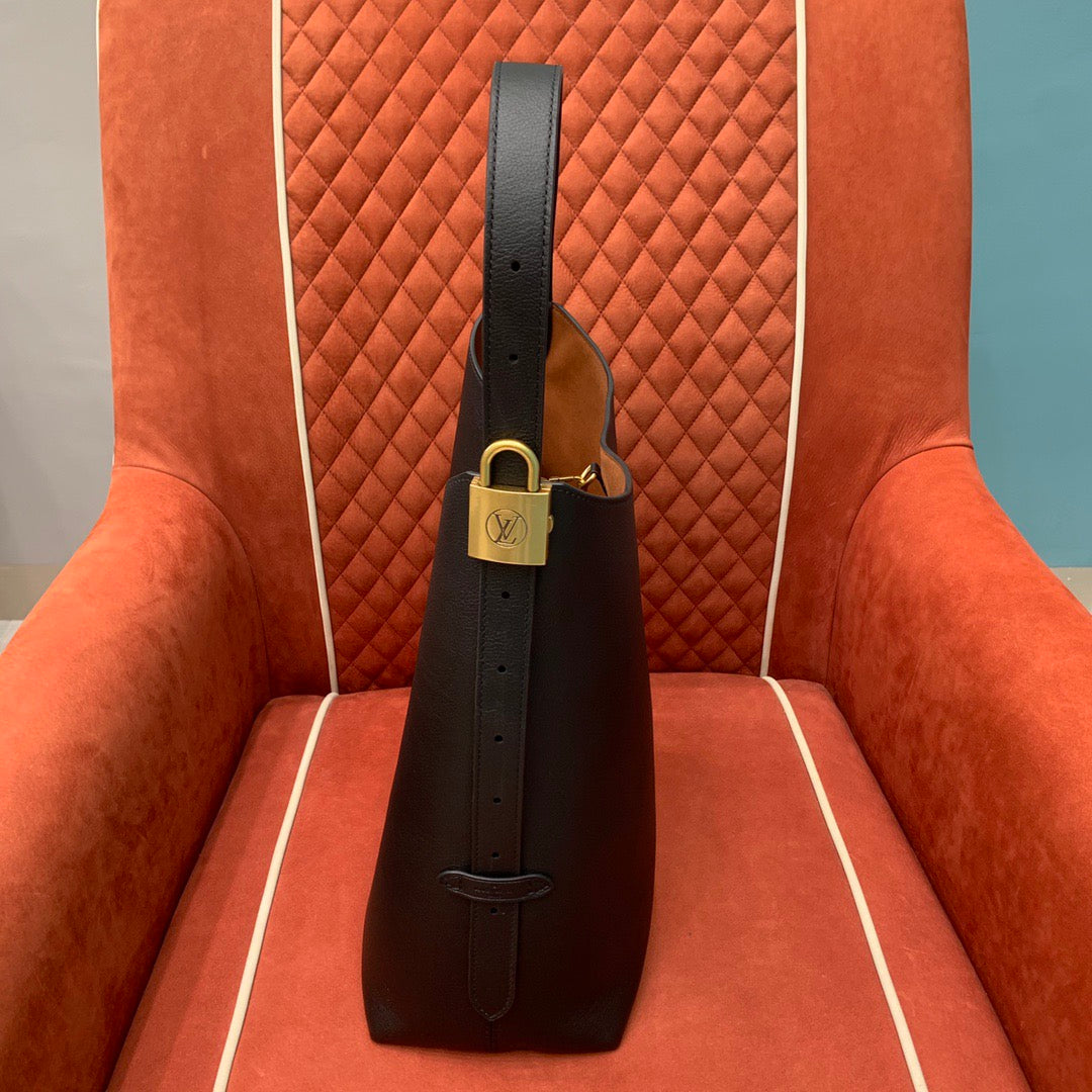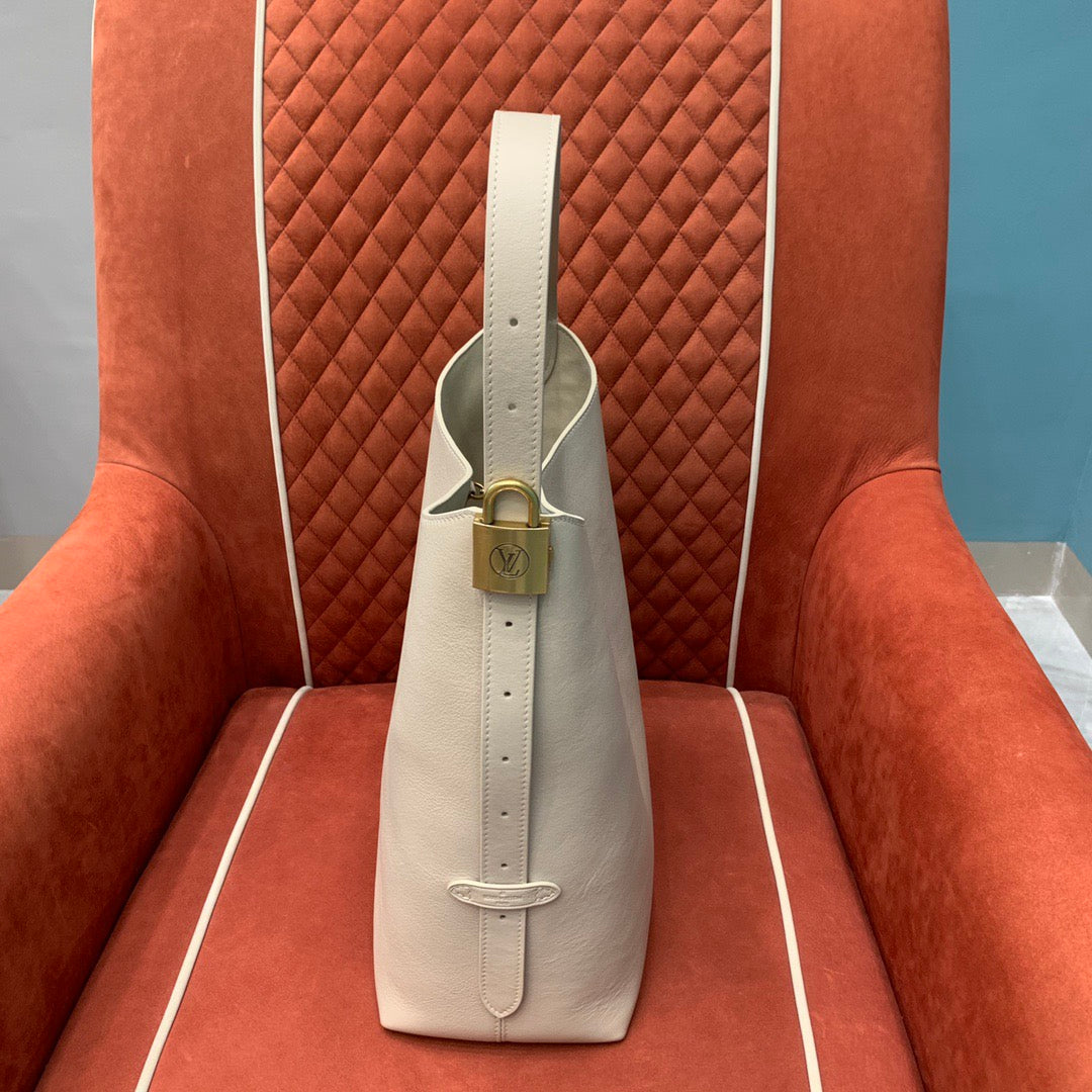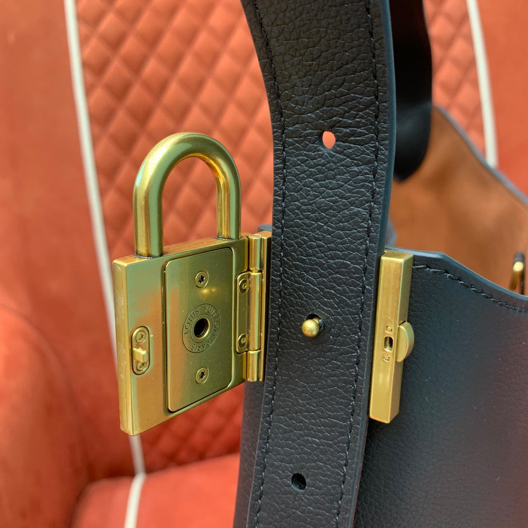 이 백은 자연스럽게 떨어지는 부드러운 곡선과 클래식한 가죽 소재로 이루어져 있으며, 전면의 골드 톤 LV 서클 잠금장치가 포인트 역할을 합니다. 어떤 룩에도 자연스럽게 어우러지는 중성적 디자인이 특징입니다.