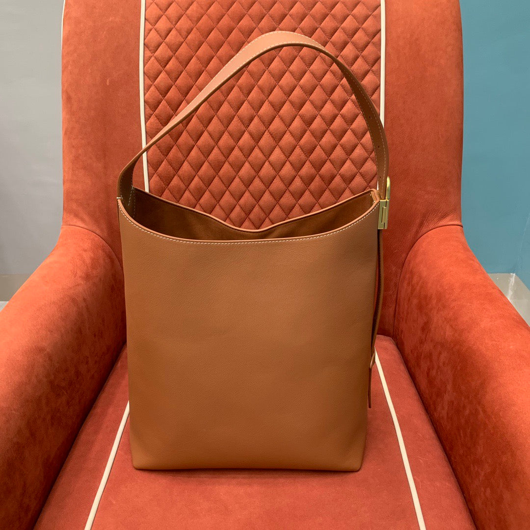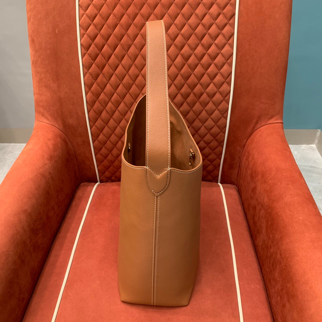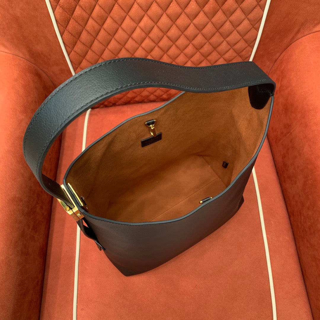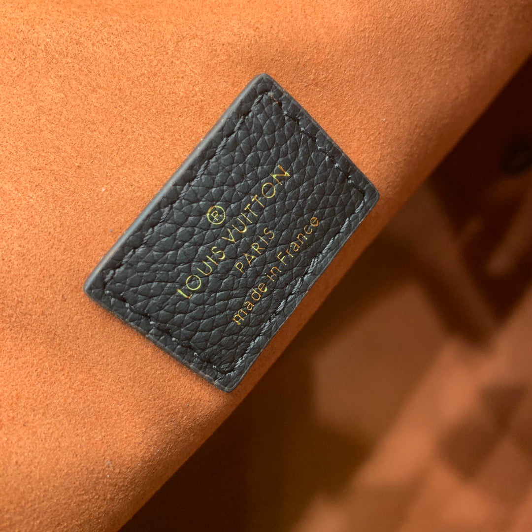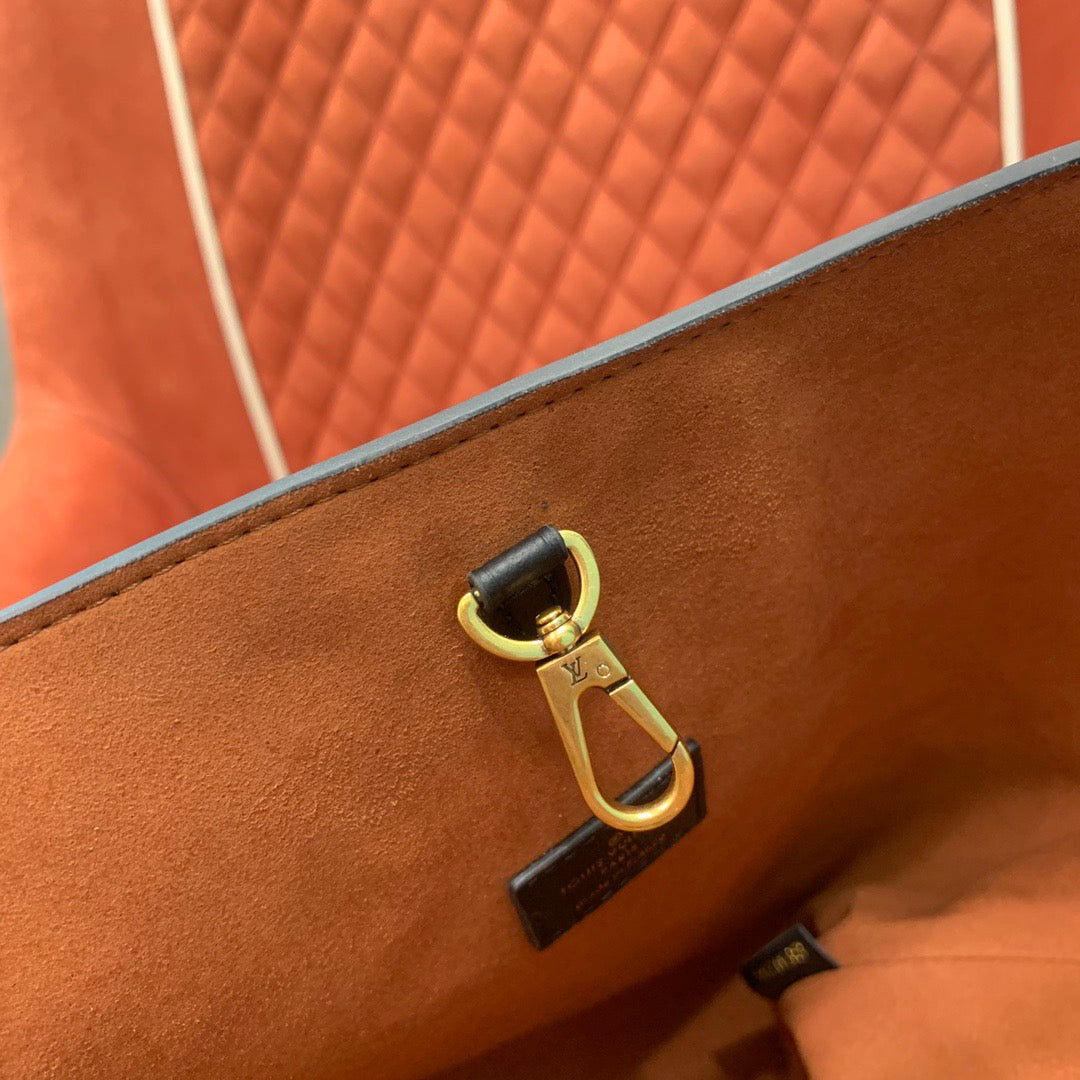 이 백은 자연스럽게 떨어지는 부드러운 곡선과 클래식한 가죽 소재로 이루어져 있으며, 전면의 골드 톤 LV 서클 잠금장치가 포인트 역할을 합니다. 어떤 룩에도 자연스럽게 어우러지는 중성적 디자인이 특징입니다.