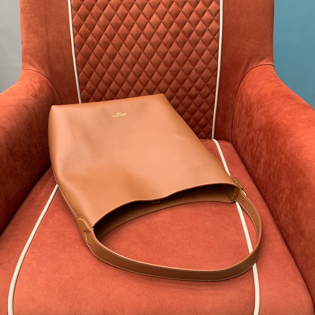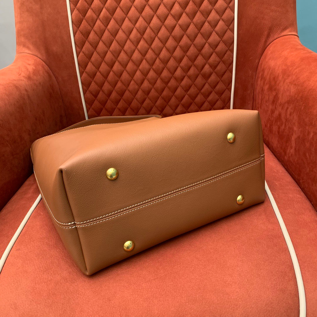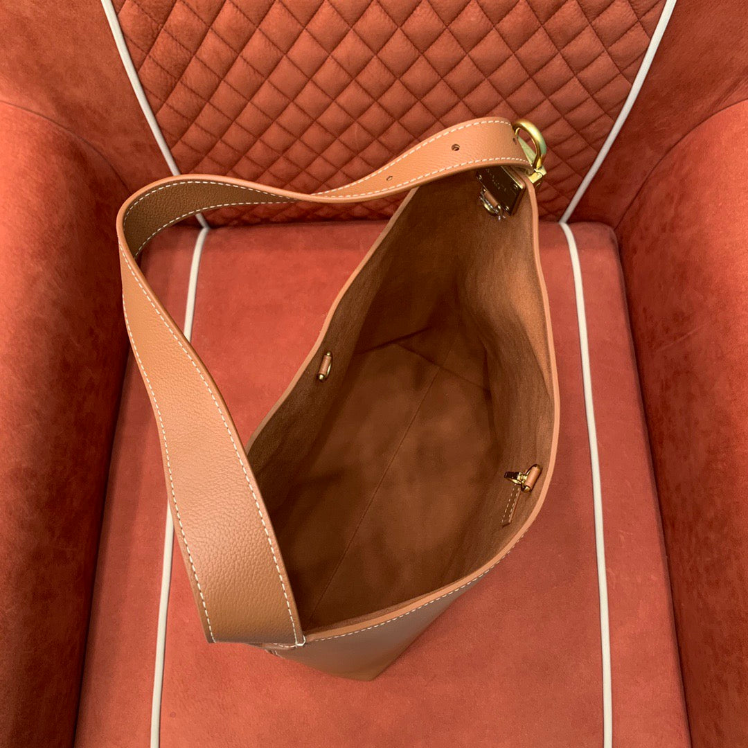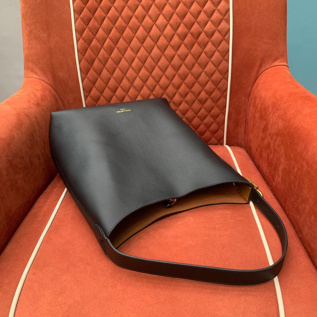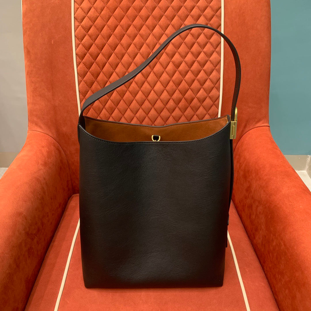 이 백은 자연스럽게 떨어지는 부드러운 곡선과 클래식한 가죽 소재로 이루어져 있으며, 전면의 골드 톤 LV 서클 잠금장치가 포인트 역할을 합니다. 어떤 룩에도 자연스럽게 어우러지는 중성적 디자인이 특징입니다.
