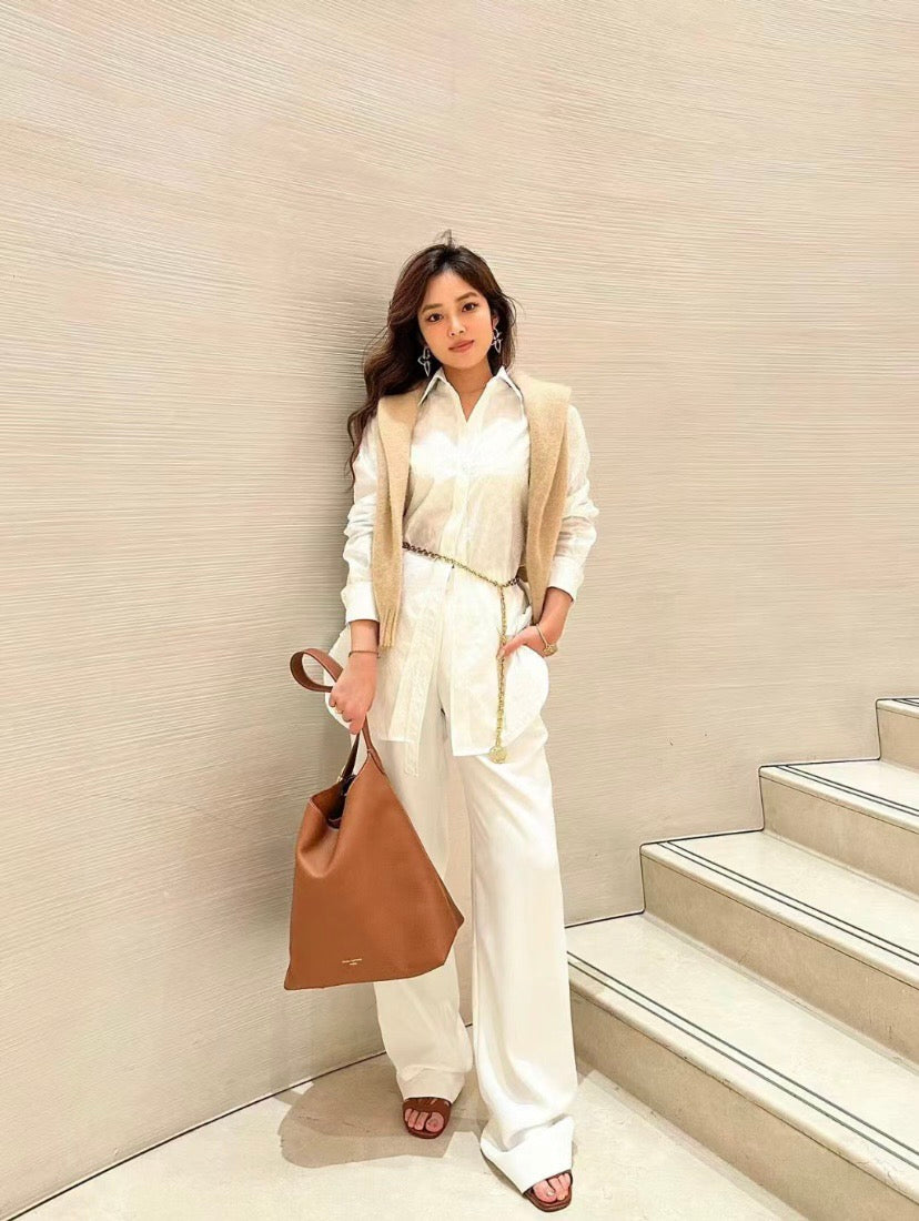차분하고 우아한 디자인으로 포멀한 정장이나 니트, 블라우스와 같은 페미닌한 룩에 특히 잘 어울립니다. 뉴트럴 톤의 컬러 구성은 다양한 계절과 스타일에 쉽게 매치되며, 미니멀한 감성을 강조한 코디에 제격입니다.