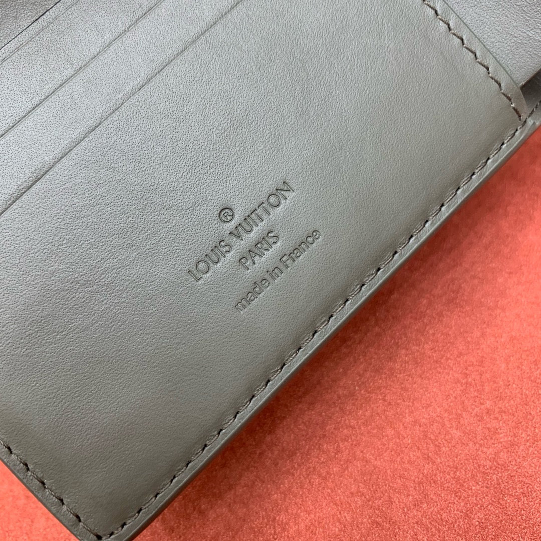 지갑 전면에 루이비통의 시그니처 로고가 섬세하게 새겨져 있으며, 미니멀한 외형에 우아한 포인트를 더해줍니다.