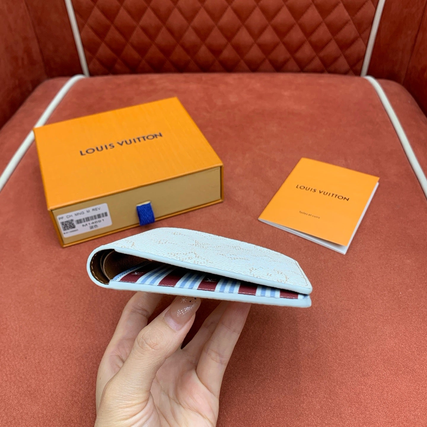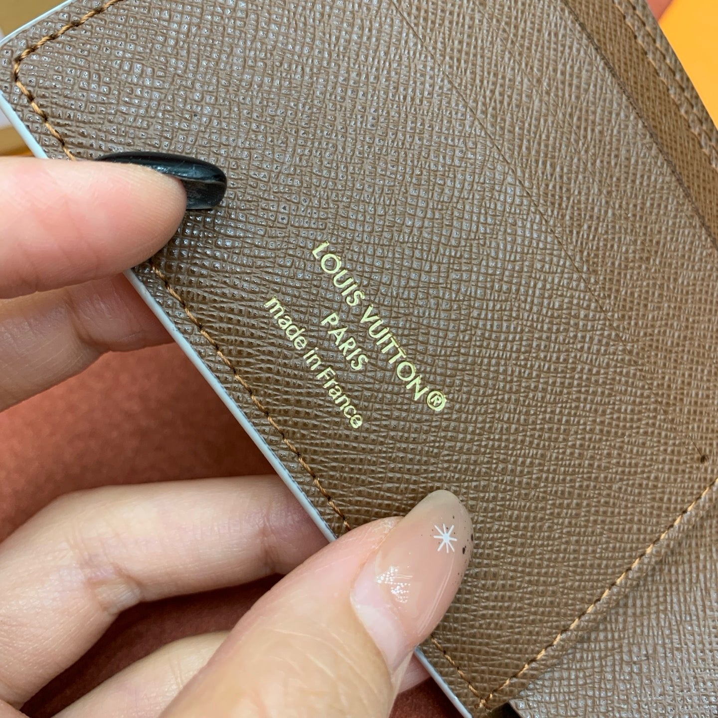 지갑 전면에 루이비통의 시그니처 로고가 섬세하게 새겨져 있으며, 미니멀한 외형에 우아한 포인트를 더해줍니다.