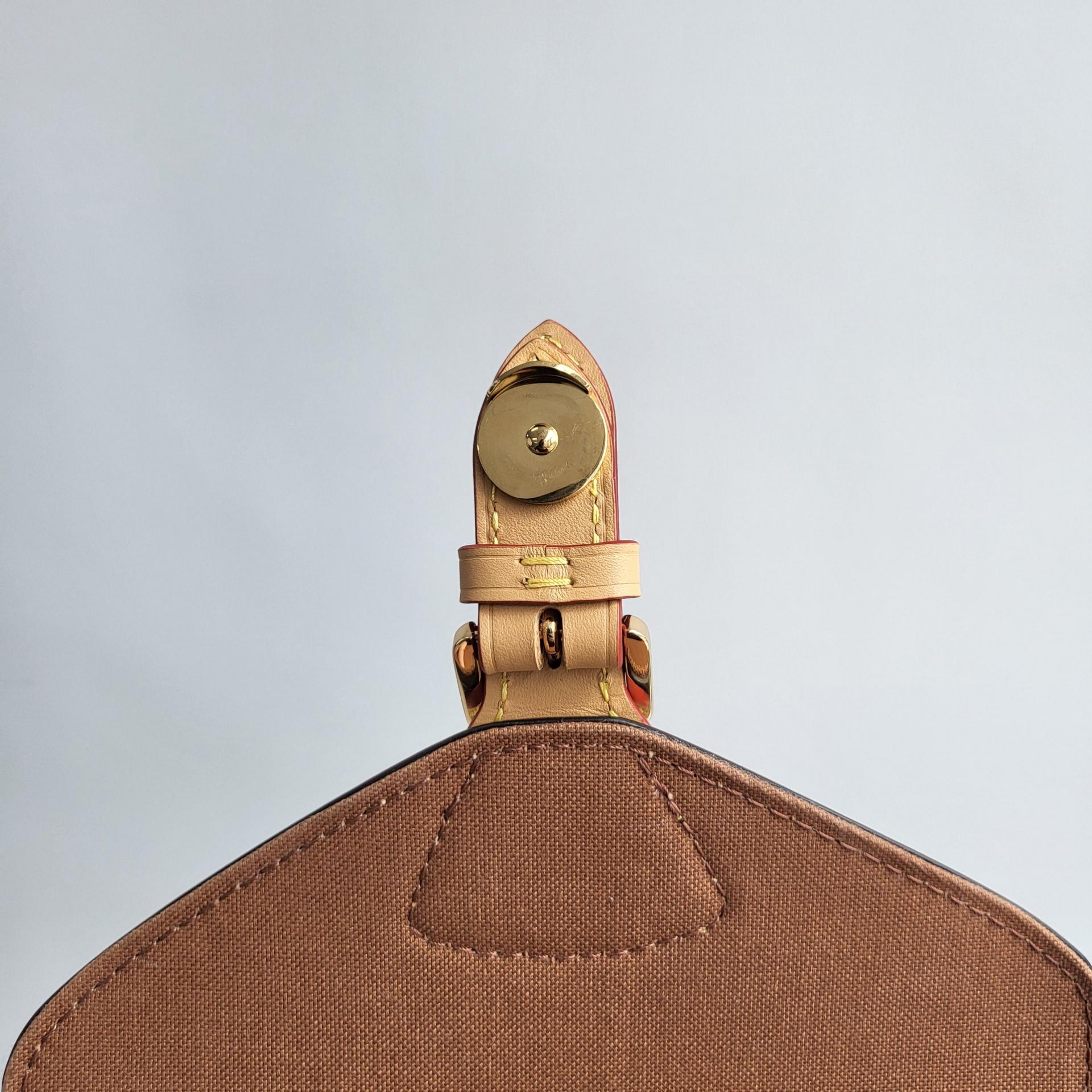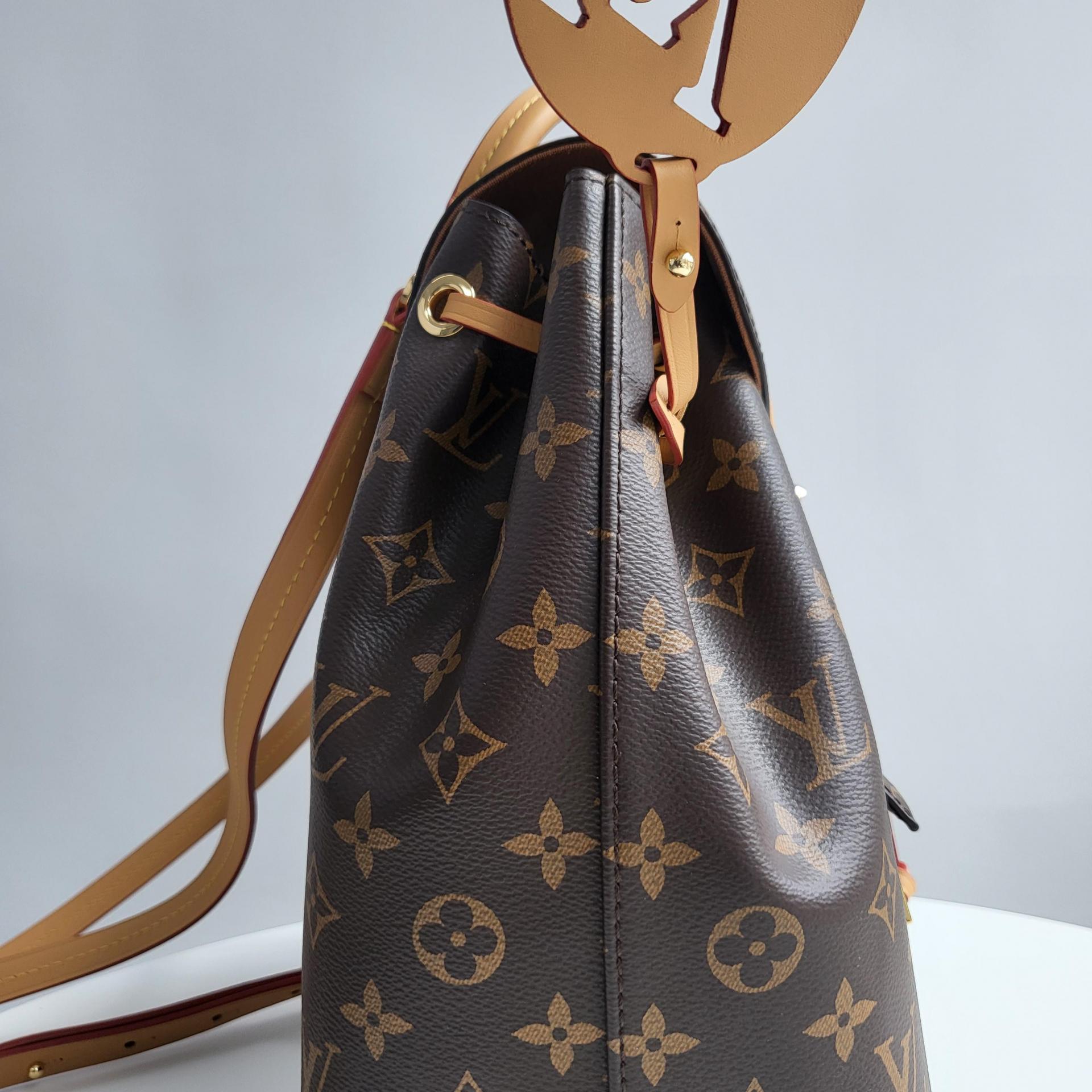 모노그램 캔버스와 천연 가죽 트리밍의 조화가 돋보이며, 전면 포켓과 플랩 클로저, 드로스트링 디테일이 루이비통의 헤리티지를 잘 드러냅니다. 골드 톤 하드웨어와 곡선형 실루엣은 고급스러우면서도 활동적인 스타일을 완성합니다.