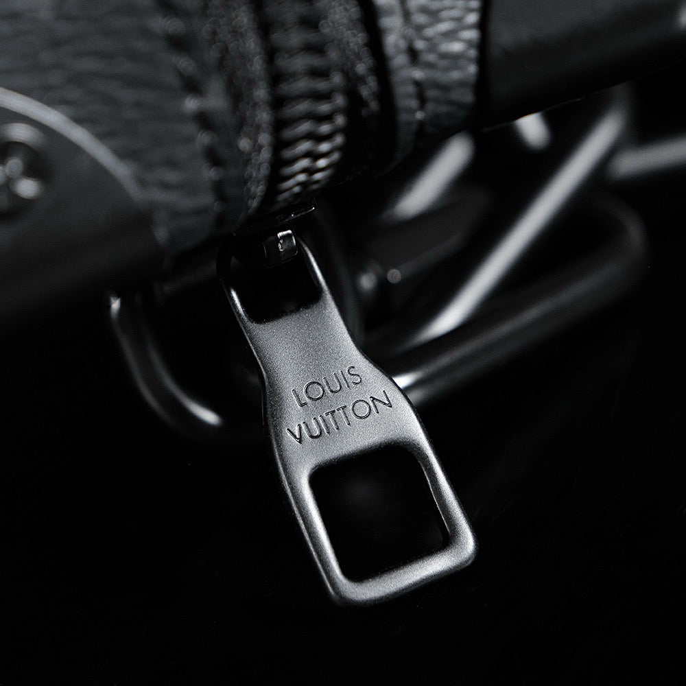 하드 트렁크에서 영감을 받은 디자인에 부드러운 블랙 모노그램 이클립스 캔버스와 매트 블랙 금속 리벳이 더해져 남성적인 매력을 강조합니다. 직선적인 박스 쉐입과 견고한 구조, 측면 금속 보호 장식은 브랜드의 헤리티지를 계승합니다.