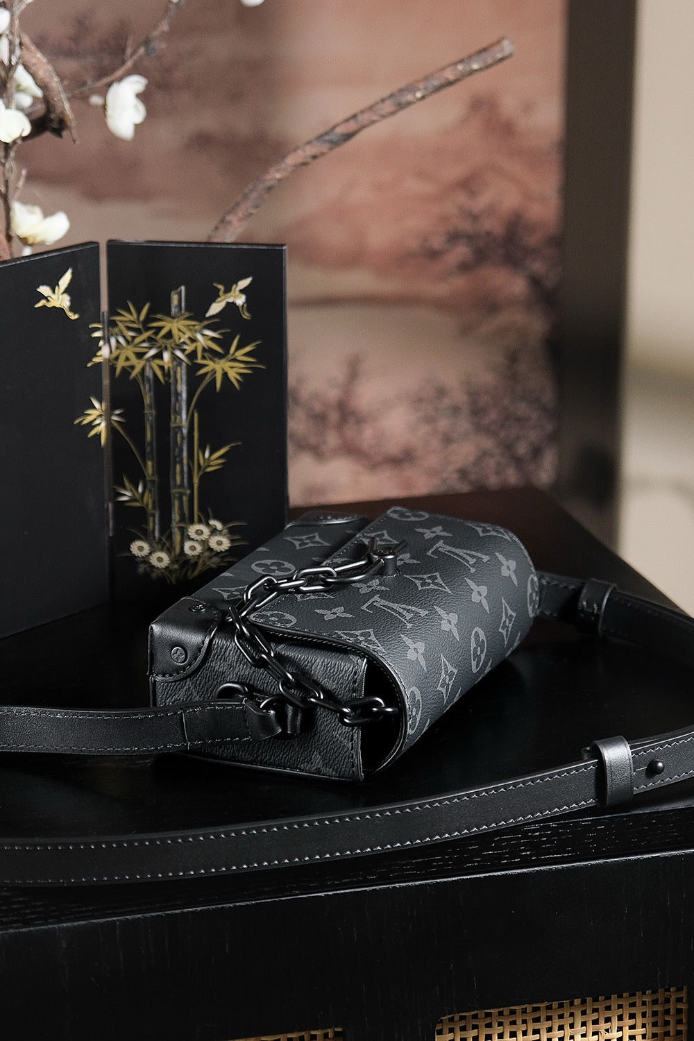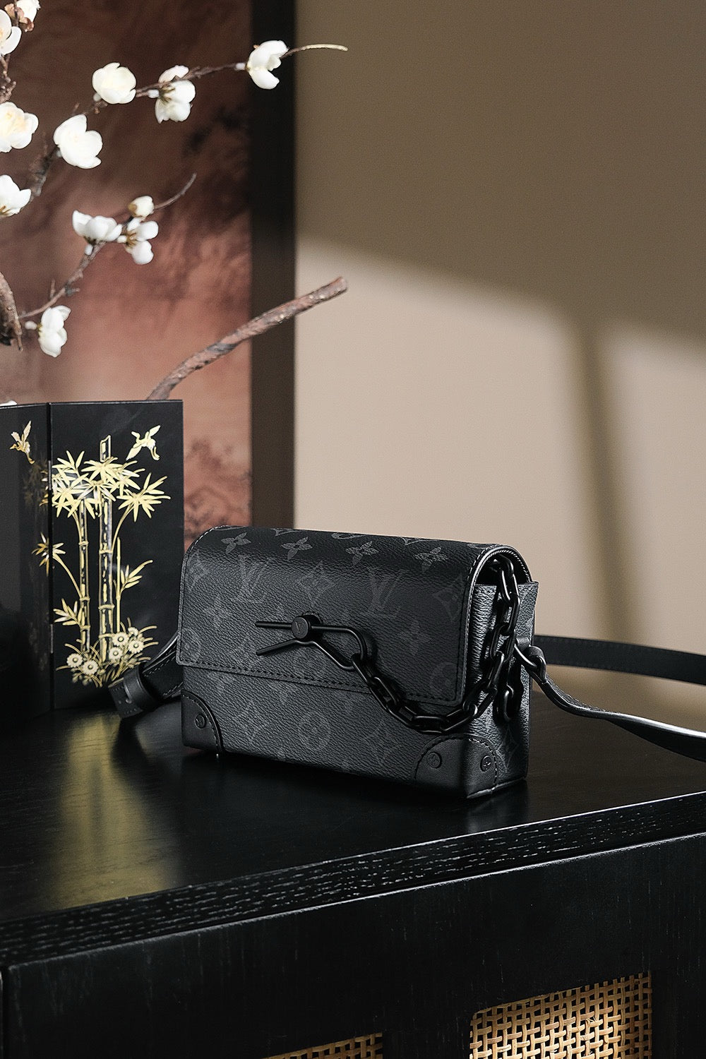 루이비통의 클래식한 스티머 백 디자인 요소를 간결하게 담아낸 이 웨어러블 월릿은 시그니처 모노그램 이클립스 캔버스나 그레인드 가죽 소재로 제작되며, 상단의 메탈 체인과 스티머 클로저 디테일이 유니크한 포인트를 더합니다. 남성적인 감성과 실용성이 조화를 이루는 디자인입니다.