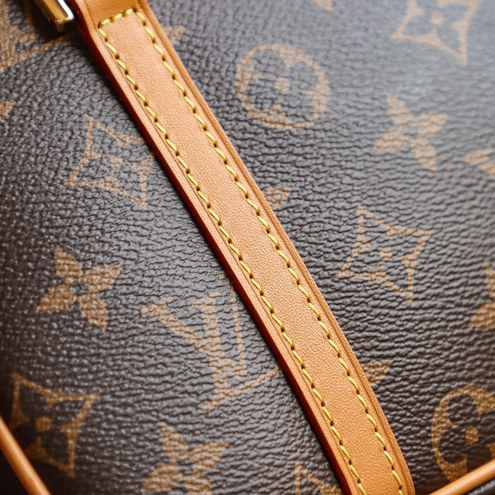 박스형 구조로 탄탄한 쉐입을 유지하며, 전면의 지퍼 포켓과 넉넉한 내부 공간이 특징입니다. 모노그램 캔버스에 소가죽 트리밍이 더해져 견고함과 고급스러움을 동시에 갖추었으며, 골드 톤 하드웨어가 포인트를 더합니다.